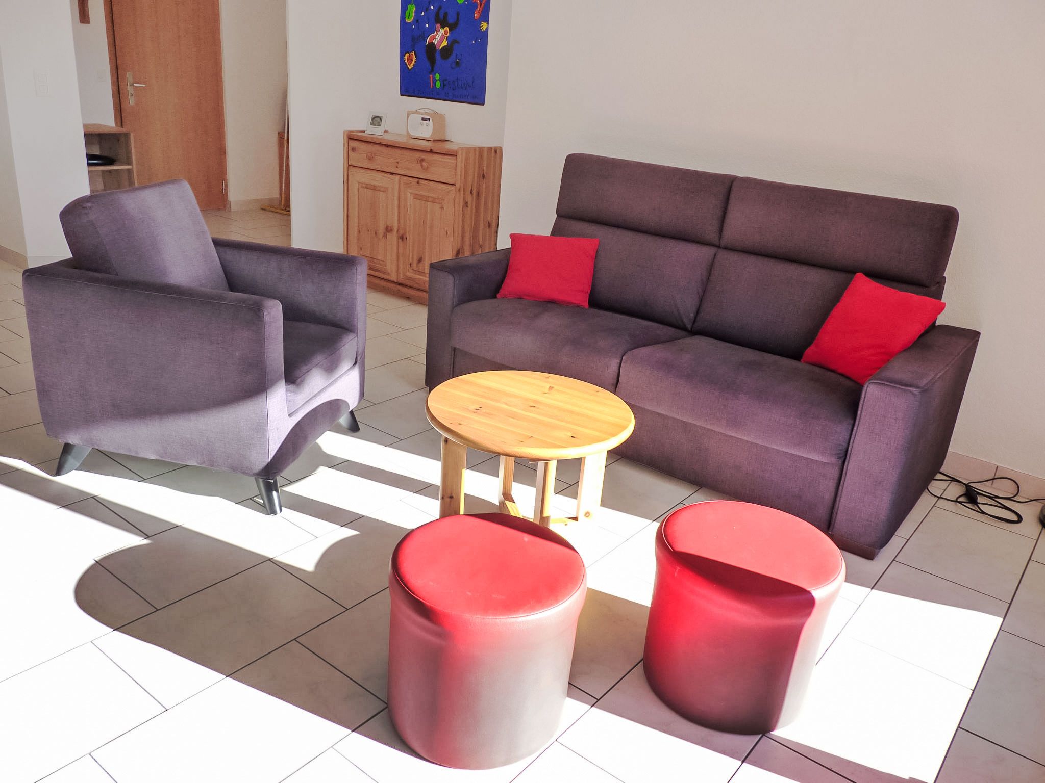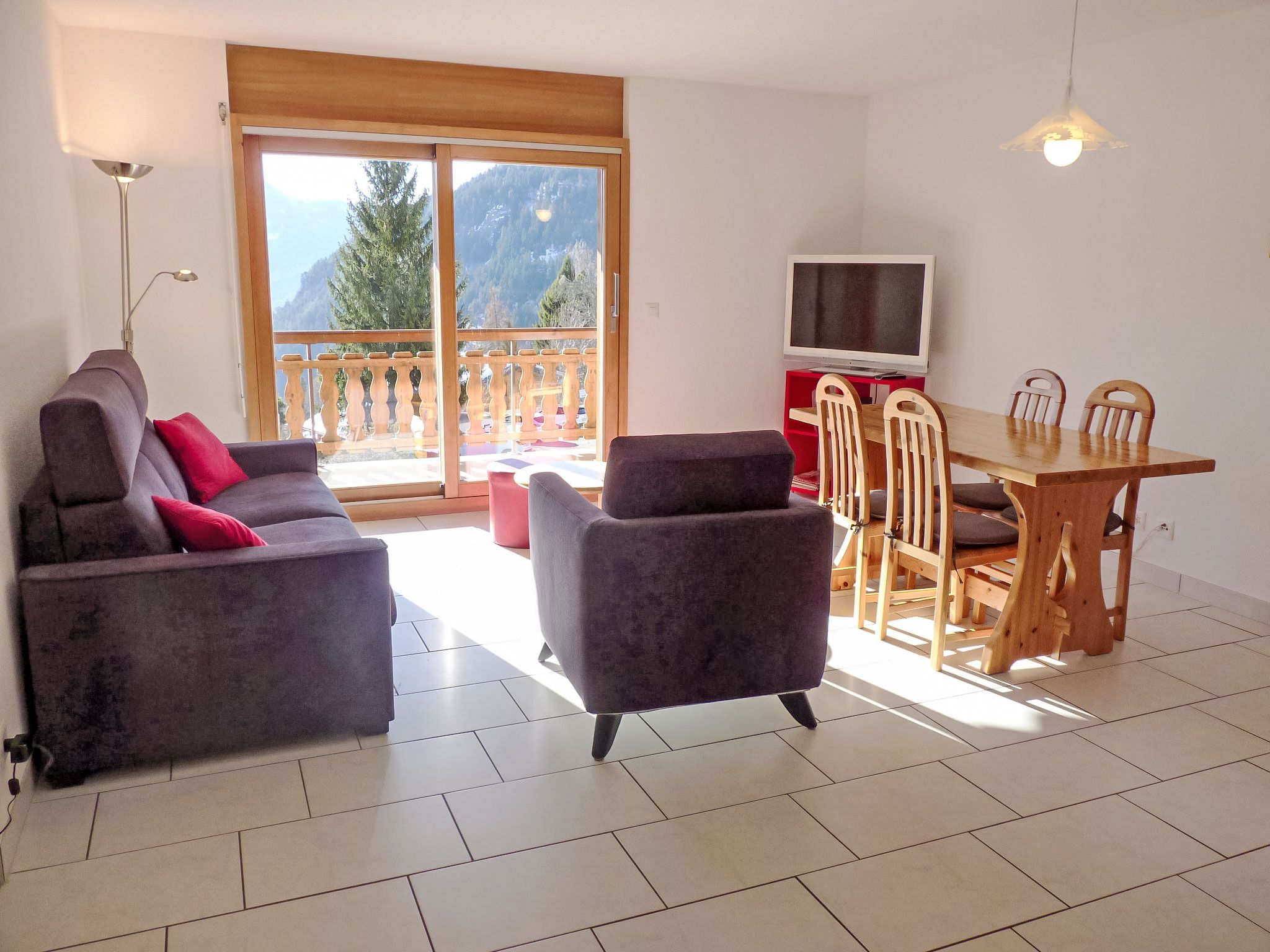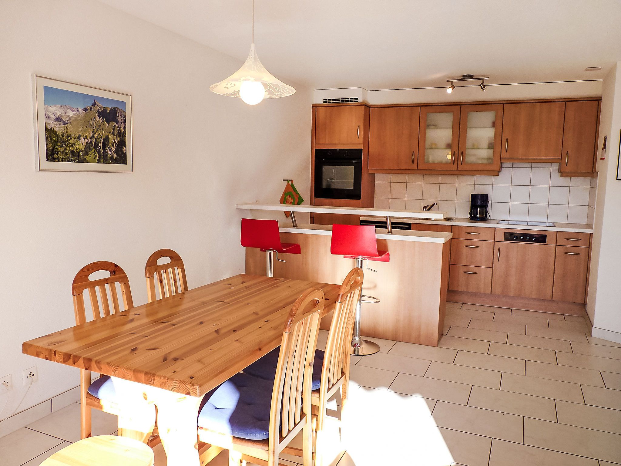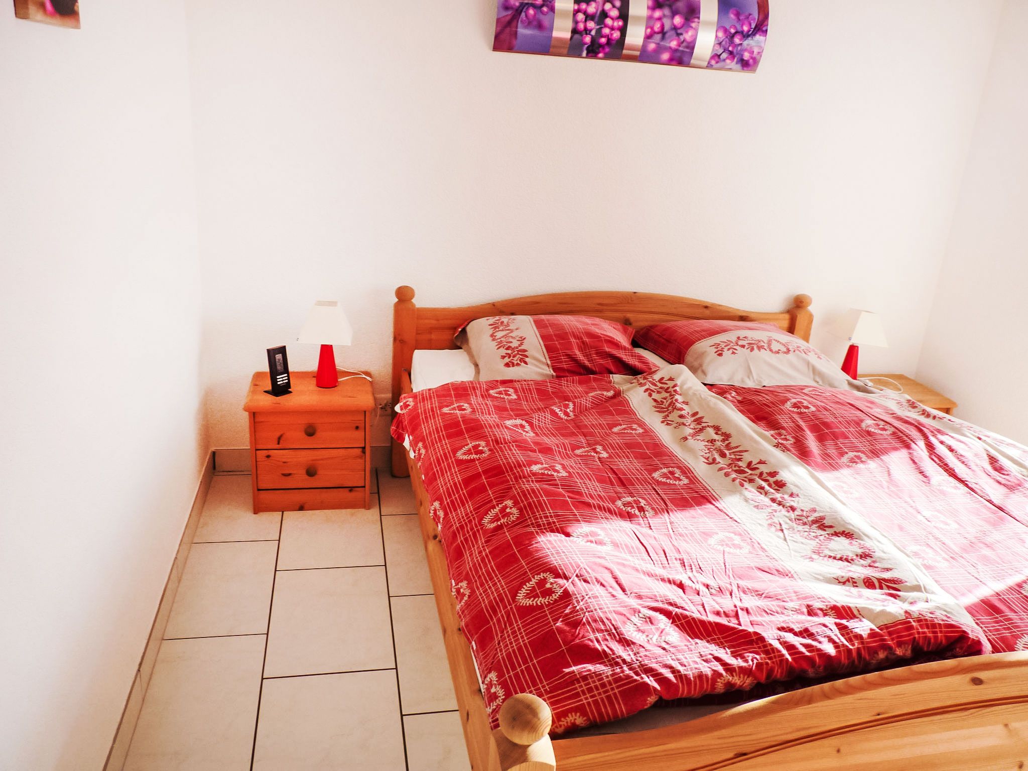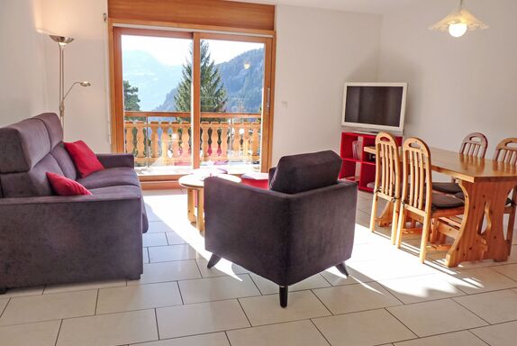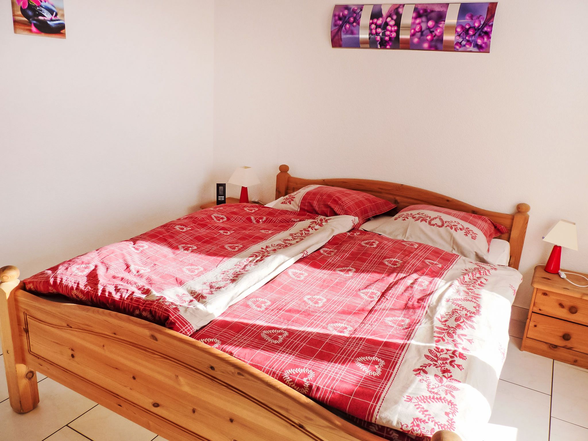 Ardévine 5, 2-Zimmer-Wohnung 60 m2, Südlage. Komfortabel und modern eingerichtet: Wohn-/Esszimmer mit 1 Diwanbett und Kabel-TV. Ausgang zum Balkon, Richtung Süden. 1 Zimmer mit 1 x 2 Etagenbetten (90 cm, Länge 200 cm), 1 franz. Bett (160 cm, Länge 200 cm). Ausgang zum Balkon, Richtung Süden. Offene Küche (Backofen, Geschirrspüler, 4 Glaskeramikplatten, elektrische Kaffeemaschine, Racletteofen, Fondue Set (Käse)). Dusche/WC. Grosser Balkon 17 m2, Südlage. Terrassenmöbel. Sehr schöne Sicht. Zur Verfügung: Internet (Wireless LAN, gratis). Parkplatz (2 Autos). Bitte beachten: Nichtraucher-Unterkunft.