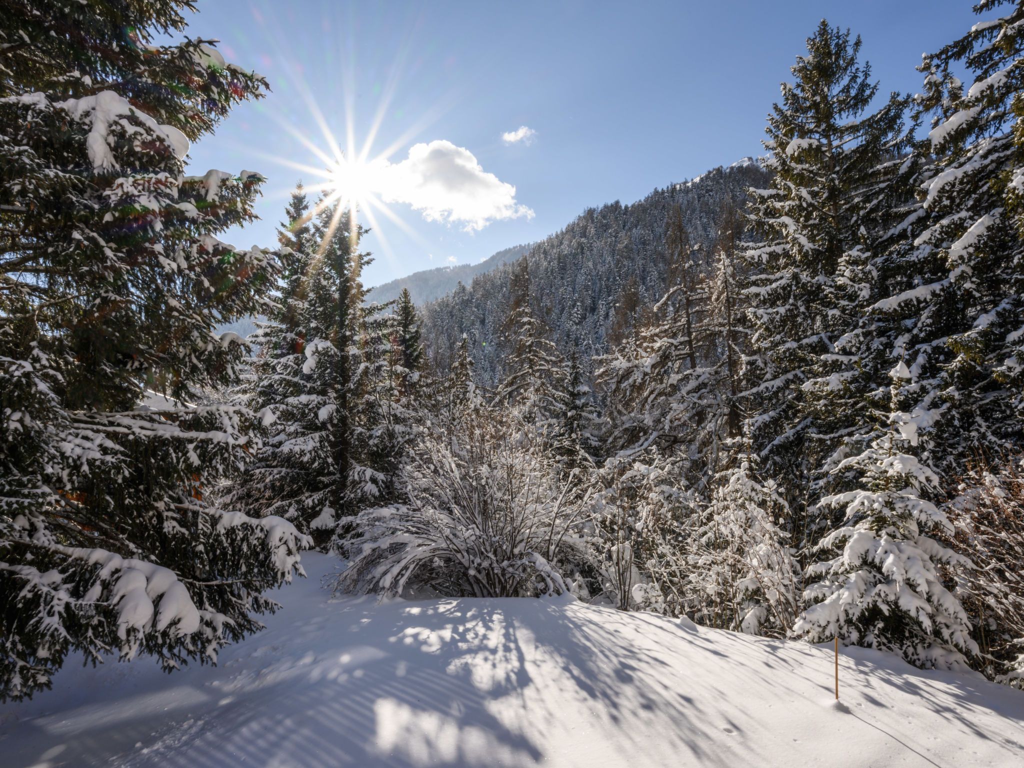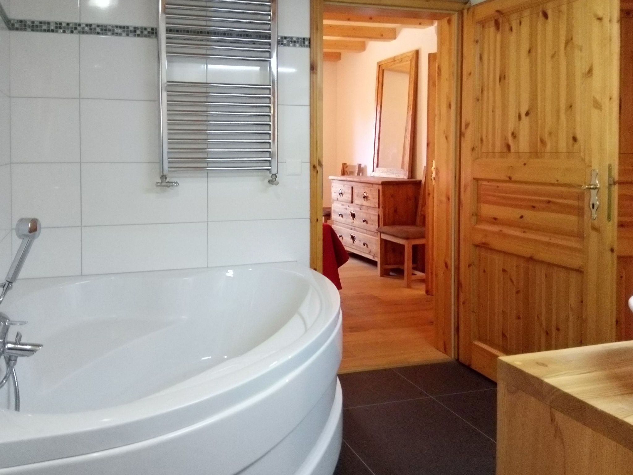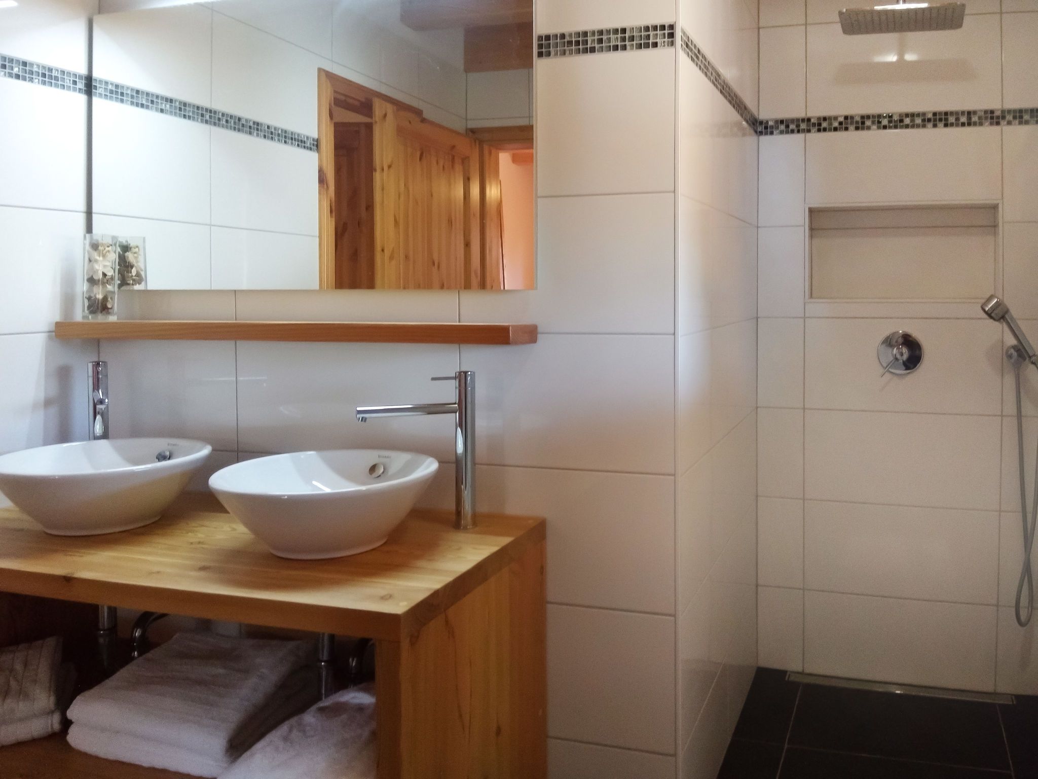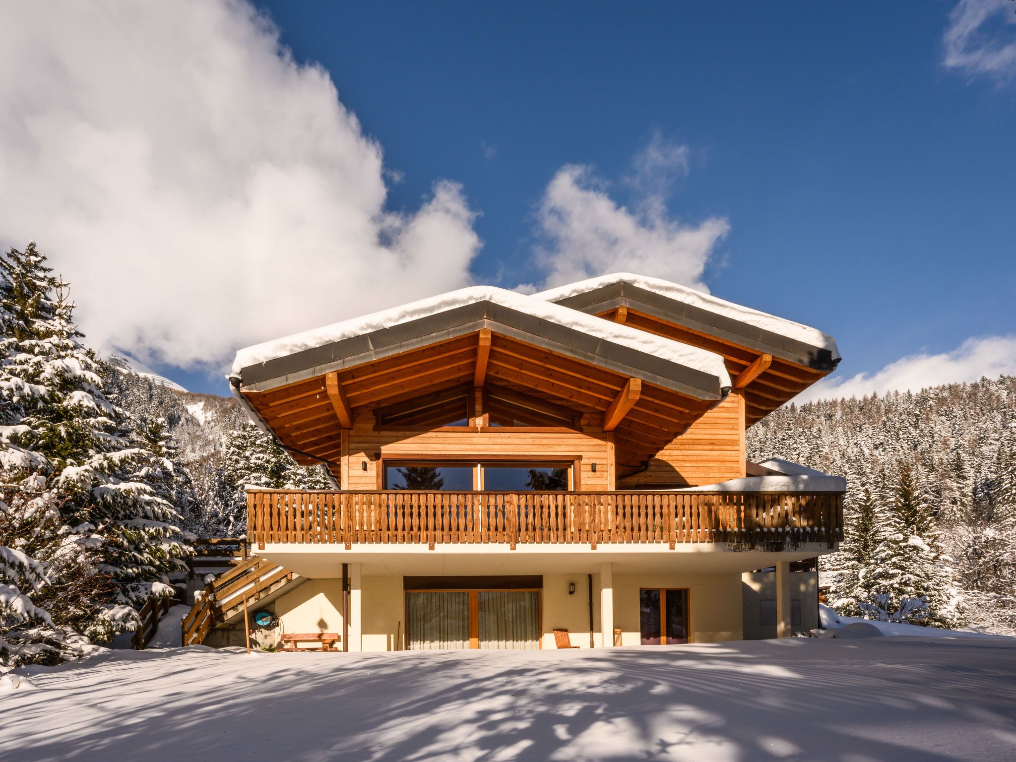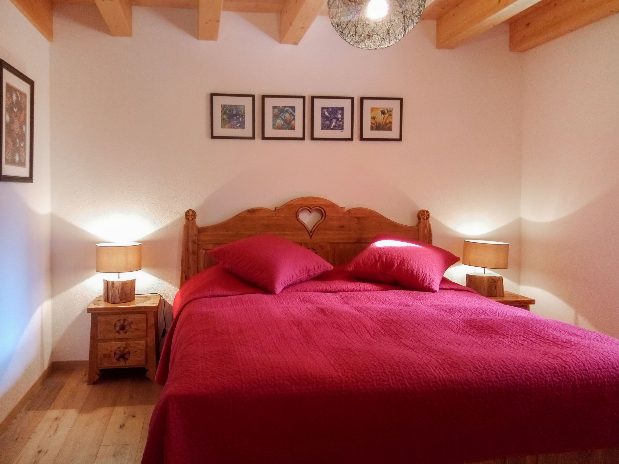 Banksia, 5-Zimmer-Chalet 180 m2 auf 2 Stockwerken im 2. Stock, Südostlage. Geräumig, komfortabel und geschmackvoll eingerichtet: Eingang. Grosses Wohn-/Esszimmer mit Panoramafenster mit Kabel-TV, Flachbildschirm, DVD und Holzofen. Ausgang zum Balkon, zur Terrasse, Richtung Südosten. 1 Zimmer mit 1 franz. Bett (180 cm, Länge 200 cm), sep. WC, Dusche, Doppelwaschbecken und mit Eckbadewanne. Offene Küche (Geschirrspüler, 4 Induktionskochplatten, Mikrowelle, elektrische Kaffeemaschine, Kapseln für die Kaffeemaschine (NESPRESSO) extra, Racletteofen, Fondue Set (Chinoise, Käse)). Obergeschoss: 1 Zimmer mit 1 franz. Bett (180 cm, Länge 200 cm). 1 Zimmer mit 2 Betten (90 cm, Länge 200 cm). 1 Zimmer mit 2 Betten (90 cm, Länge 200 cm). Dusche/WC, Doppelwaschbecken. Balkon 23 m2, Südostlage, Terrasse 15 m2, Westlage. Terrassenmöbel. Schöne Sicht auf die Berge und die Ortschaft. Zur Verfügung: Waschmaschine, Wäschetrockner, Babybett bis 3 Jahre. Internet (WLAN, gratis). Parkplatz (überdacht, 1 Auto) beim Haus. Bitte beachten: geeignet für Familien. Nichtraucher-Unterkunft.