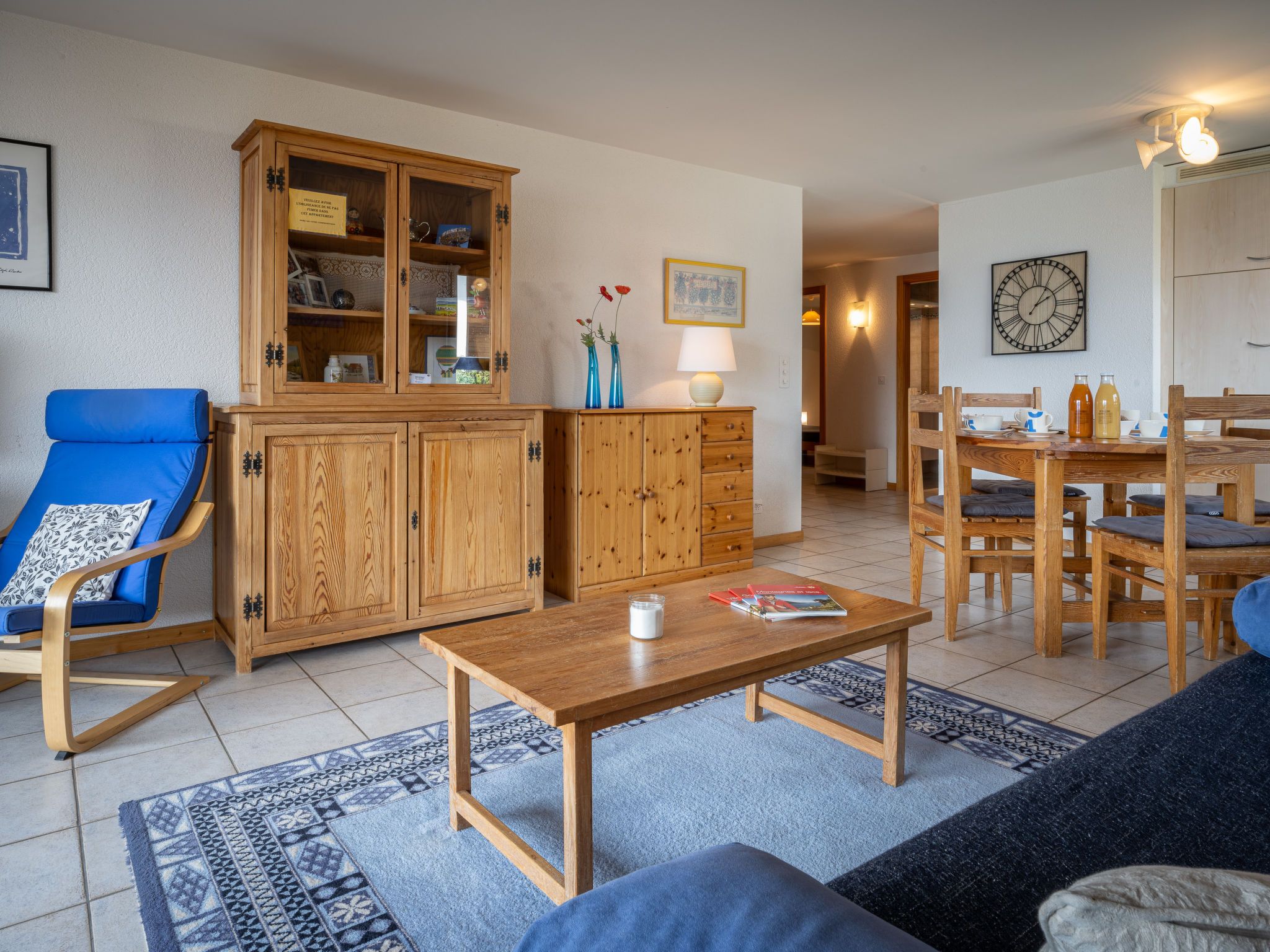 Seya 19, 3-Zimmer-Wohnung 85 m2 im 1. Stock, Südostlage. Sehr komfortabel und geschmackvoll eingerichtet: Eingang. Wohn-/Esszimmer mit 1 Diwanbett und Kabel-TV (Flachbildschirm), Video und DVD. Ausgang zum Balkon, Richtung Süden. 1 Zimmer mit 2 Betten (90 cm, Länge 190 cm). 1 Zimmer mit 1 franz. Bett (1 x 160 cm, Länge 200 cm). Offene Küche (Backofen, Geschirrspüler, 4 Glaskeramikplatten, Wasserkocher, Mikrowelle, elektrische Kaffeemaschine, Racletteofen, Fondue Set (Käse)). Bad/WC, Doppelwaschbecken. Balkon 14 m2, Südlage. Balkonmöbel, Liegestühle (1). Sehr schöne Sicht auf die Berge. Zur Verfügung: Babybett bis 3 Jahre, Haartrockner. Internet (Wireless LAN, gratis). Garage Nr. 19 (1 Auto), Höhe 260 cm, Breite 250 cm. Bitte beachten: Nichtraucher-Unterkunft.