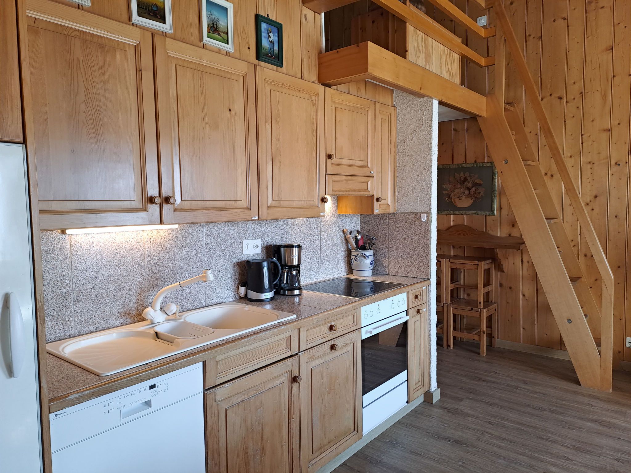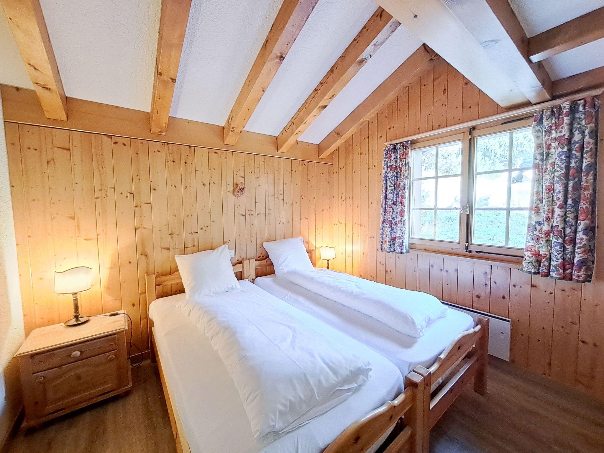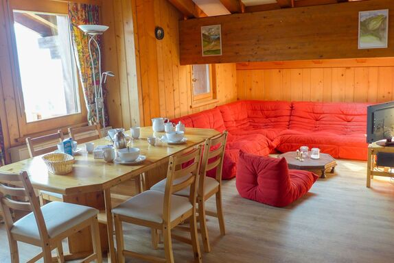 Pinot Gris combles, 2-Zimmer-Attikawohnung 59 m2 auf 2 Stockwerken, im Dachgeschoss, Südlage. Zweckmässig und schön eingerichtet: abgeschrägtes Wohn-/Esszimmer mit offenem Kamin, Esstisch, Kabel-TV und E-Heizung. Ausgang zum Balkon, Richtung Süden. 1 Zimmer mit 1 Doppelbett (2 x 90 cm, Länge 190 cm). Kochnische (4 Kochplatten, Backofen, Geschirrspüler, Wasserkocher, Fondue Set (Käse)). Bad/WC. E-Heizung. Dachgeschoss: (steile Treppe) abgeschrägte, offene kleine Galerie mit 3 Betten (90 cm, Länge 190 cm). Kleiner Balkon, Südlage. Balkonmöbel. Sehr schöne Panoramasicht auf die Berge, die Skipiste, die Landschaft und die Ortschaft. Zur Verfügung: Haartrockner. Internet (Wireless LAN, gratis). Bitte beachten: Nichtraucher-Unterkunft, kein Parkplatz. Kein Fahrstuhl. Anstelle eines abgeschlossenen Schlafzimmers befinden sich manche Schlafplätze in einem offenen Bereich (Galerie, Nische etc.).