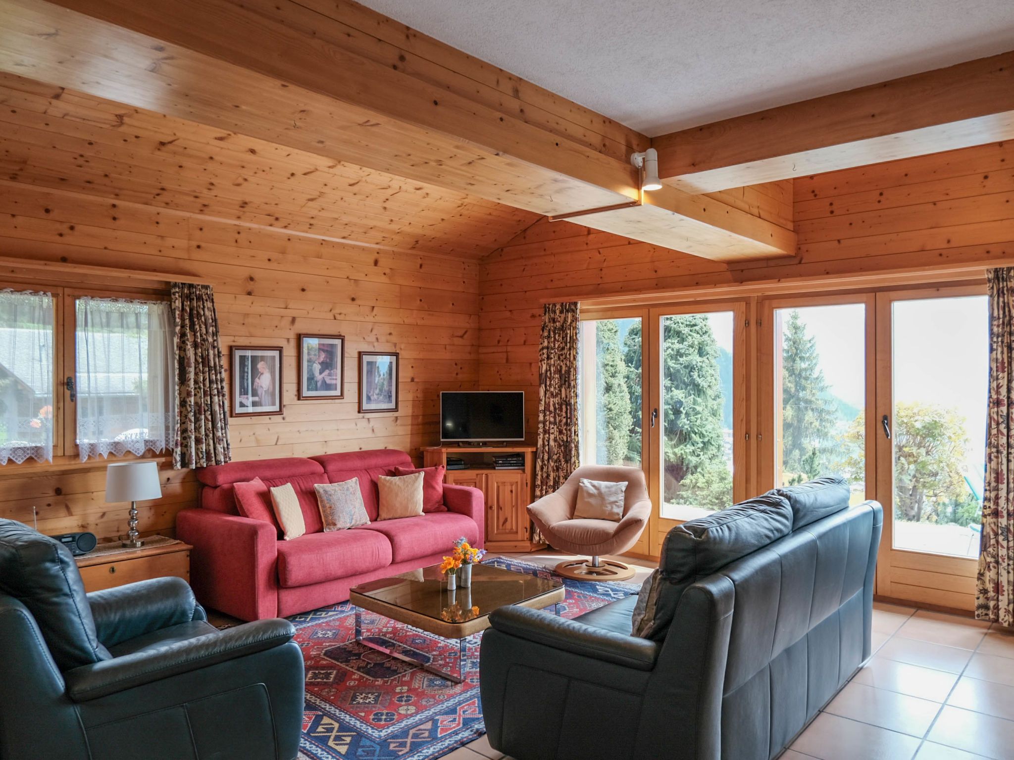 Biquinou, 5-Zimmer-Chalet 110 m2 auf 2 Stockwerken. Geräumig und hell, komfortabel und schön eingerichtet: grosses Wohn-/Esszimmer mit offenem Kamin, Kabel-TV und DVD. Ausgang zur Terrasse. Grosse Kochnische (Backofen, Geschirrspüler, 4 Glaskeramikplatten, Toaster, Wasserkocher, Mikrowelle, elektrische Kaffeemaschine, Kapseln für die Kaffeemaschine (Nespresso) extra, Racletteofen, Fondue Set (Käse)). Dusche/WC. Obergeschoss: 1 grosses Zimmer mit 1 Doppelbett (2 x 90 cm, Länge 190 cm). 1 grosses Zimmer mit 1 x 2 Etagenbetten (90 cm, Länge 190 cm). 1 kleines Zimmer mit 1 x 2 Etagenbetten (90 cm, Länge 190 cm). 1 Zimmer mit 1 franz. Bett (1 x 140 cm, Länge 190 cm). Ausgang zum Balkon. Bad. Grosse Terrasse. Terrassenmöbel, Gartengrill, Liegestühle, Abstellkammer. Panoramasicht auf die Berge und die Ortschaft. Zur Verfügung: Waschmaschine, Haartrockner. Internet (Wireless LAN, gratis). Parkplatz (2 Autos). Bitte beachten: Nichtraucher-Unterkunft.