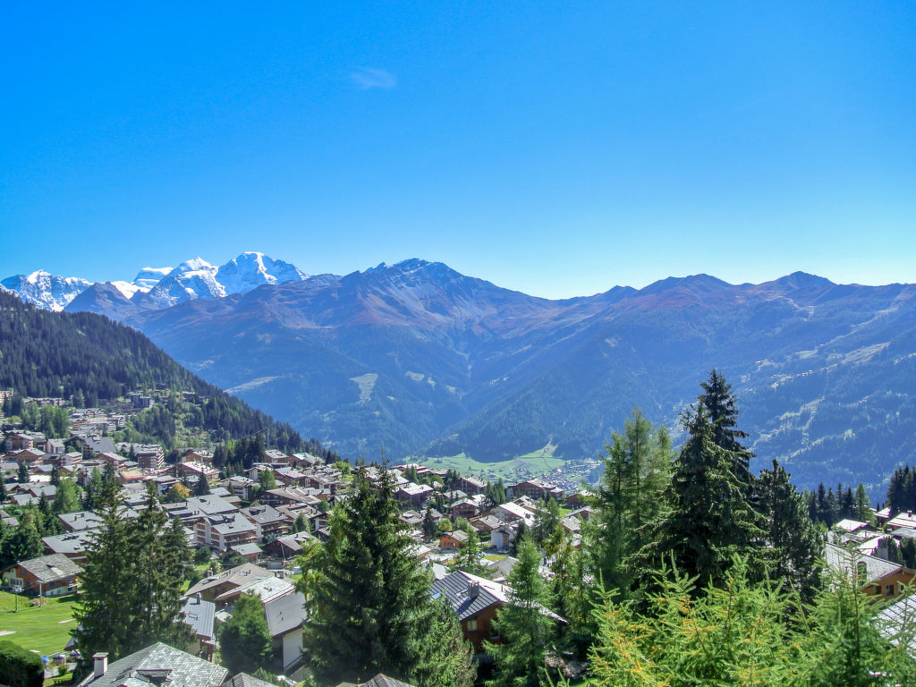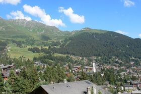 Mirador 186, 4-Zimmer-Wohnung 100 m2 auf 2 Stockwerken im 1. Stock, Südwestlage. Komfortabel und schön eingerichtet: Wohn-/Esszimmer mit offenem Kamin, Essecke, Kabel-TV und DVD. Ausgang zum Balkon, Richtung Süden und Richtung Westen. 2 Zimmer, jedes Zimmer mit 1 Doppelbett. Küche (4 Kochplatten, Backofen, Geschirrspüler, Mikrowelle, Tiefkühler). Bad/WC, Dusche/WC. Dachgeschoss: 1 abgeschrägtes Zimmer mit Dachfenster mit 1 franz. Bett. Grosser Balkon 28 m2, Südlage und Westlage. Terrassenmöbel, Liegestühle (2). Herrliche Panoramasicht auf die Berge, das Tal, die Skipiste, die Landschaft und die Ortschaft. Zur Verfügung: Internet (Wireless LAN, gratis). Garage Nr. 39 et 48 (2 Autos), Höhe 190 cm. Bitte beachten: Nichtraucher-Unterkunft. Die Deckenhöhe des Schlafzimmers im Dachgeschoss reicht von 1.80 - 0.70 m. Die Wohnung ist rollstuhlgängig.