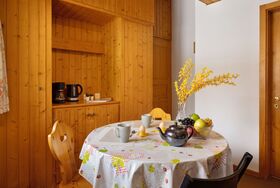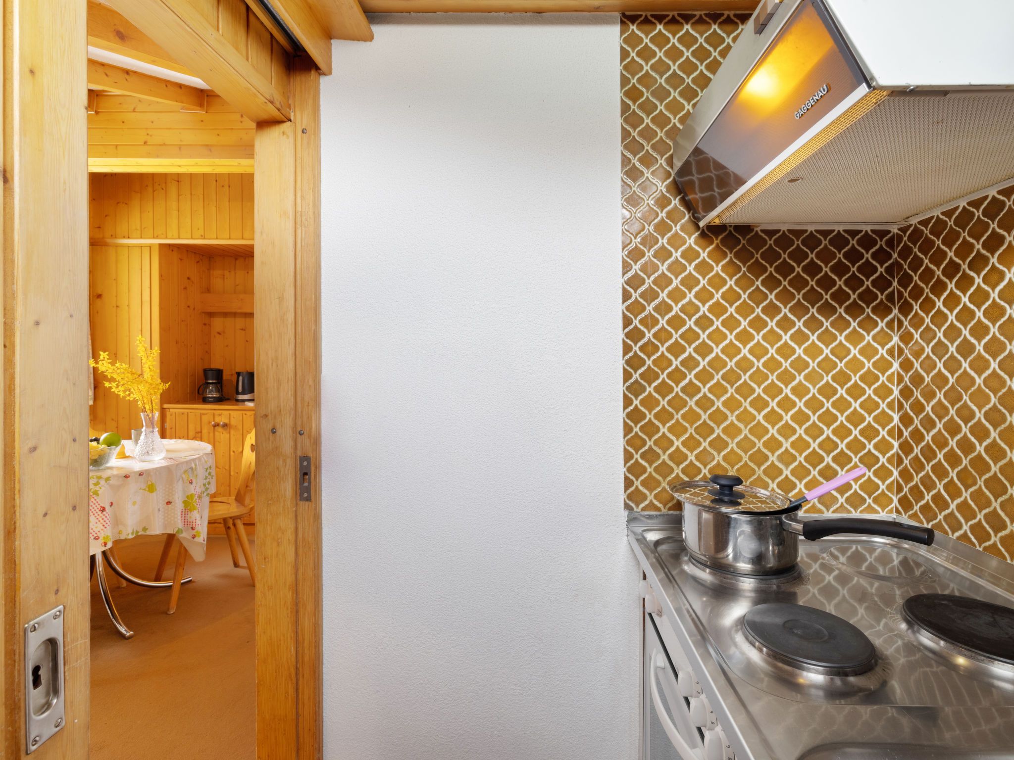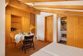 Eldorado 321, 1-Zimmer-Wohnung 25 m2 im 4. Stock, Nordlage. Einfach eingerichtet: Wohn-/Esszimmer mit 1 Doppelbett und Esstisch. Kleine Küche (3 Kochplatten, Backofen). Dusche/WC. Keine Sicht. Bitte beachten: Nichtraucher-Unterkunft, kein Parkplatz. Maximal 1 Haustier/Hund erlaubt.