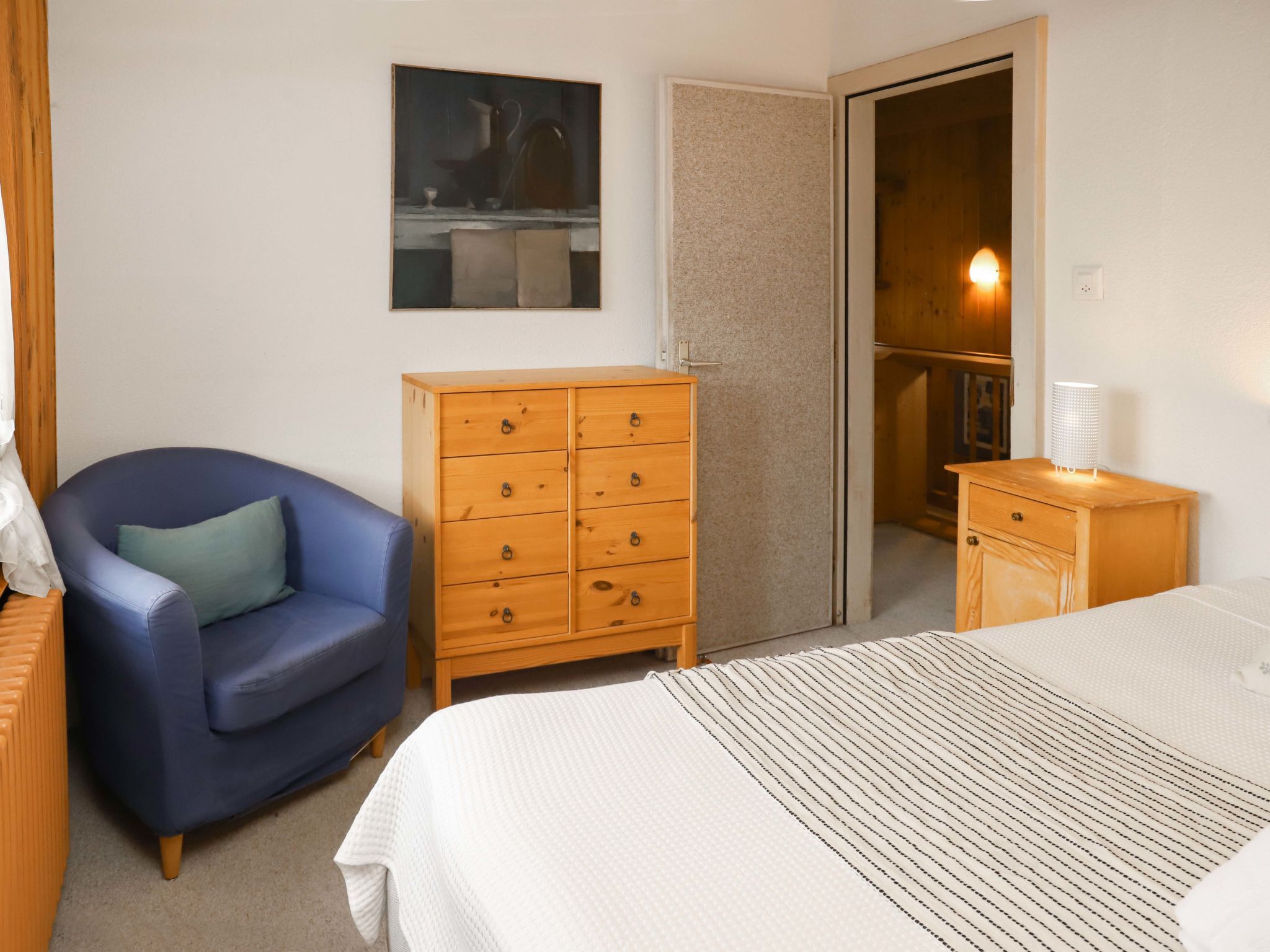 Djabò 1er, 4-Zimmer-Maisonette-Wohnung 90 m2 im 1. Stock. Einfach und zweckmässig eingerichtet: Wohn-/Esszimmer mit offenem Kamin und E-Heizung. Ausgang zur Terrasse. 1 Zimmer mit 1 franz. Bett (140 cm, Länge 200 cm). Offene Küche (4 Kochplatten, Geschirrspüler, 4 Glaskeramikplatten, Racletteofen, Kombinationsmikrowelle, Fondue Set (Käse)). Ausgang zur Terrasse. Dusche/WC. Obergeschoss: 1 Zimmer mit 1 Doppelbett (2 x 90 cm, Länge 200 cm). 1 Zimmer mit 3 Betten (90 cm, Länge 200 cm). Bad. Panoramasicht auf die Berge und das Tal. Zur Verfügung: Internet (Wireless LAN, gratis). Parkplatz (1 Auto) beim Haus. 1 kleines Haustier/Hund erlaubt.