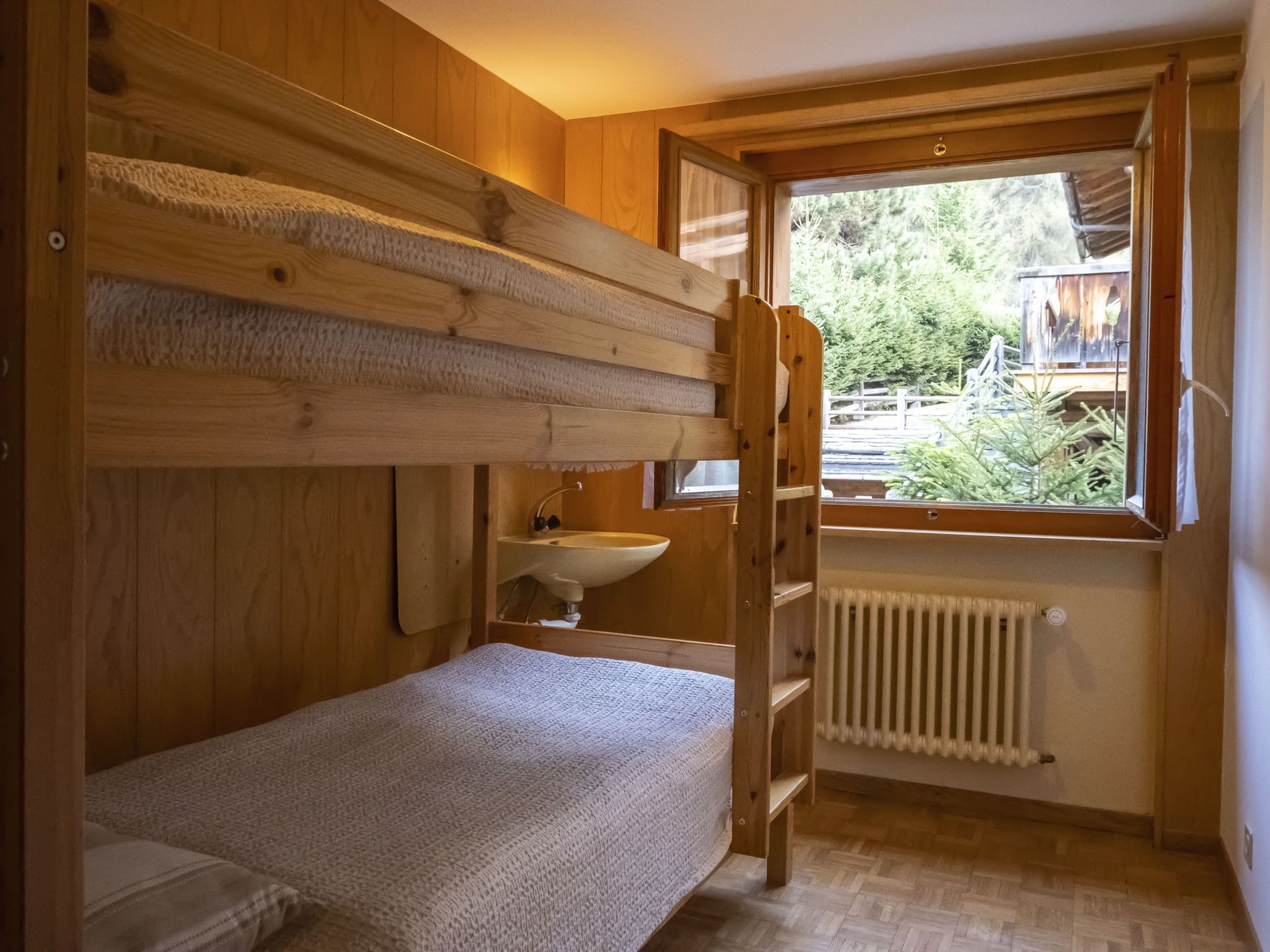 Pierreval 18, 4-Zimmer-Wohnung 106 m2 im 1. Stock, Südlage. Zweckmässig und schön eingerichtet: Wohn-/Esszimmer, Richtung Süden mit offenem Kamin, Esstisch und Kabel-TV. Ausgang zum Balkon, Richtung Süden. 1 Zimmer, Richtung Nordosten mit 2 Betten. 1 Zimmer, Richtung Norden mit 1 x 2 Etagenbetten (Länge 200 cm), Waschbecken. 1 Zimmer, Richtung Norden mit 2 Betten. Küche (4 Kochplatten, Backofen, Geschirrspüler, Toaster, Wasserkocher, Mikrowelle). Bad, sep. WC. Grosser Balkon, Südlage. Balkonmöbel. Sicht auf die Berge, die Landschaft und die Ortschaft. Zur Verfügung: Haartrockner. Internet (Wireless LAN, gratis). Bitte beachten: Nichtraucher-Unterkunft, kein Parkplatz. Maximal 1 Haustier/Hund erlaubt.