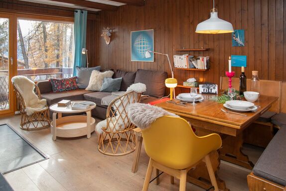 Entremont 60, 2-Zimmer-Wohnung 54 m2, im Erdgeschoss. Einfach und zweckmässig eingerichtet: Wohn-/Esszimmer mit 2 Schlafmöglichkeiten, offenem Kamin und Kabel-TV. Ausgang zum Garten. 1 Zimmer mit 1 Doppelbett. Küche (7 Kochplatten, Toaster, Wasserkocher, Mikrowelle, Tiefkühler, elektrische Kaffeemaschine, Kapseln für die Kaffeemaschine (Nespresso) extra, Fondue Set (Chinoise, Käse)). Bad/WC. Kleine Terrasse, Südlage, kleiner Gartensitzplatz. Balkonmöbel. Eingeschränkte Sicht auf die Berge und die Landschaft. Zur Verfügung: Haartrockner. Internet (Wireless LAN, gratis). Parkplatz beim Haus. Bitte beachten: Nichtraucher-Unterkunft. Maximal 1 Haustier/Hund erlaubt.