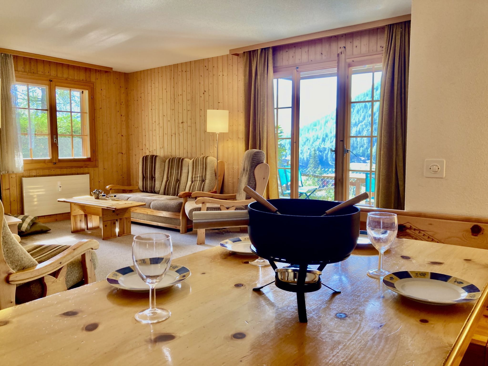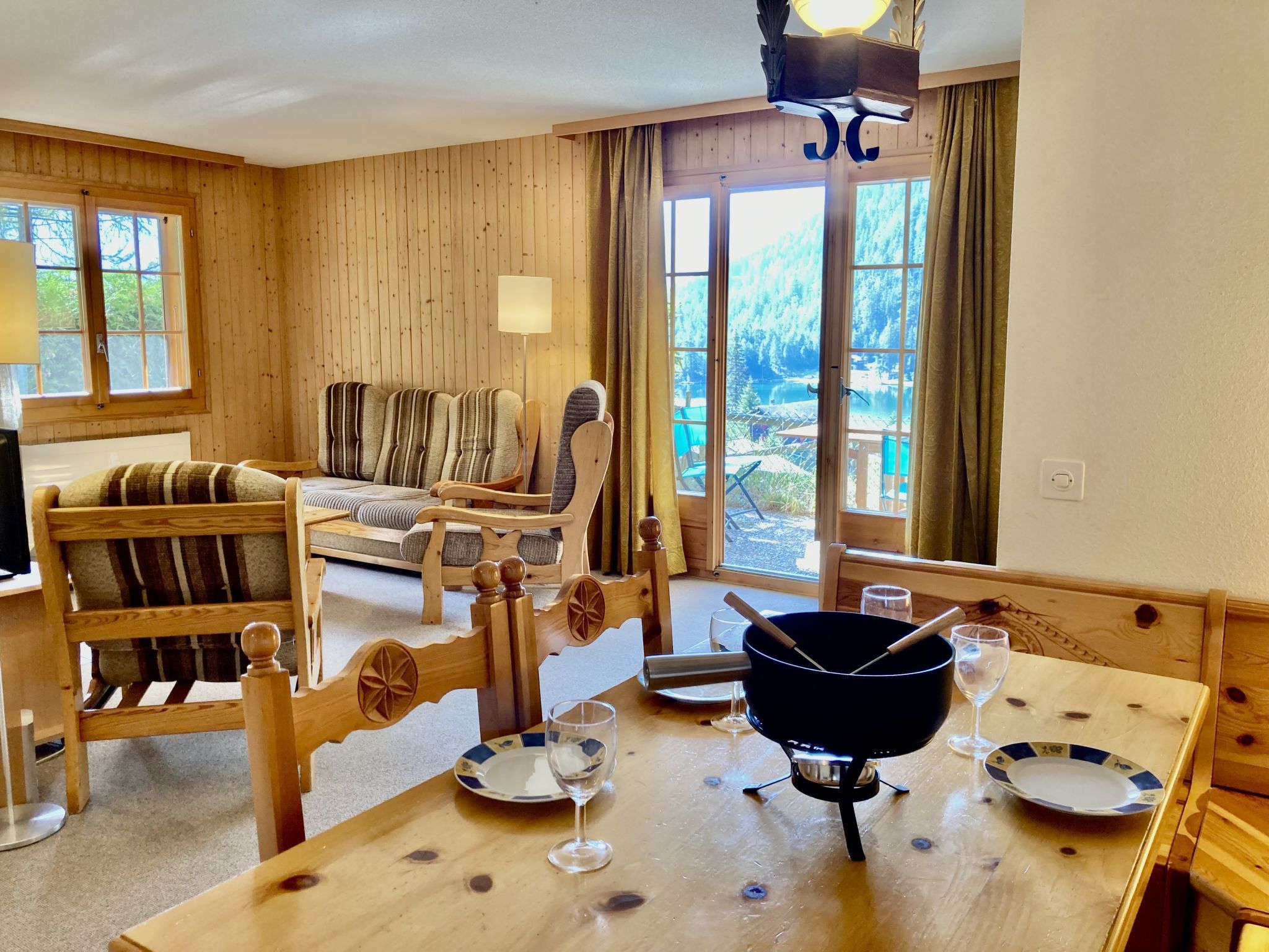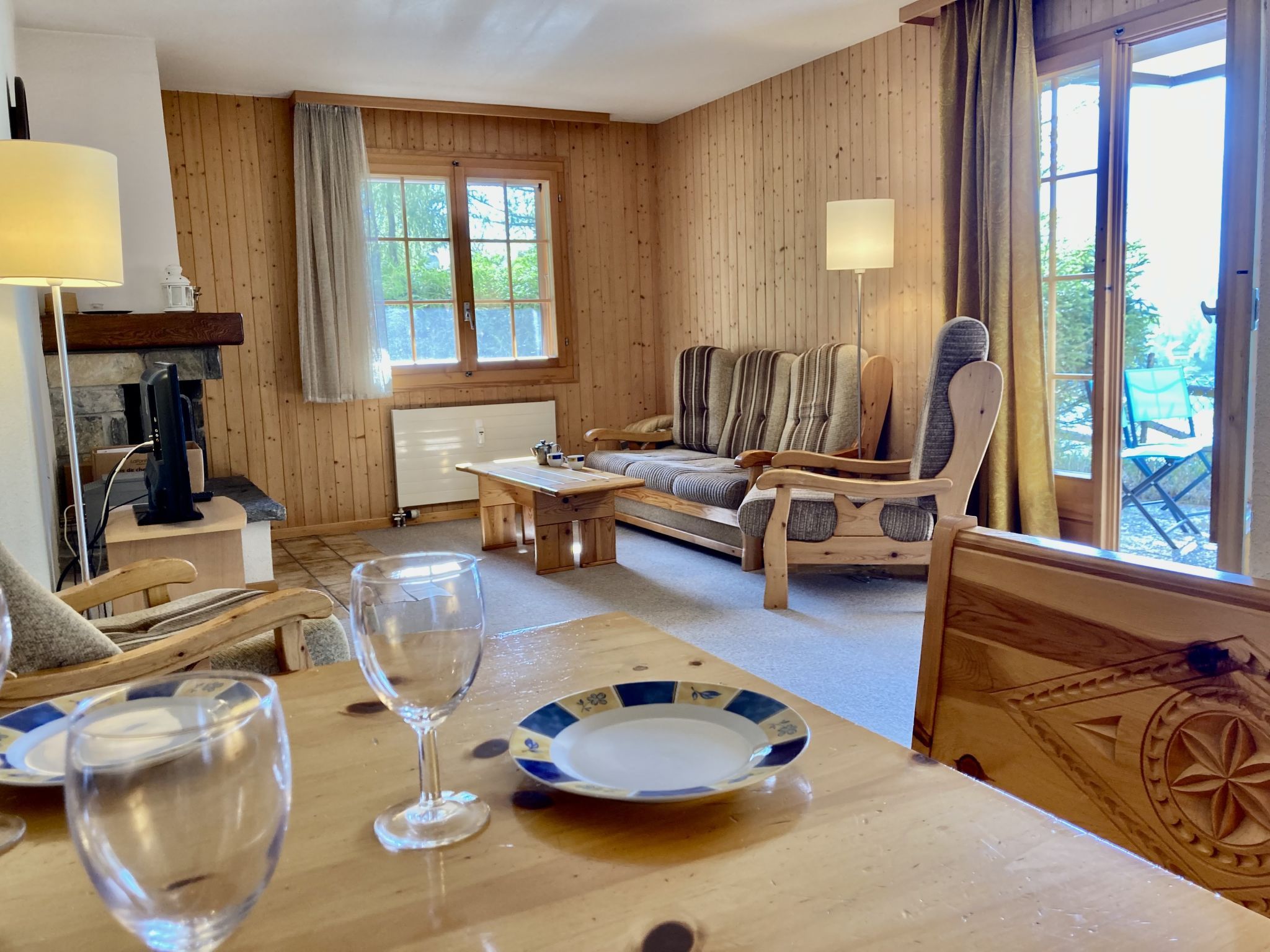 Kleines, komfortables Mehrfamilienhaus La Colline, umgeben von Bäumen. Im Ort, 250 m vom Zentrum, erhöhte Lage auf einem Hügel, 20 m vom Waldrand, 250 m vom See, in einer Sackgasse. Im Hause: Wireless LAN, Skiraum. Steile, schmale Zufahrt bis zum Haus. Im Winter bitte Schneeketten mitbringen. Parkplatz beim Haus, öffentliche Parkplätze 900 m. Einkaufsgeschäft 300 m, Restaurant 100 m, Bäckerei 600 m, Bushaltestelle 600 m, Freibad 800 m. Tennis 400 m, Skipisten 900 m, Skischule 400 m, Ski-Kindergarten 500 m, Schlittelbahn 900 m, Eisfeld 700 m, Kinderspielplatz 600 m, Angelmöglichkeit 300 m.