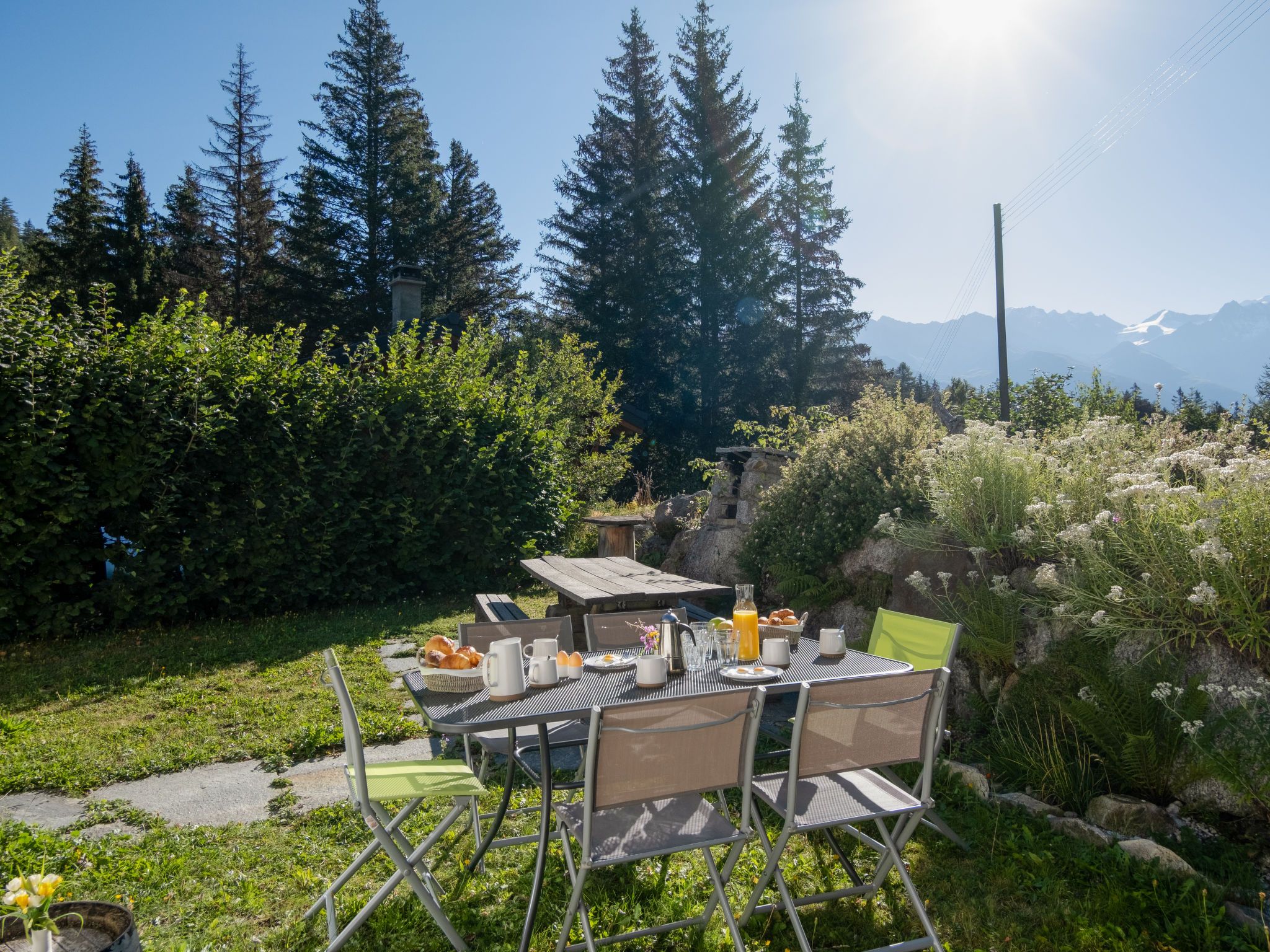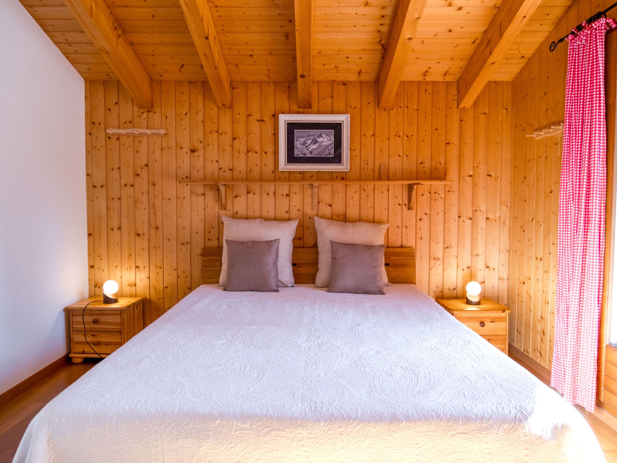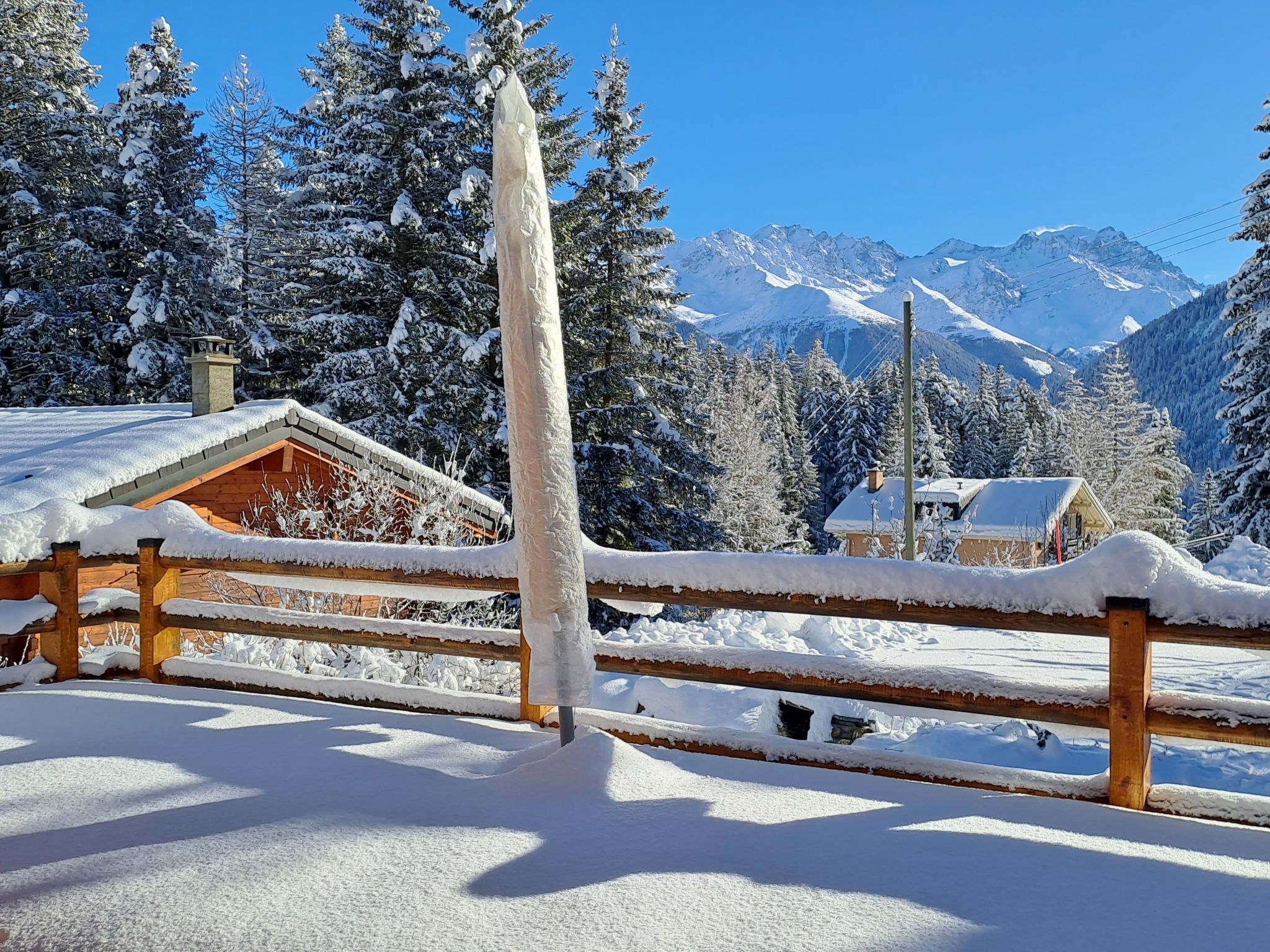 Mon Rêve, 4-Zimmer-Chalet 100 m2 auf 2 Stockwerken. Geräumig, renoviert im Jahre 2021, geschmackvoll eingerichtet: grosses Wohn-/Esszimmer mit Kabel-TV, E-Heizung und Holzofen. Ausgang zum Garten, Richtung Südosten. Grosse Kochnische (Geschirrspüler, 4 Glaskeramikplatten, Toaster, Wasserkocher, Mikrowelle, elektrische Kaffeemaschine, Kapseln für die Kaffeemaschine (Nespresso) extra, Racletteofen, Fondue Set (Käse)). Dusche/WC. Obergeschoss: 1 Zimmer mit 1 franz. Bett (1 x 160 cm, Länge 200 cm). Ausgang zur Terrasse. 1 Zimmer mit 1 franz. Bett (1 x 140 cm, Länge 200 cm). Ausgang zur Terrasse. 1 Zimmer mit 2 x 2 Etagenbetten (90 cm, Länge 200 cm). Bad. Südostlage, Garten 50 m2, Rasen 100 m2. Terrassenmöbel, Gartengrill, Liegestühle. Panoramasicht auf die Berge. Zur Verfügung: Waschmaschine, Wäschetrockner, Kinderhochstuhl, Babybett, Haartrockner. Internet (WLAN, gratis). Bitte beachten: Nichtraucher-Unterkunft. Maximal 1 Haustier/Hund erlaubt.