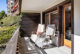Schönes Appartementhaus Parc, umgeben von Bäumen. Im Ortszentrum von la station, 30 m vom Waldrand, 100 m vom See, in einer Sackgasse. Im Hause: Fahrstuhl, Skiraum, Zentralheizung. Zufahrt bis 50 m zum Haus. (10 Stufen). Öffentliche Parkplätze 850 m. Einkaufsgeschäft 200 m, Restaurant 100 m, Bäckerei 350 m, Bushaltestelle 50 m, Freibad 1 km. Tennis 300 m, Luftseilbahn 850 m, Skischule 300 m, Ski-Kindergarten 350 m, Eisfeld 800 m, Kinderspielplatz 600 m, Angelmöglichkeit.