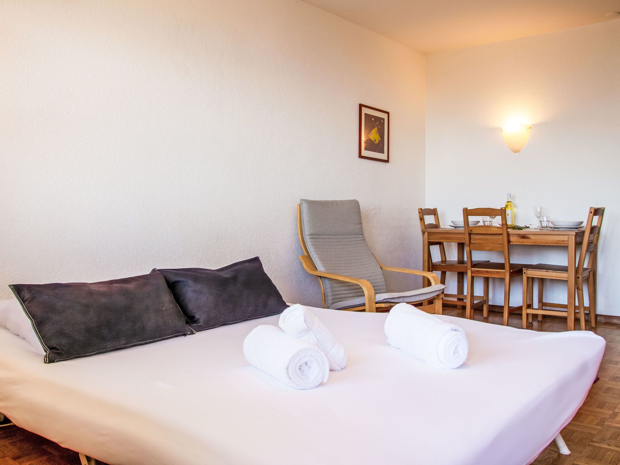 Valaisia 34A, 1-Zimmer-Wohnung 25 m2 im 3. Stock. Schön eingerichtet: Wohn-/Schlafzimmer mit 1 franz. Bett (180 cm, Länge 200 cm), Kabel-TV und Radio. Ausgang zum Balkon, Richtung Osten. Kochnische im Eingang (2 Kochplatten, Mikrowelle, elektrische Kaffeemaschine, Racletteofen, Fondue Set (Käse)). Bad/WC. Balkon, Ostlage. Balkonmöbel. Schöne Sicht auf die Berge und das Tal. Zur Verfügung: Haartrockner. Internet (WLAN, gratis). Bitte beachten: Nichtraucher-Unterkunft.