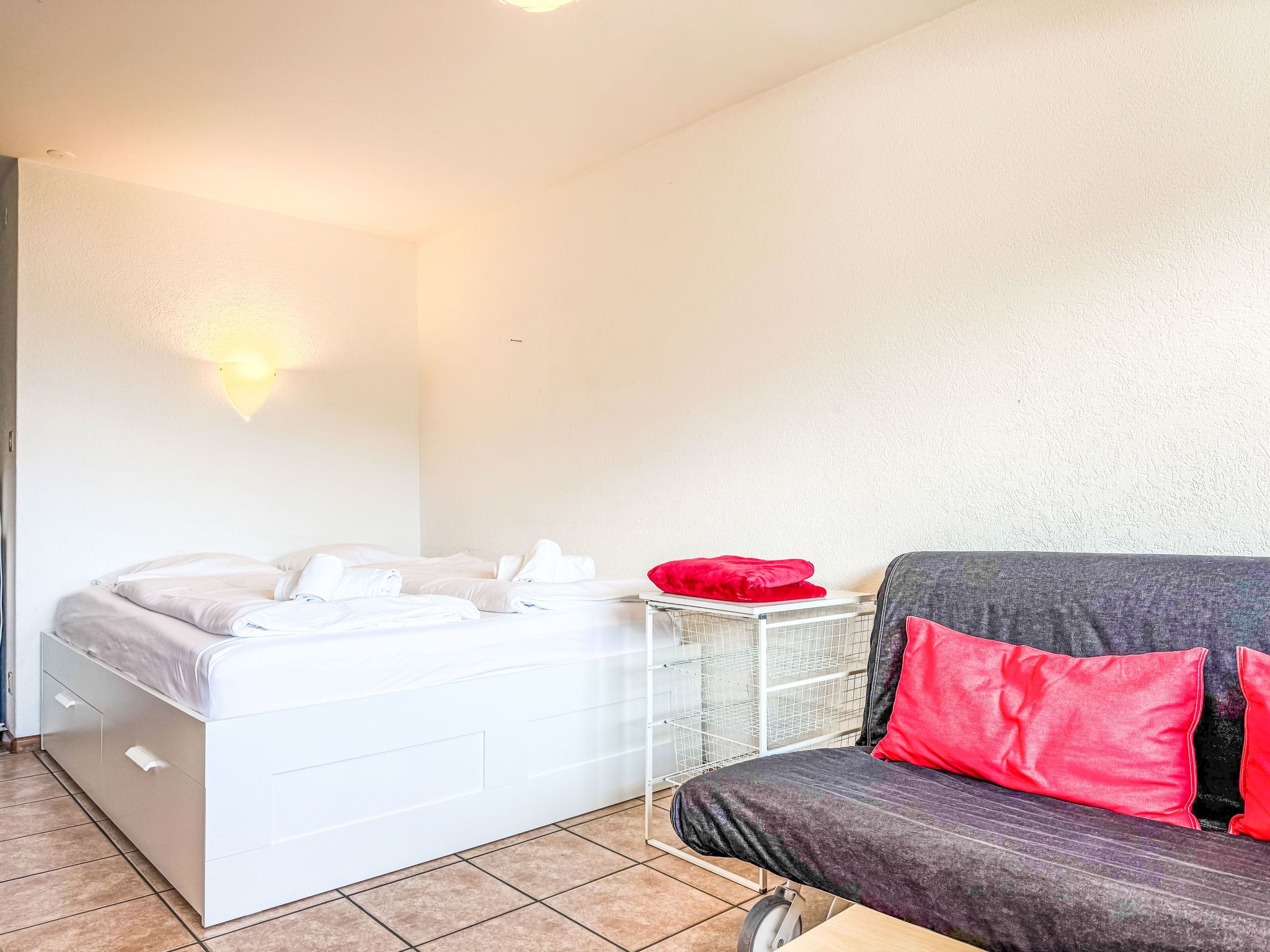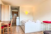 Valaisia 35A, 1-Zimmer-Wohnung 25 m2 im 3. Stock. Teilweise renoviert im Jahre 2014, schön eingerichtet: Wohn-/Esszimmer mit 1 franz. Bett (160 cm, Länge 200 cm), Kabel-TV. Ausgang zum Balkon. Kochnische im Eingang (2 Kochplatten, Wasserkocher, elektrische Kaffeemaschine, Racletteofen, Kombinationsmikrowelle). Bad/WC. Balkon, Ostlage. Balkonmöbel. Schöne Sicht auf die Berge und das Tal. Zur Verfügung: Haartrockner. Internet (WLAN, gratis). Bitte beachten: Nichtraucher-Unterkunft.