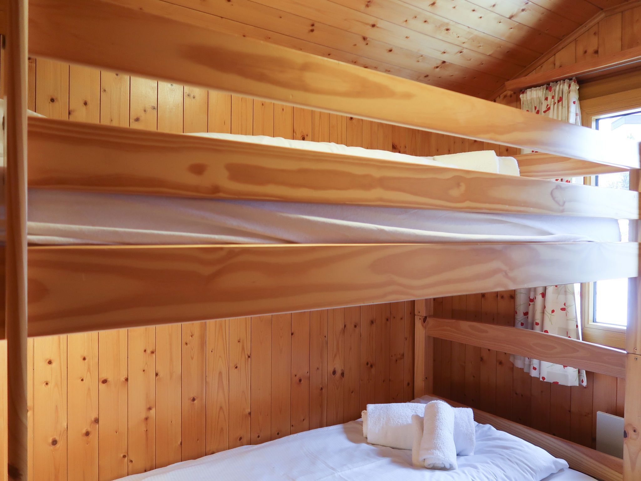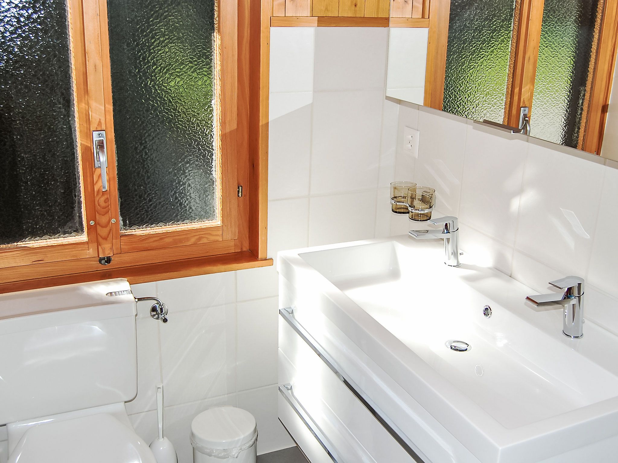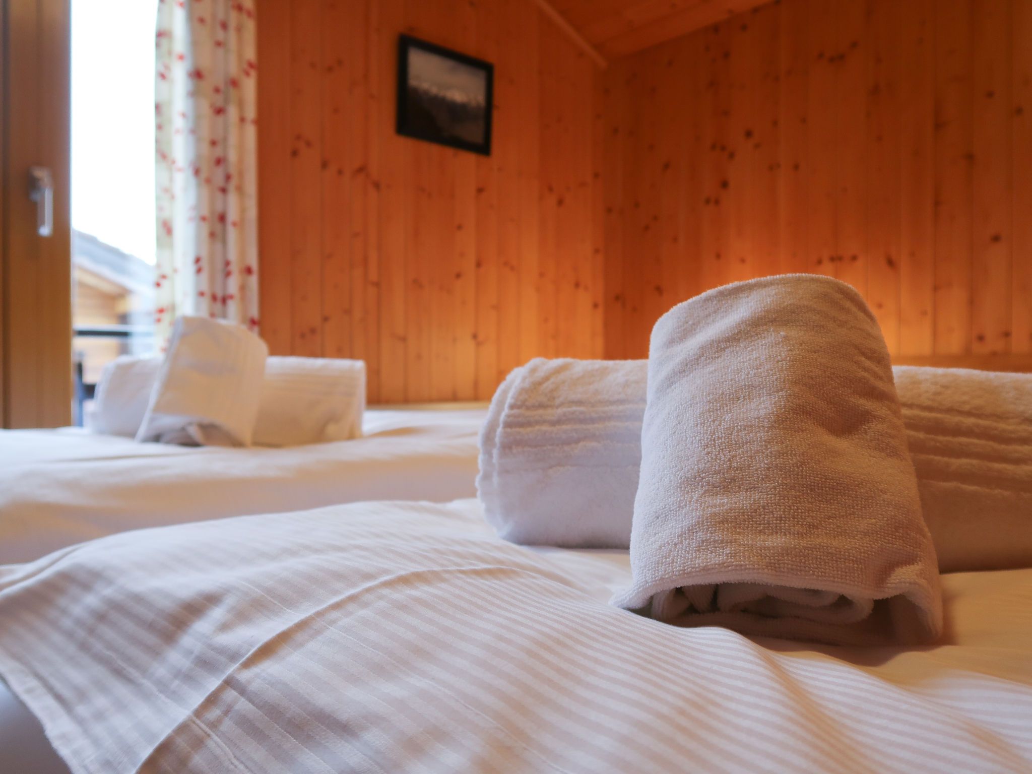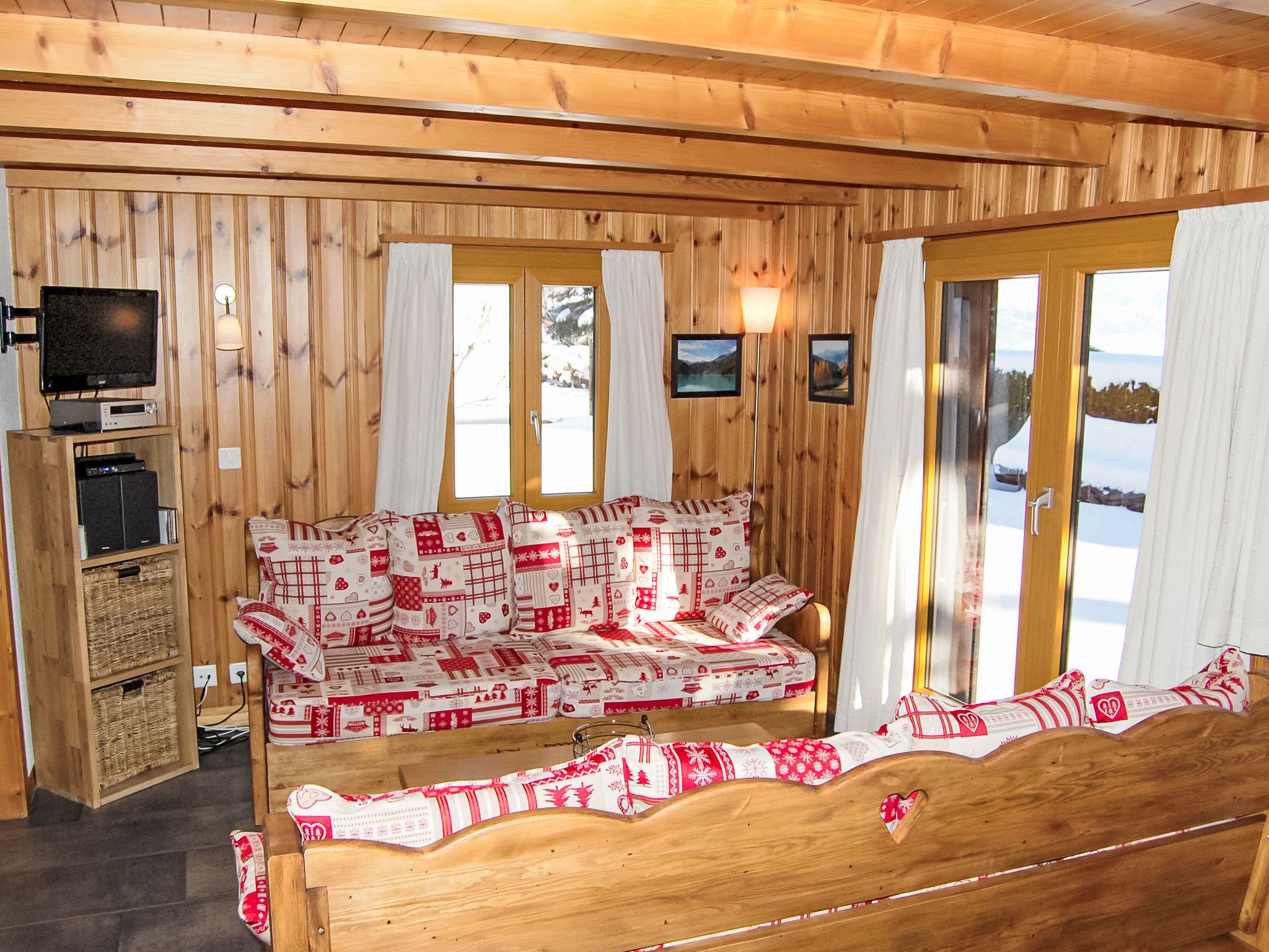 Coucordin, 4-Zimmer-Chalet 73 m2 auf 2 Stockwerken. Schön eingerichtet: Wohn-/Esszimmer mit Sat-TV, Kabel-TV, Stereoanlage und E-Heizung. Ausgang zur Terrasse. Kleine, offene Küche (Backofen, Geschirrspüler, 4 Induktionskochplatten, Toaster, Wasserkocher, Racletteofen, Fondue Set (Chinoise)). Sep. WC. Obergeschoss: 1 Zimmer mit 1 franz. Bett (160 cm, Länge 200 cm). 1 kleines Zimmer mit 1 x 1 Etagenbetten (90 cm, Länge 200 cm). 1 Zimmer mit 1 franz. Bett (180 cm, Länge 200 cm). Dusche/WC, Doppelwaschbecken. Kleiner Balkon, Ostlage, Terrasse 20 m2, Südostlage. Terrassenmöbel, Gartengrill. Zur Verfügung: Waschmaschine, Wäschetrockner, Haartrockner. Internet (Wireless LAN, gratis). Parkplatz (2 Autos). Bitte beachten: Nichtraucher-Haus.