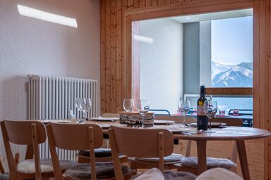 Grands Ducs 101G, 4-Zimmer-Wohnung 95 m2 im 1. Stock. Komfortabel eingerichtet: Wohn-/Esszimmer mit Panoramafenster mit offenem Kamin, Kabel-TV, Video und Stereoanlage. Ausgang zur Terrasse. 1 Zimmer mit 1 franz. Bett (180 cm, Länge 200 cm). Ausgang zum Garten. 2 Zimmer, jedes Zimmer mit 2 Betten (90 cm, Länge 200 cm). Offene Küche (Backofen, Geschirrspüler, 4 Glaskeramikplatten, Mikrowelle, Tiefkühler, Racletteofen, Fondue Set (Käse)). Bad/WC, Dusche/WC. Grosse Terrasse 105 m2, Nordlage und Westlage, Garten 70 m2. Terrassenmöbel. Panoramasicht auf die Berge und das Tal. Zur Verfügung: Kinderhochstuhl, Babybett, Haartrockner. Internet (WLAN, gratis). Parkplatz Nr. 101, Garage, Höhe 210 cm, Breite 230 cm. Bitte beachten: Nichtraucher-Unterkunft.