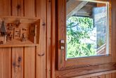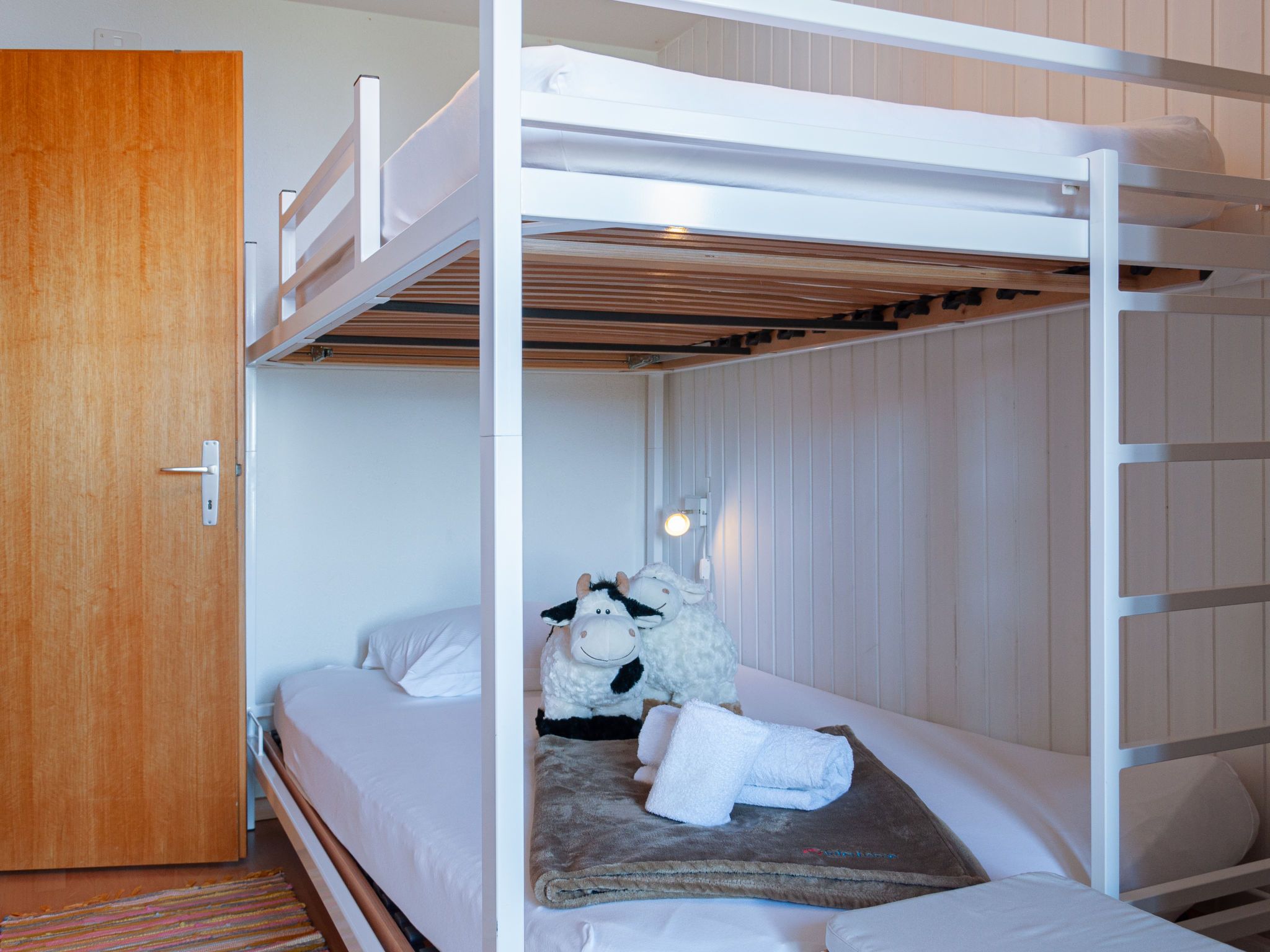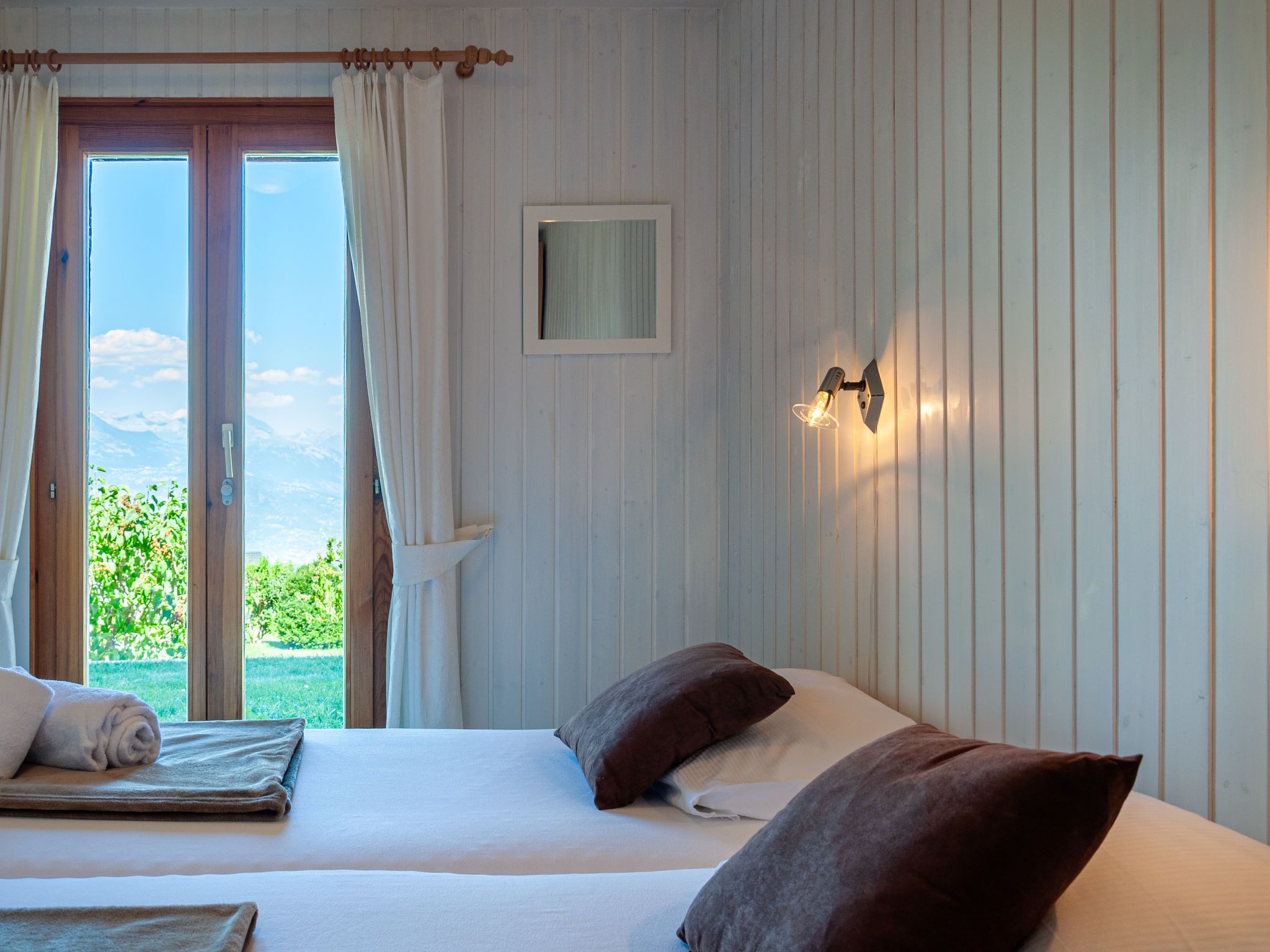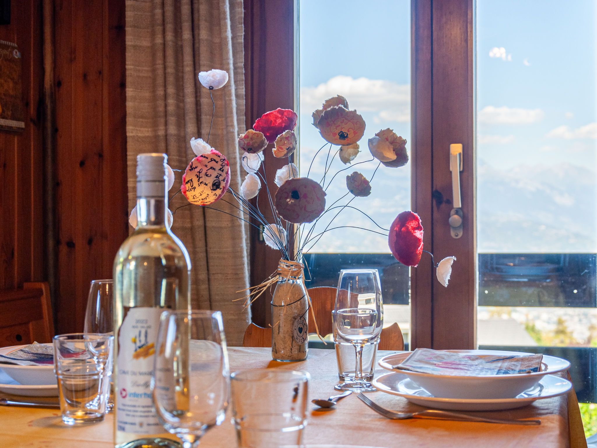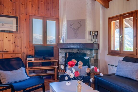 Lao-Lao, 3-Zimmer-Chalet 60 m2. Schön und gemütlich eingerichtet: Wohn-/Esszimmer mit 1 Diwanbett (80 cm, Länge 180 cm), offenem Kamin (nur Deko), Sat-TV, Radio und CD. Ausgang zum Balkon. Offene Küche (Backofen, Geschirrspüler, 4 Glaskeramikplatten, Toaster, Wasserkocher, Mikrowelle, elektrische Kaffeemaschine, Kapseln für die Kaffeemaschine (Nespresso) extra, Racletteofen, Fondue Set (Chinoise, Käse)). E-Heizung. Unteres Geschoss: 1 Zimmer mit 1 Doppelbett (2 x 90 cm, Länge 200 cm). Ausgang zum Garten, Richtung Osten. 1 Zimmer mit 1 x 2 Etagenbetten (120 cm, Länge 200 cm). Ausgang zum Garten, Richtung Osten. Bad/WC. Balkon, Ostlage. Terrassenmöbel, Gartengrill, Liegestühle (4). Sehr schöne Sicht auf die Berge und das Tal. Zur Verfügung: Haartrockner. Internet (WLAN). Parkplatz. Bitte beachten: Nichtraucher-Unterkunft. TV nur CH, DE.