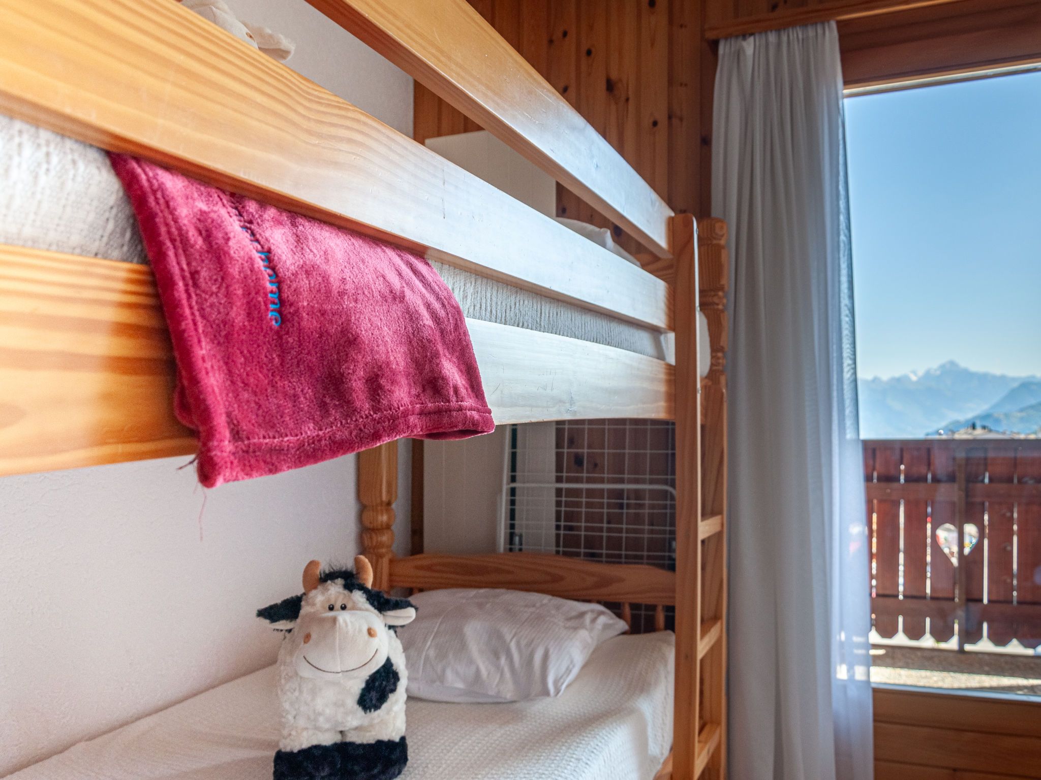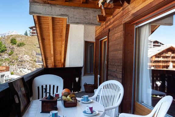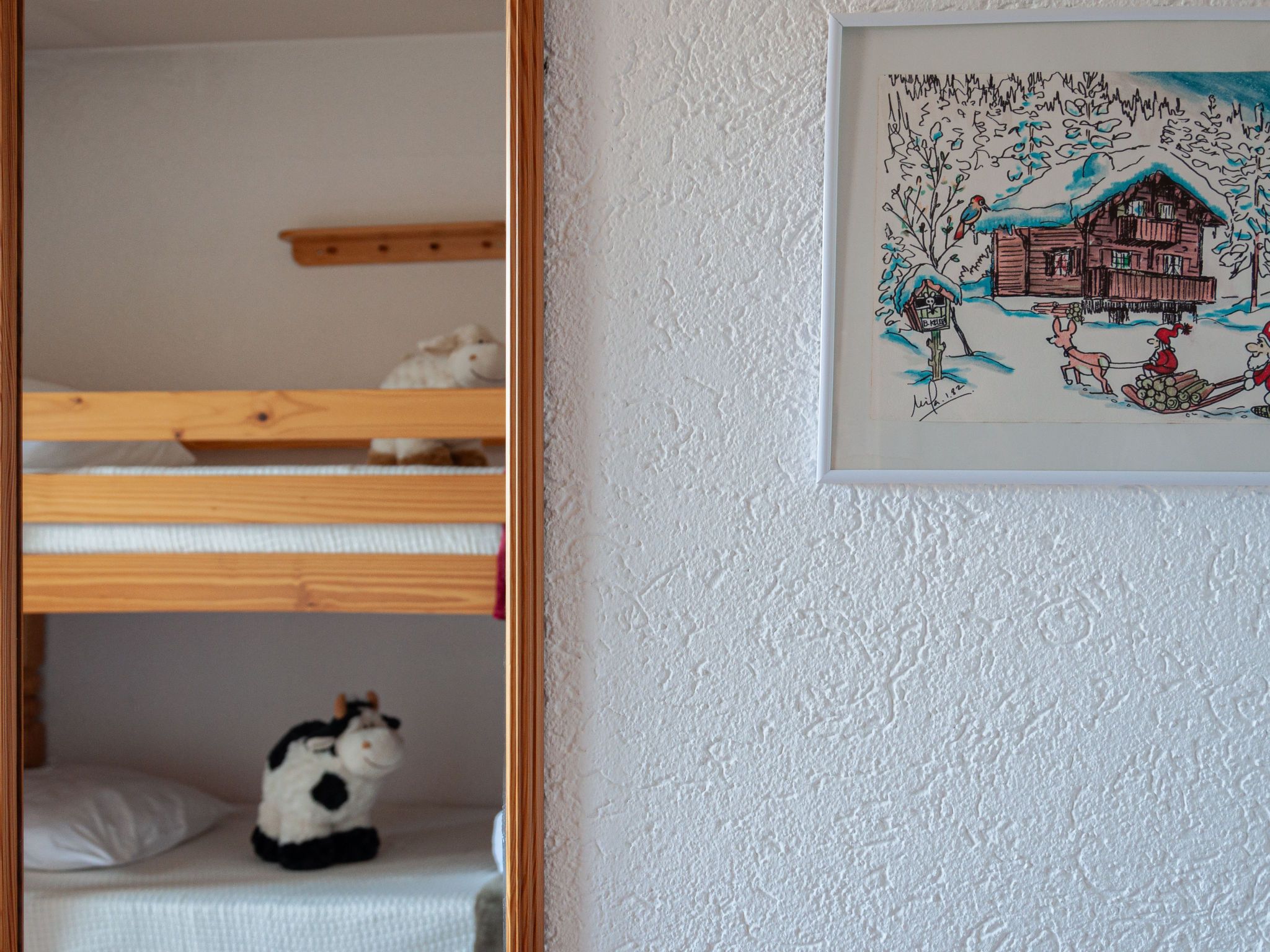 Lake Placid A7, 4-Zimmer-Attikawohnung 90 m2 im 4. Stock. Geräumig und hell, abgeschrägt, schön und geschmackvoll eingerichtet: Eingang. Grosses Wohn-/Esszimmer mit Schwedenofen und Kabel-TV. Ausgang zum Balkon, zur Terrasse. 1 Kinderzimmer mit 1 x 2 Etagenbetten (90 cm, Länge 195 cm). Ausgang zum Balkon, Richtung Osten. 1 Zimmer mit 1 franz. Bett (140 cm, Länge 200 cm). 1 abgeschrägtes Zimmer mit 1 franz. Bett (160 cm, Länge 200 cm). Küche (Geschirrspüler, 4 Glaskeramikplatten, Mikrowelle, elektrische Kaffeemaschine, Kapseln für die Kaffeemaschine (Delizio) extra, Racletteofen, Fondue Set (Chinoise, Käse)). Bad/WC, sep. WC. Balkon, Westlage und Ostlage, grosse Terrasse, Nordlage. Balkonmöbel. Sicht auf die Berge und die Ortschaft. Zur Verfügung: Haartrockner. Internet (Wireless LAN, gratis). Parkplatz Nr. A7 (überdacht), Höhe 230 cm. Bitte beachten: Nichtraucher-Unterkunft.