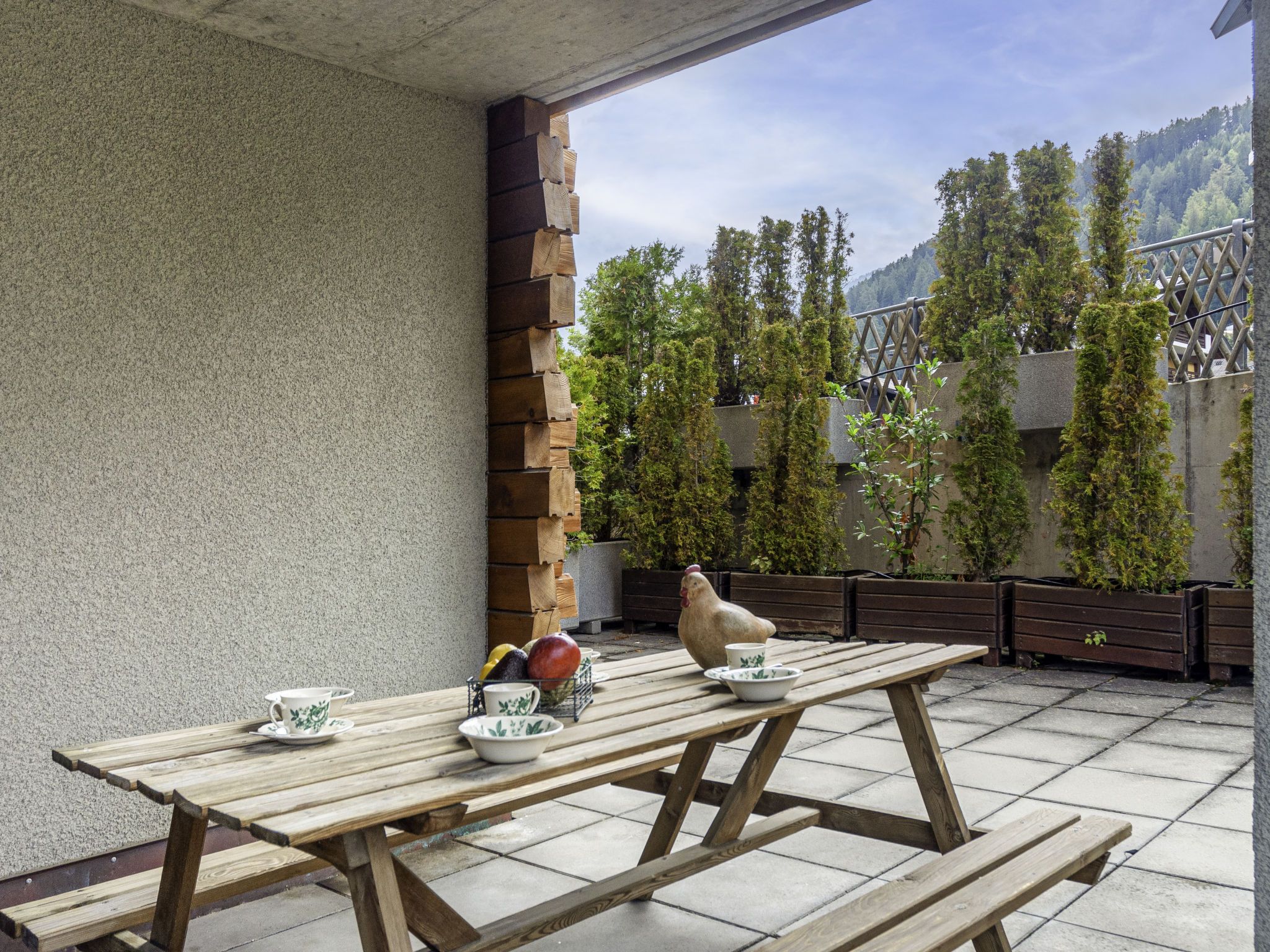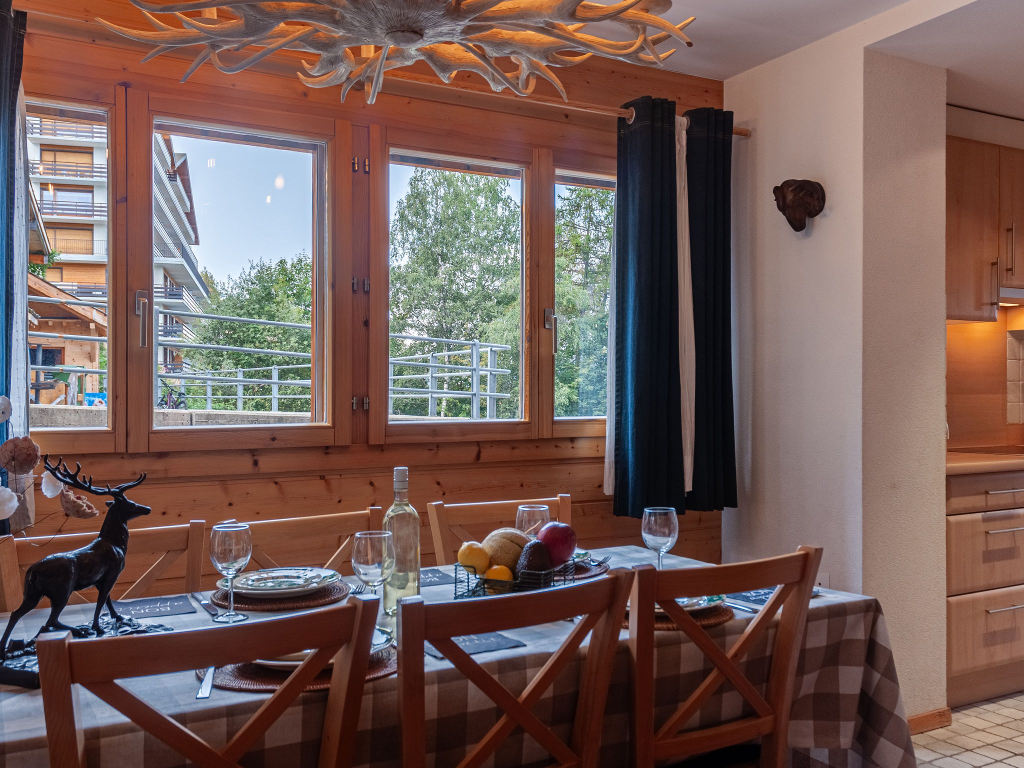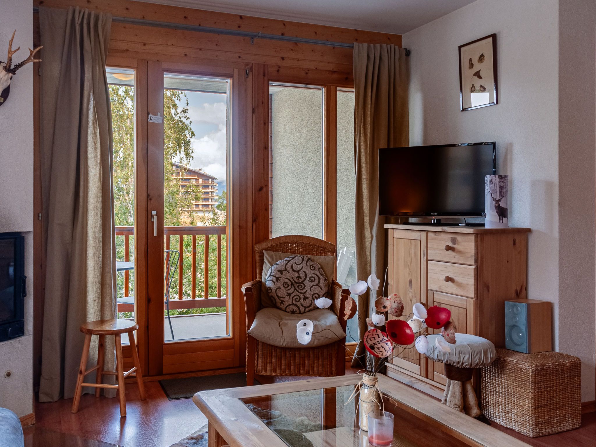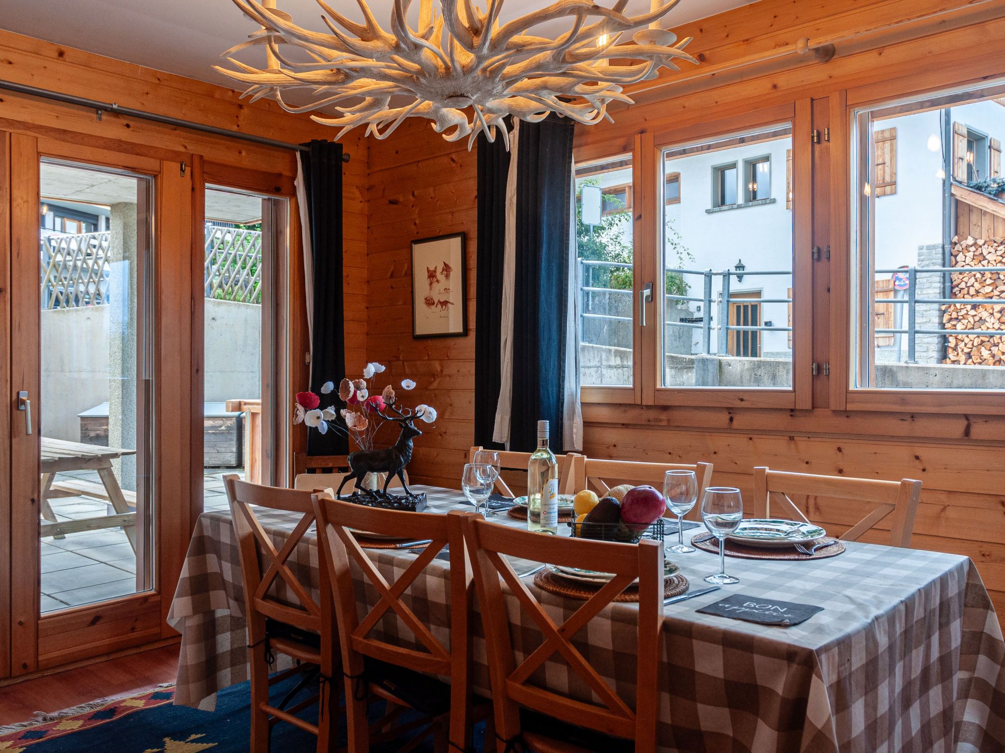 Les Chouettes 4, 3-Zimmer-Wohnung 80 m2, im Erdgeschoss. Komfortabel eingerichtet: Wohn-/Esszimmer. Ausgang zur Terrasse. Salon mit offenem Kamin, Kabel-TV und Stereoanlage. Ausgang zur Terrasse. 2 Zimmer, jedes Zimmer mit 2 Betten (90 cm, Länge 190 cm). Offene Küche (Backofen, Geschirrspüler, Toaster, Wasserkocher, Mikrowelle, elektrische Kaffeemaschine, Kapseln für die Kaffeemaschine (Nespresso) extra, Racletteofen, Fondue Set (Chinoise, Käse)). Bad/WC, Dusche/WC. Terrasse 40 m2, Südlage Terrasse 12 m2, Nordwestlage. Terrassenmöbel. Schöne Sicht auf die Ortschaft. Zur Verfügung: Internet (Wireless LAN, gratis). Parkplatz Nr. 4. Bitte beachten: Nichtraucher-Unterkunft.