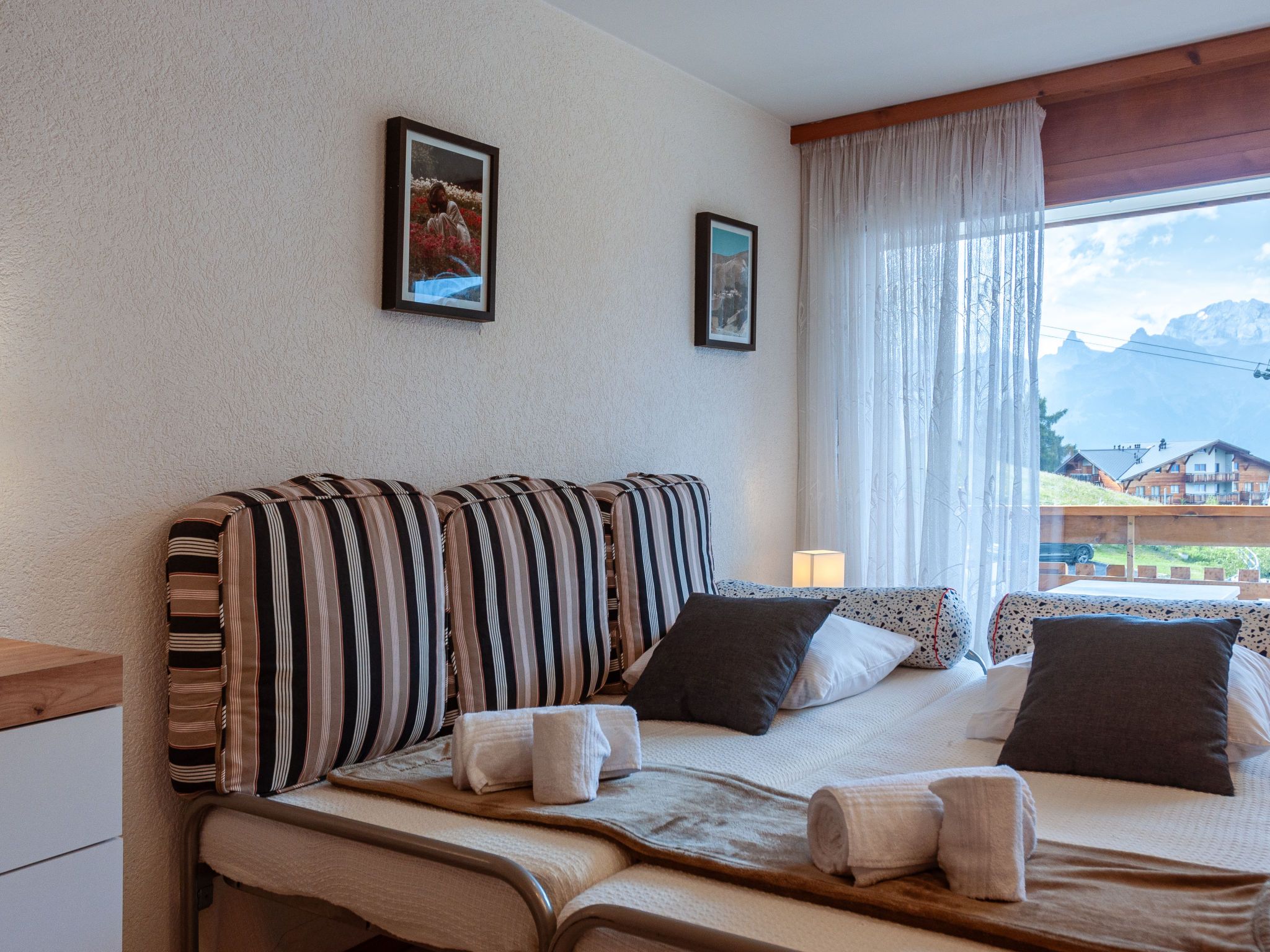 Victoria 1 B1, 1-Zimmer-Wohnung 31 m2 im 1. Stock, Nordwestlage. Zweckmässig und schön eingerichtet: Eingang mit 1 x 2 Etagenbetten (90 cm, Länge 190 cm). Wohn-/Esszimmer mit 2 Ausziehbetten (2 Pers. 2 x 90 cm, Länge 200 cm), Kabel-TV und DVD. Ausgang zum Balkon, Richtung Norden und Richtung Westen. Offene Küche (4 Kochplatten, Backofen, Geschirrspüler, Mikrowelle, elektrische Kaffeemaschine, Kapseln für die Kaffeemaschine (nespresso) extra, Racletteofen, Fondue Set (Käse)). Dusche/WC. Balkonmöbel. Schöne Sicht auf die Berge und die Skipiste. Zur Verfügung: Haartrockner. Internet (WLAN, gratis). Parkplatz Nr. C1 dans la montée. Bitte beachten: Nichtraucher-Unterkunft. Maximal 1 Haustier/Hund erlaubt. Diese Wohnung kann mit der Victoria C1 Wohnung gemietet werden, da sie beide zusammenhängend sind und über ihre 2 Balkone direkt erreichbar sind. Anstelle eines abgeschlossenen Schlafzimmers befinden sich manche Schlafplätze in einem offenen Bereich (Galerie, Nische etc.).