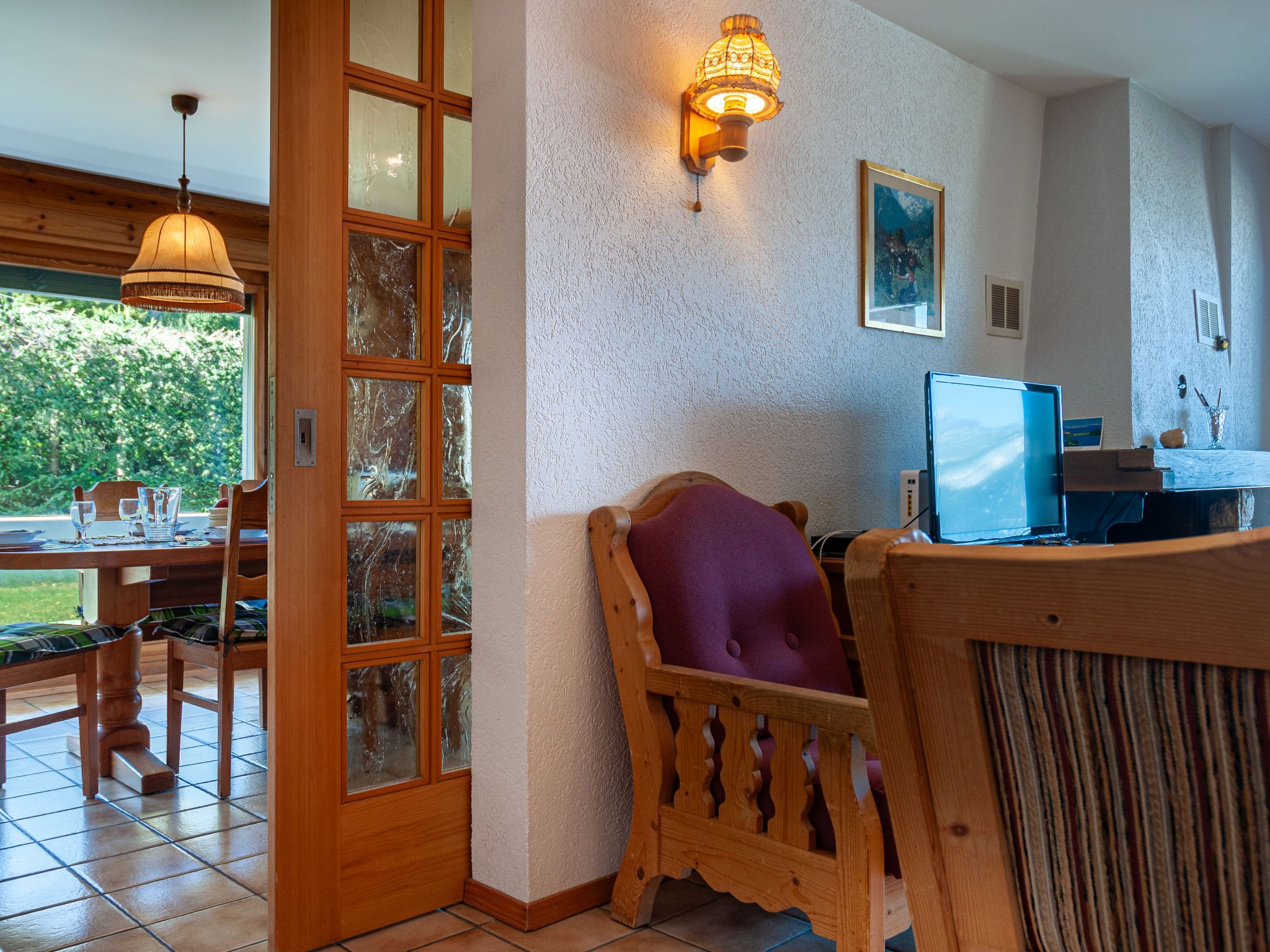 Hauts De Nendaz B OP, 5-Zimmer-Wohnung 104 m2, im erhöhten Erdgeschoss. Geschmackvoll eingerichtet: Wohnzimmer mit offenem Kamin, Kabel-TV und DVD. Ausgang zum Balkon. 1 Zimmer mit 1 franz. Bett (160 cm, Länge 200 cm). 1 Zimmer mit 2 Betten (90 cm, Länge 190 cm). 1 kleines Zimmer mit 2 Betten (90 cm, Länge 190 cm). Küche (Backofen, Geschirrspüler, Toaster, Wasserkocher, Mikrowelle, elektrische Kaffeemaschine, Kapseln für die Kaffeemaschine (Nespresso) extra) mit Esstisch. Bad/WC, Dusche/WC. Balkon, Nordlage und Westlage, Terrasse, Südlage und Westlage, Rasen 100 m2. Terrassenmöbel, Abstellkammer. Sicht auf die Berge und die Skipiste. Zur Verfügung: Internet (WLAN, gratis). Parkplatz, Garage, Höhe 195 cm.