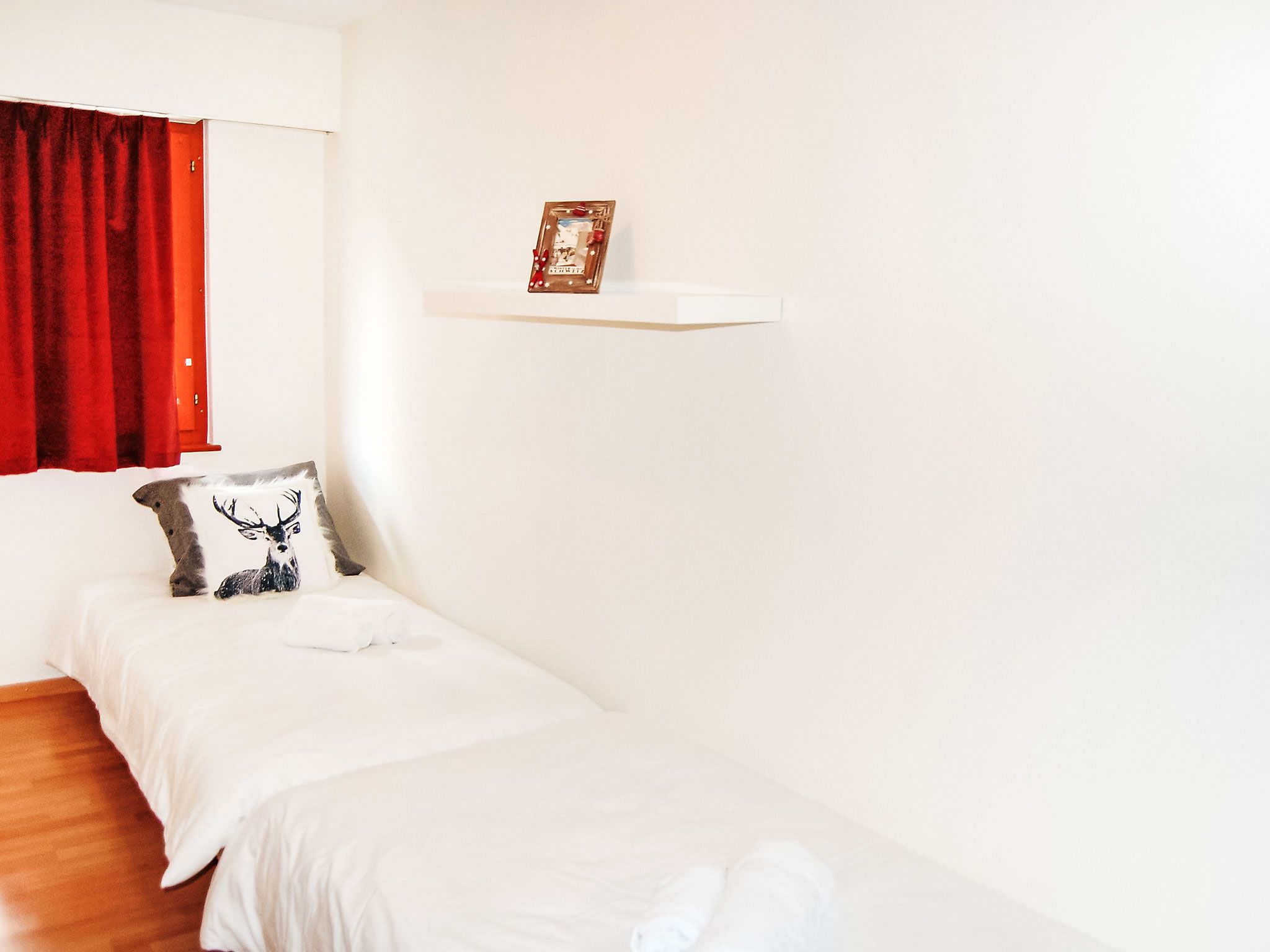 Christiania I A5, 3-Zimmer-Wohnung 66 m2 im 5. Stock. Teilweise renoviert im Jahre 2013: Wohn-/Esszimmer mit offenem Kamin (nur Deko), Kabel-TV. 1 Zimmer mit 2 Betten (90 cm, Länge 200 cm). Ausgang zum Balkon, Richtung Süden. 1 kleines Zimmer mit 2 Betten (80 cm, Länge 190 cm). Küche (Backofen, Geschirrspüler, 4 Glaskeramikplatten, Wasserkocher, elektrische Kaffeemaschine, Kapseln für die Kaffeemaschine (Nespresso) extra, Racletteofen, Fondue Set (Käse)). Bad/WC, sep. WC. Balkon, Südlage. Balkonmöbel. Sicht auf die Skipiste und die Ortschaft. Zur Verfügung: Internet (Wireless LAN, gratis). Parkplatz Nr. 3D (überdacht), Höhe 190 cm, Breite 240 cm. Bitte beachten: Nichtraucher-Unterkunft.