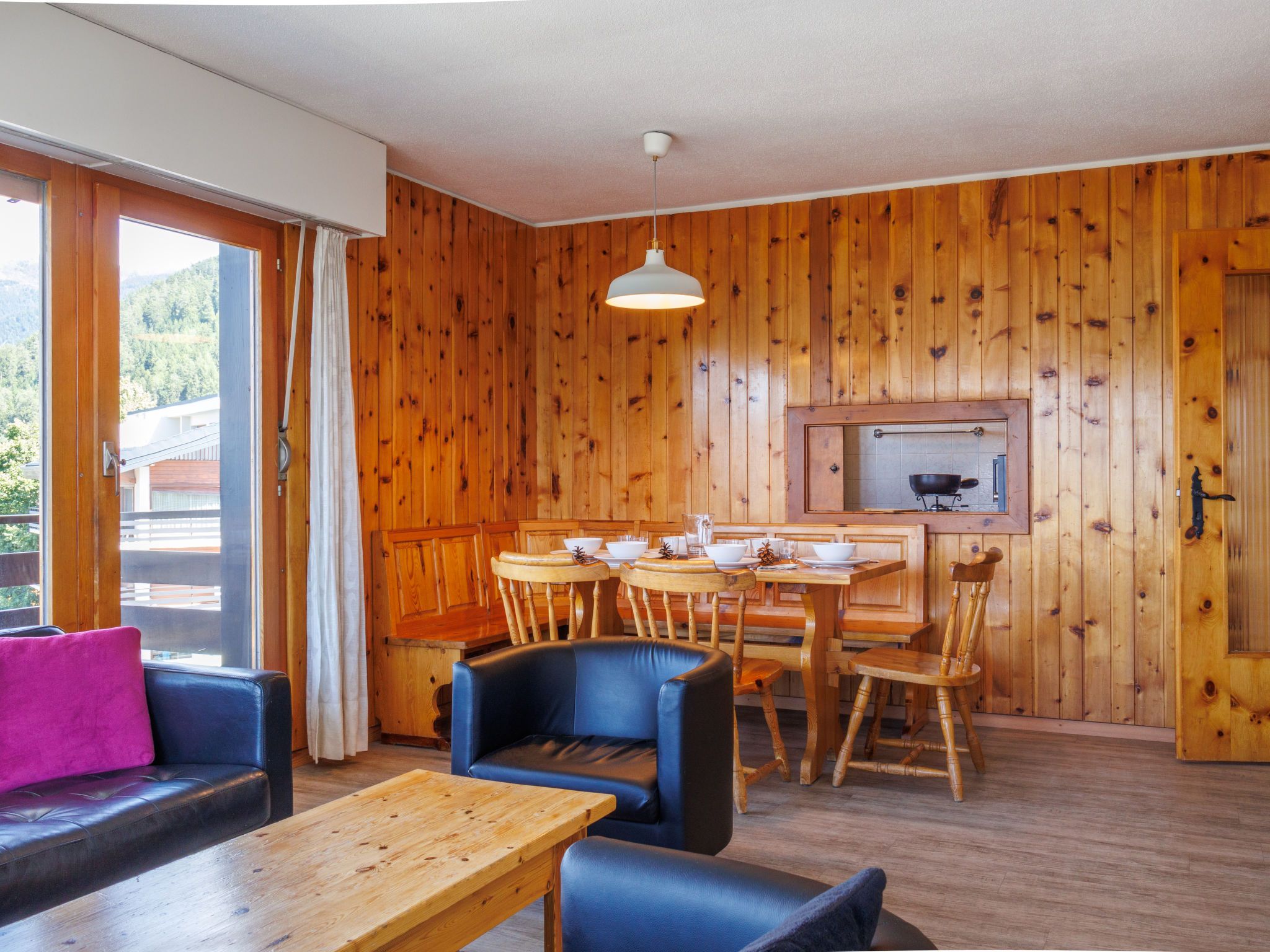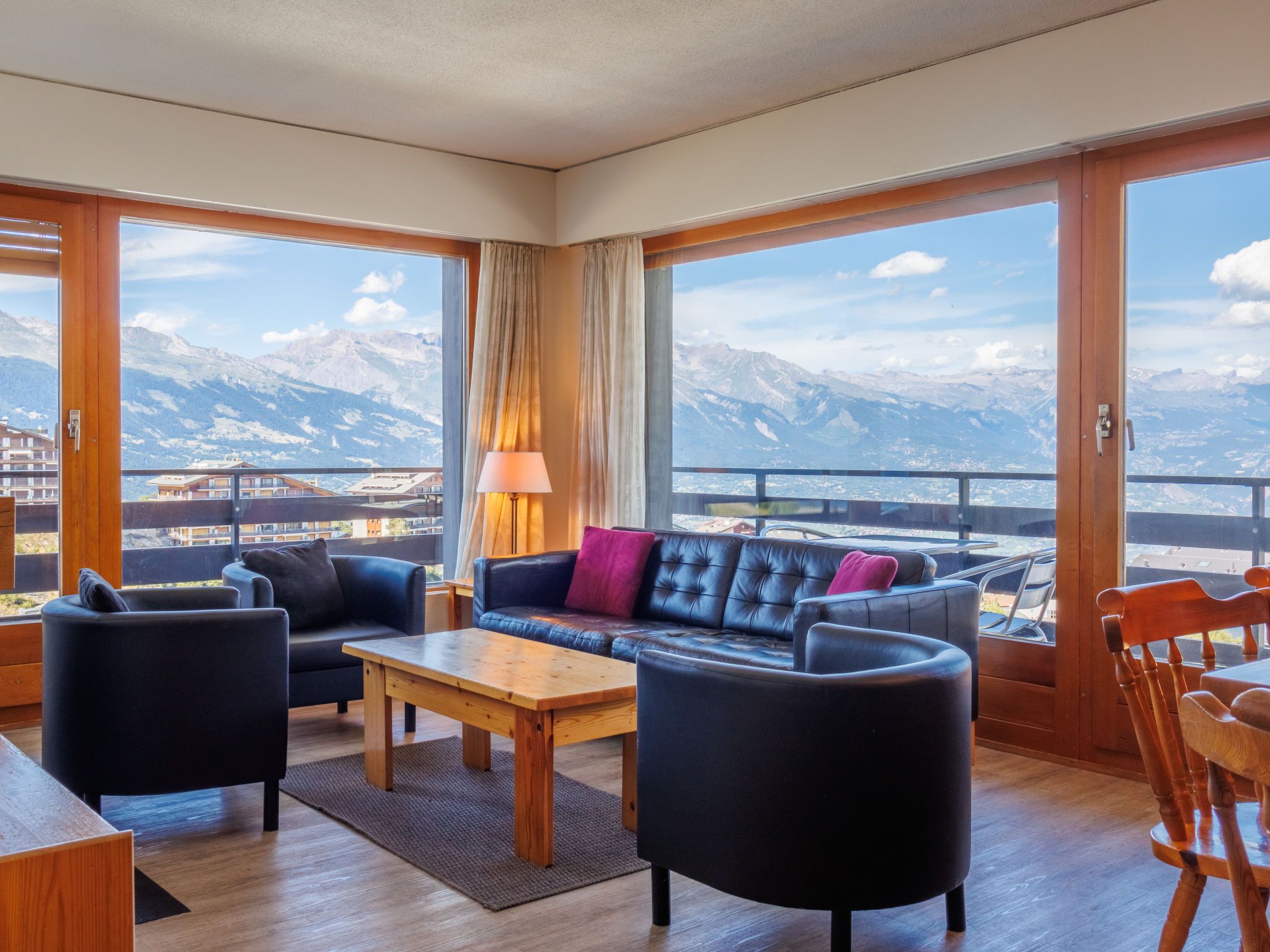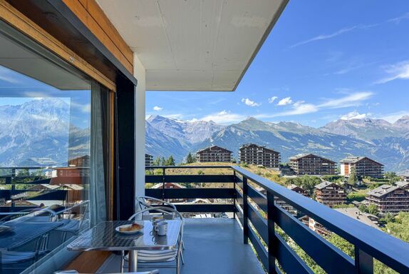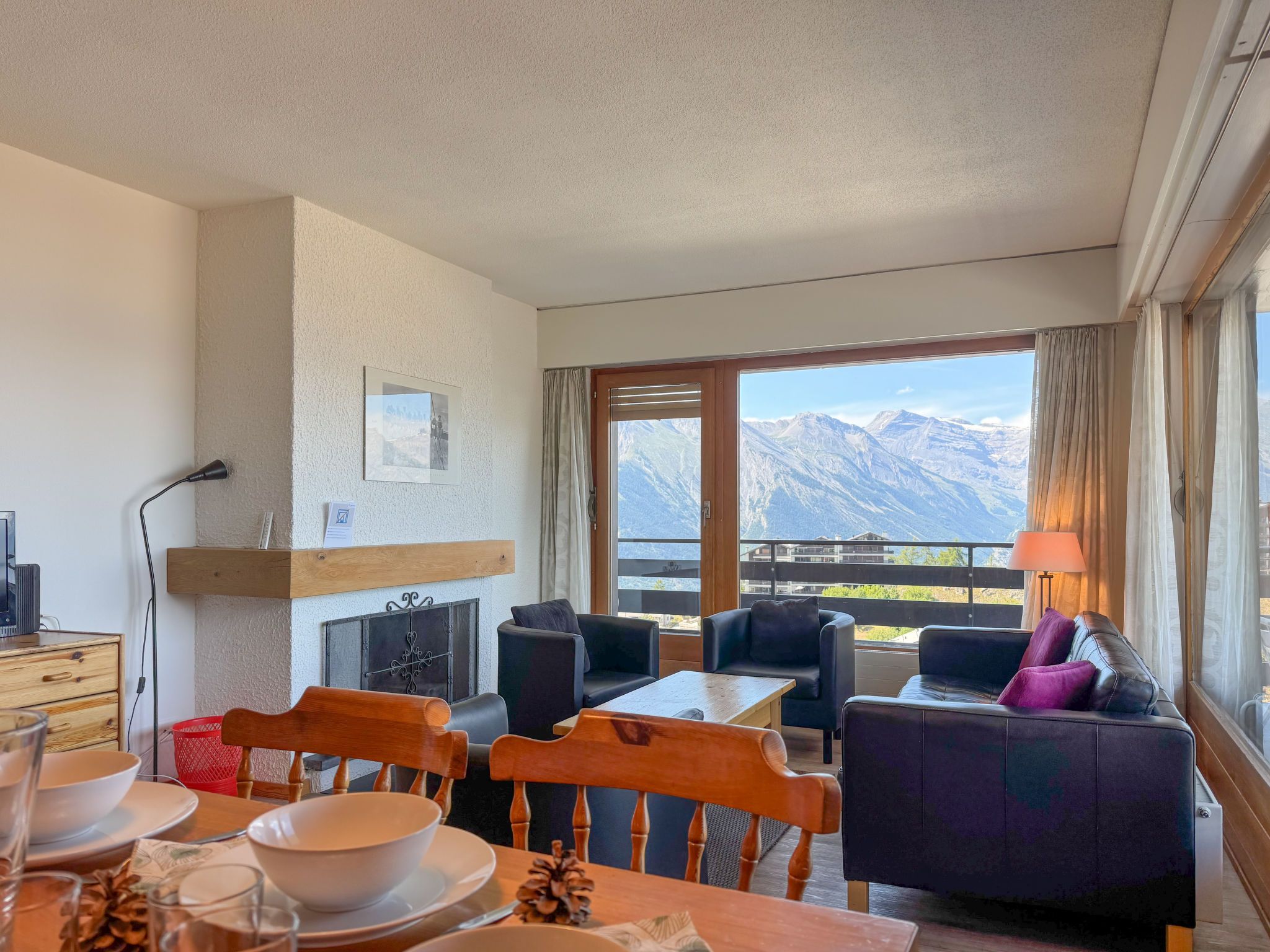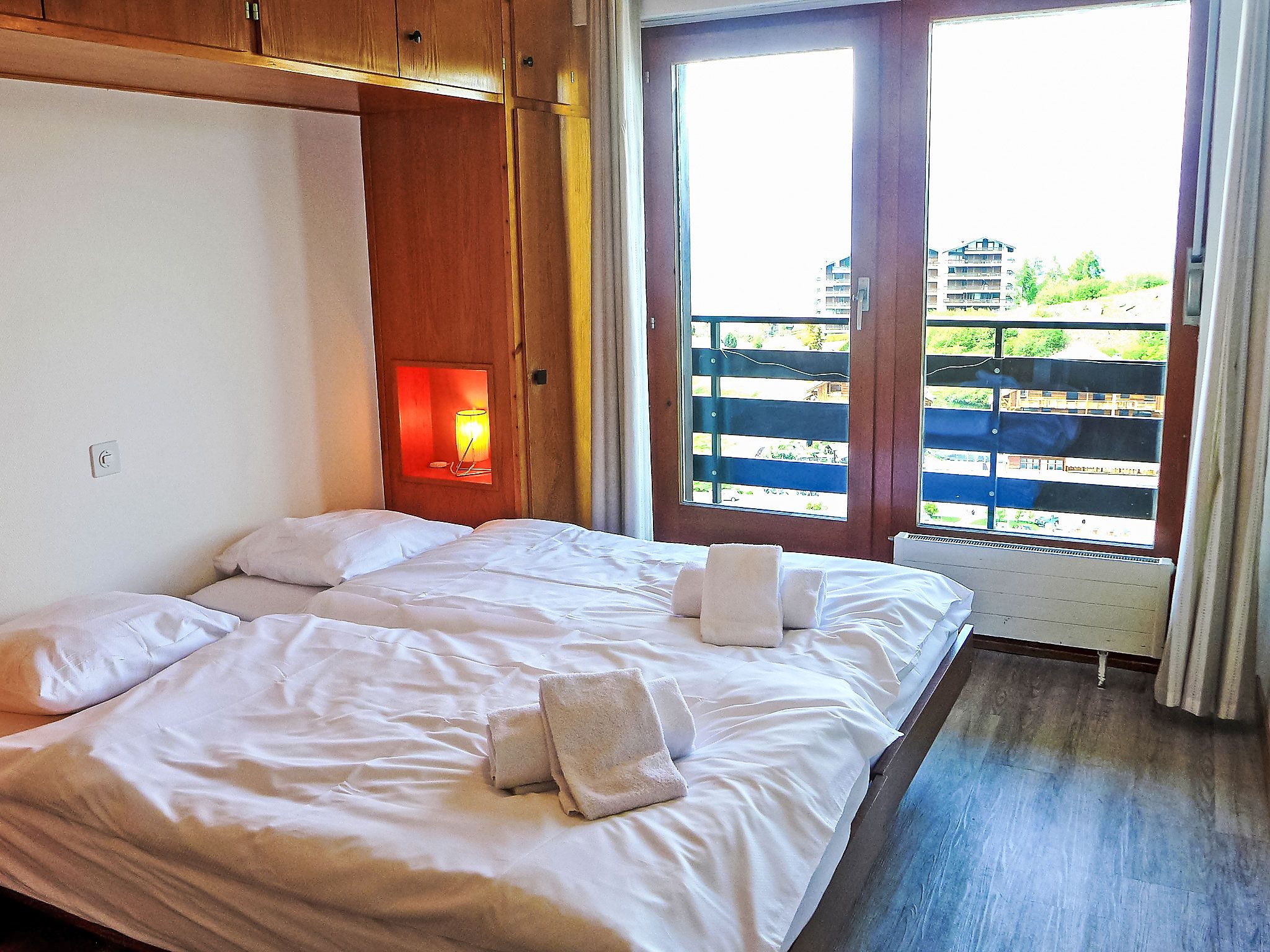 Christiania I F6, 3-Zimmer-Wohnung 70 m2 im 6. Stock. Eingang mit 1 x 2 Etagenbetten (90 cm, Länge 190 cm). Wohn-/Esszimmer mit offenem Kamin (nur Deko), Kabel-TV und Flachbildschirm. 1 Zimmer mit 2 Betten (90 cm, Länge 190 cm). Ausgang zum Balkon, Richtung Norden. 1 kleines Zimmer mit 2 Betten (90 cm, Länge 190 cm). Küche (3 Kochplatten, Backofen, Toaster, Wasserkocher, Mikrowelle, elektrische Kaffeemaschine, Racletteofen, Fondue Set (Käse)). Bad/WC, sep. WC. Balkon, Nordlage Balkon, Ostlage. Schöne Sicht auf die Berge und die Ortschaft. Zur Verfügung: Internet (Wireless LAN, gratis). Parkplatz Nr. 6A (überdacht), Höhe 190 cm, Breite 210 cm. Bitte beachten: Kühlschrank ohne Gefrierfach, Nichtraucher-Unterkunft. Maximal 1 Haustier/Hund erlaubt. Anstelle eines abgeschlossenen Schlafzimmers befinden sich manche Schlafplätze in einem offenen Bereich (Galerie, Nische etc.).