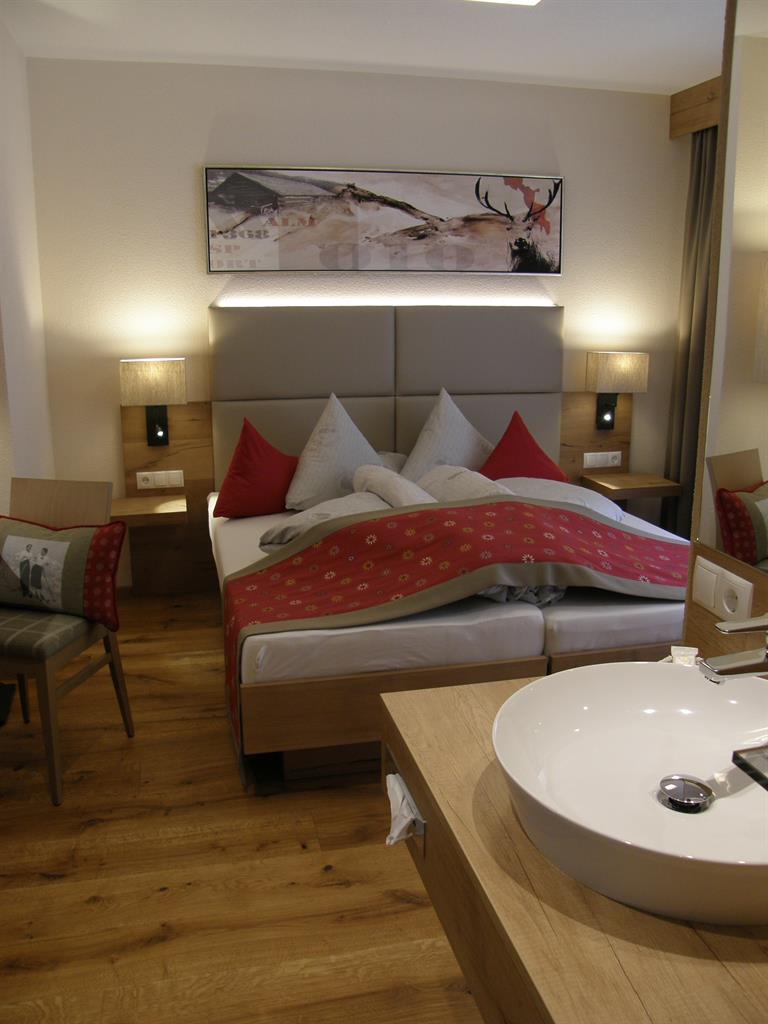 Gemütliches Doppelzimmer (ca. 20 m²) mit warmen Naturtönen und Holzböden bestehet aus: Doppelbett oder auf Wunsch auch getrennte Betten möglich; Dusche und WC, Haarfön; Tresor; Kabel-Flat-TV; tägliche Benützung der Sauna; eigener Balkon mit herrlichem Blick auf die Ötztaler Bergwelt. Auf Anfrage sind auch Zimmer mit Verbindungstür möglich.