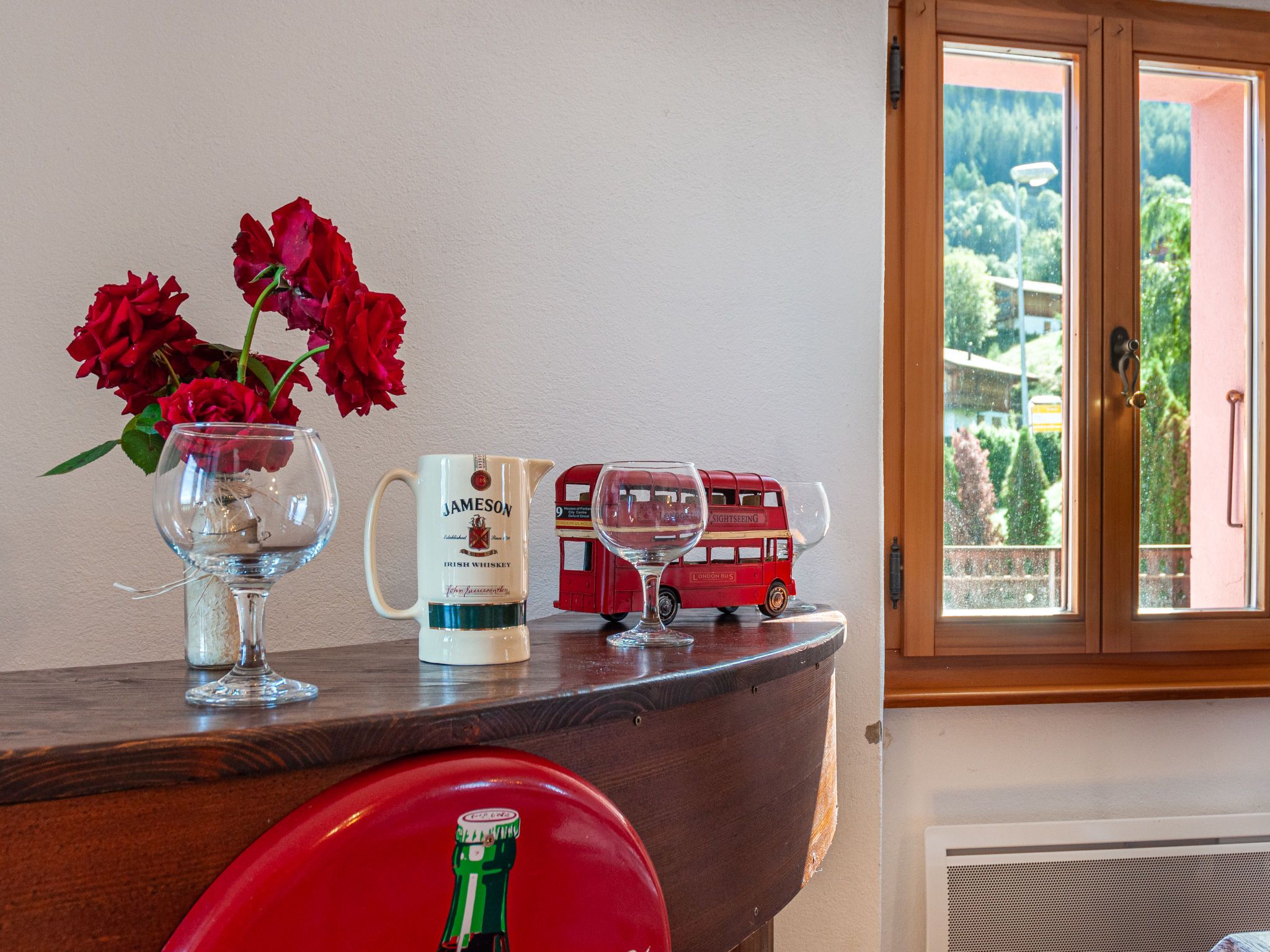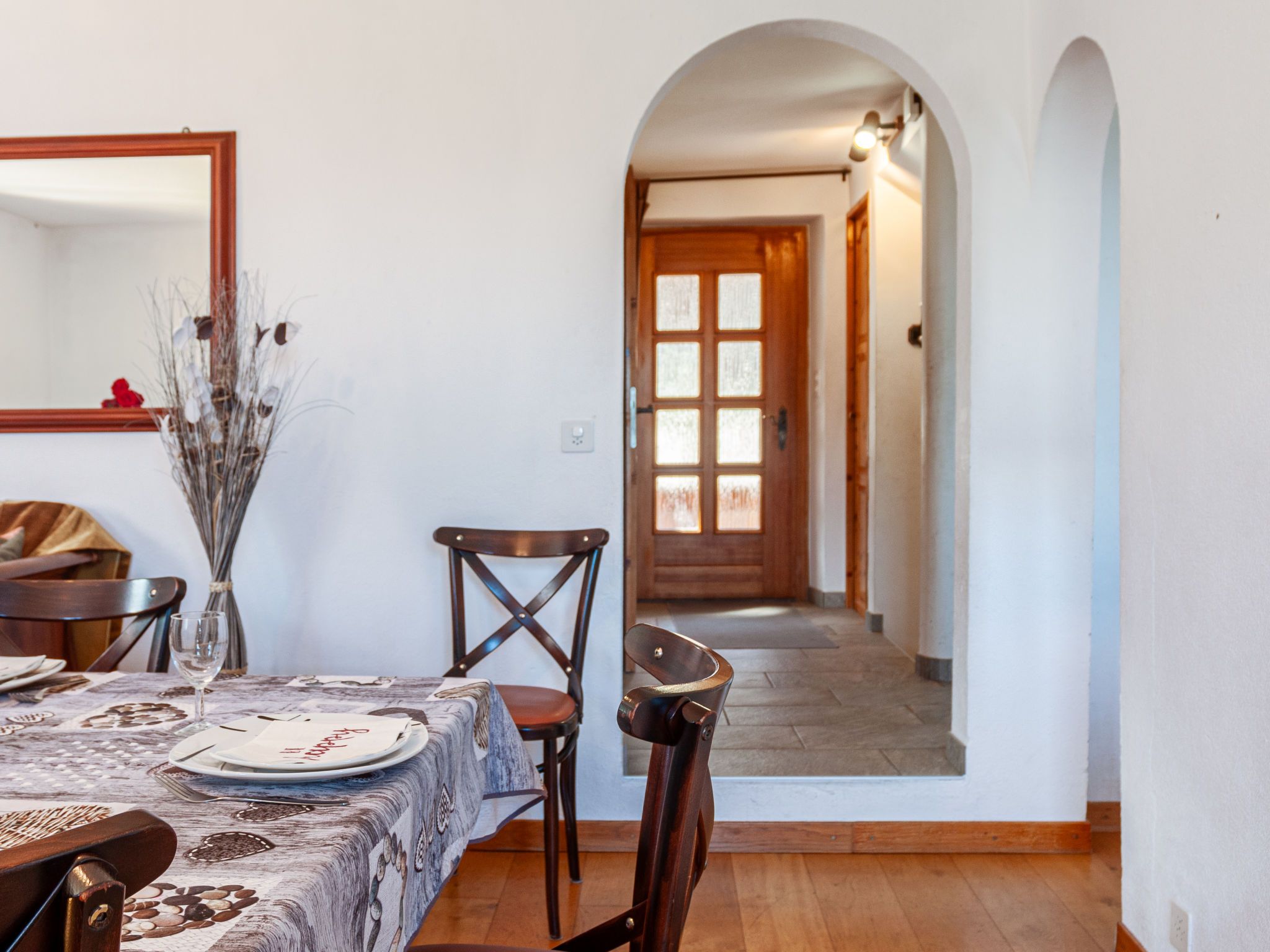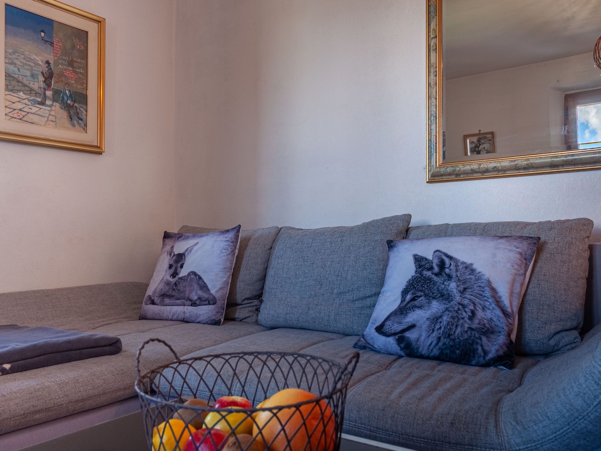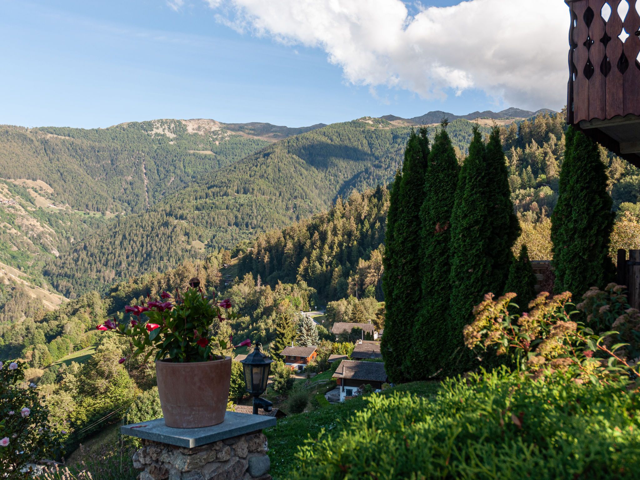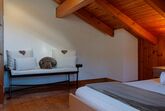 Le Dahu, 6-Zimmer-Haus 200 m2 auf 3 Stockwerken. Komfortabel und schön eingerichtet: Wohnzimmer mit offenem Kamin, Kabel-TV und Flachbildschirm. Esszimmer mit Bar. Ausgang zum Balkon, Richtung Osten. Küche (Backofen, Geschirrspüler, 4 Glaskeramikplatten, Toaster, Wasserkocher, Mikrowelle, elektrische Kaffeemaschine, Kapseln für die Kaffeemaschine (Nespresso) extra, Racletteofen, Fondue Set (Käse)). Dusche, sep. WC. E-Heizung. Obergeschoss: 1 Doppelzimmer mit 1 Doppelbett (2 x 90 cm, Länge 200 cm). Ausgang zum Balkon, Richtung Osten. 1 Doppelzimmer mit 1 franz. Bett (160 cm, Länge 200 cm). Bad/WC. Dachgeschoss: 3 abgeschrägte Zimmer, jedes Zimmer mit 2 Betten (90 cm, Länge 200 cm). Offenes kleines Spielzimmer mit TV und DVD. Dusche/WC. Garten. Terrassenmöbel, Gartengrill, Liegestühle. Herrliche Panoramasicht auf die Berge und das Tal. Zur Verfügung: Waschmaschine, Kinderhochstuhl, Babybett, Haartrockner. Internet (WLAN, gratis). Parkplatz (2 Autos) beim Haus. Bitte beachten: Nichtraucher-Haus. Maximal 1 Haustier/Hund erlaubt.