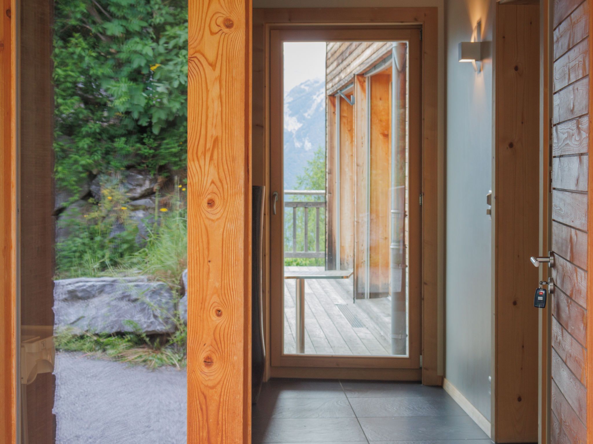 Woovim 8, 5-Zimmer-Chalet 225 m2 auf 3 Stockwerken. Luxuriös und mit viel Holz eingerichtet: grosses Wohn-/Esszimmer mit Schiebetür, Panoramafenster Richtung Norden mit Schwedenofen und Kabel-TV. Ausgang zur Terrasse. 1 grosses Zimmer mit 1 Doppelbett (180 cm, Länge 200 cm). Offene Küche (Backofen, Geschirrspüler, Toaster, Wasserkocher, Mikrowelle, elektrische Kaffeemaschine, Kapseln für die Kaffeemaschine (nespresso) extra, Racletteofen, Fondue Set (Käse)) mit Bar. Dusche/WC. Heizung. Unteres Geschoss: 1 grosses Zimmer mit 1 franz. Bett (160 cm, Länge 200 cm). Dusche, sep. WC, Sauna. Obergeschoss: 1 Zimmer mit 1 franz. Bett (160 cm, Länge 200 cm), Dusche und Doppelwaschbecken. 1 Zimmer mit 1 x 2 Etagenbetten (90 cm, Länge 190 cm), Dusche und Doppelwaschbecken. Sep. WC. Grosse Terrasse 80 m2. Terrassenmöbel. Sehr schöne Panoramasicht auf die Berge und das Tal. Zur Verfügung: Kinderhochstuhl, Babybett, Haartrockner. Internet (WLAN, gratis). Parkplatz (2 Autos), Garage, Höhe 200 cm, Breite 220 cm. Bitte beachten: Nichtraucher-Unterkunft.