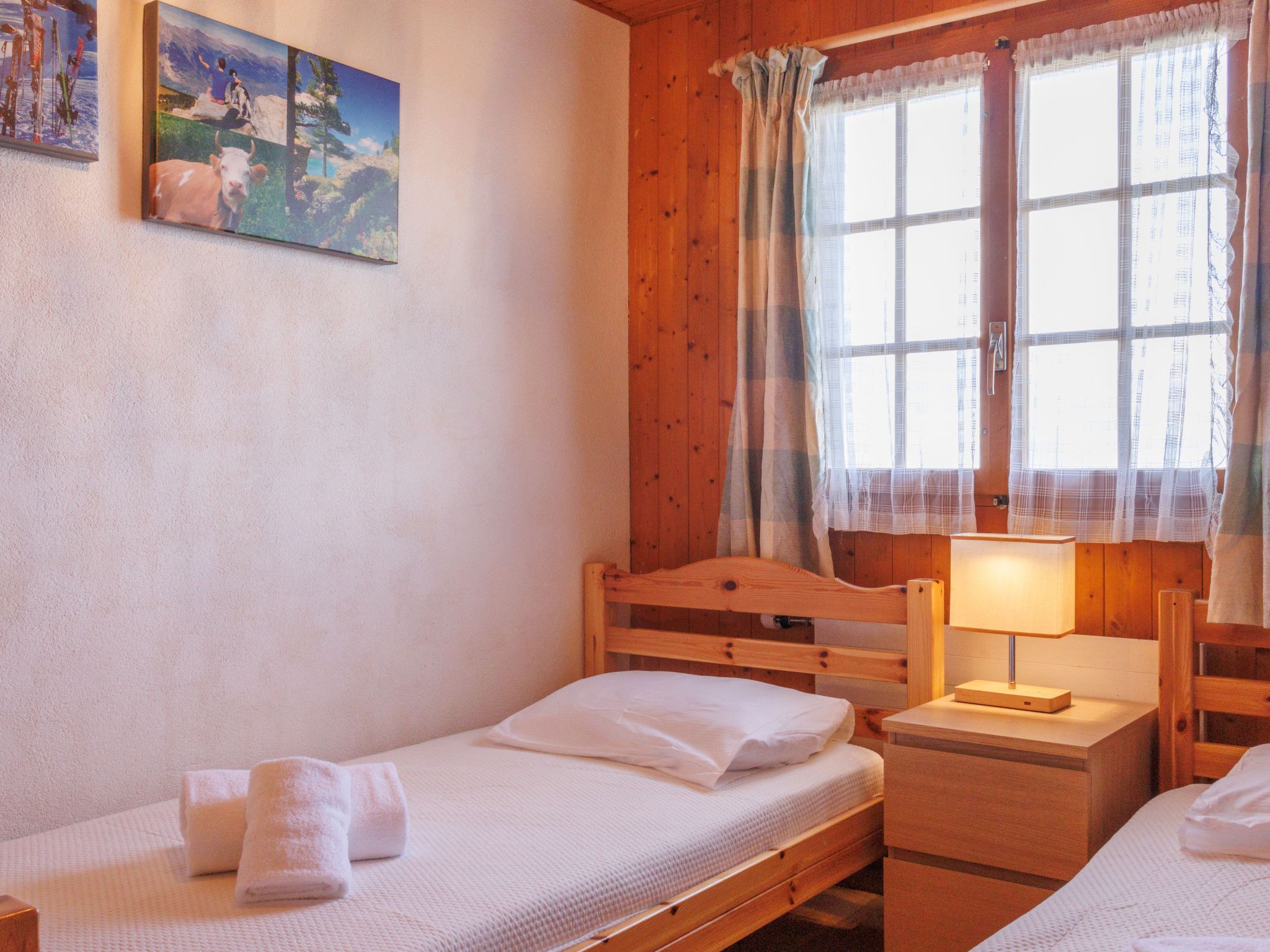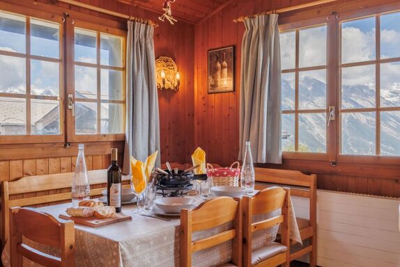 Chalet Chalets Tsamandon, auf 2 Stockwerken, einseitig angebaut. Am Ortsrand, 900 m vom Zentrum, ruhige Lage. Im Winter bitte Schneeketten mitbringen. Parkplatz. Einkaufsgeschäft 900 m, Restaurant 50 m, Bushaltestelle Haute-Nendaz, station/poste 1.3 km, Freibad 600 m. Golfplatz (18 Loch) 18 km, Tennis 600 m, Gondelbahn 1 km, Skibushaltestelle 50 m. Bitte beachten: Gratis Skibus.