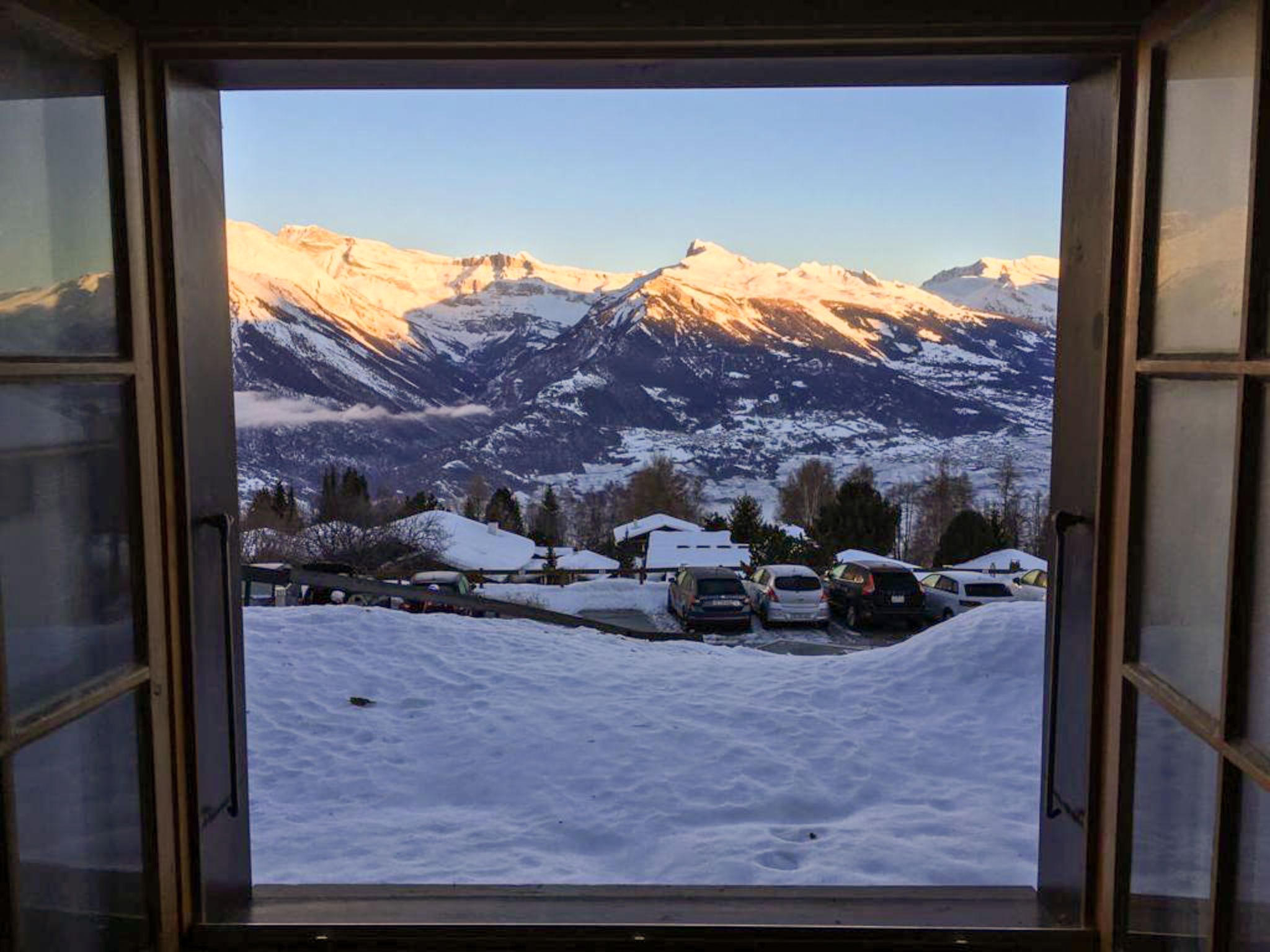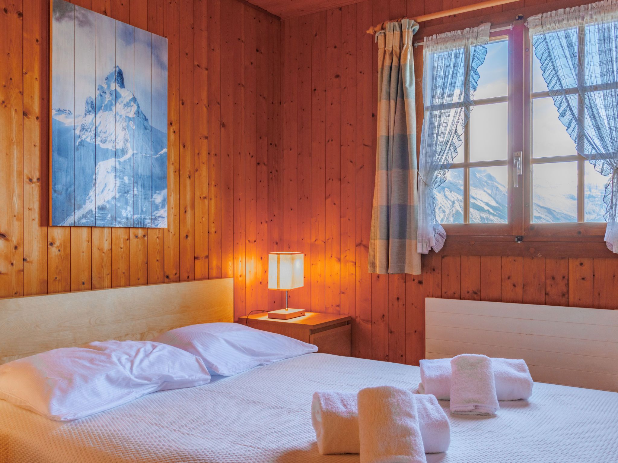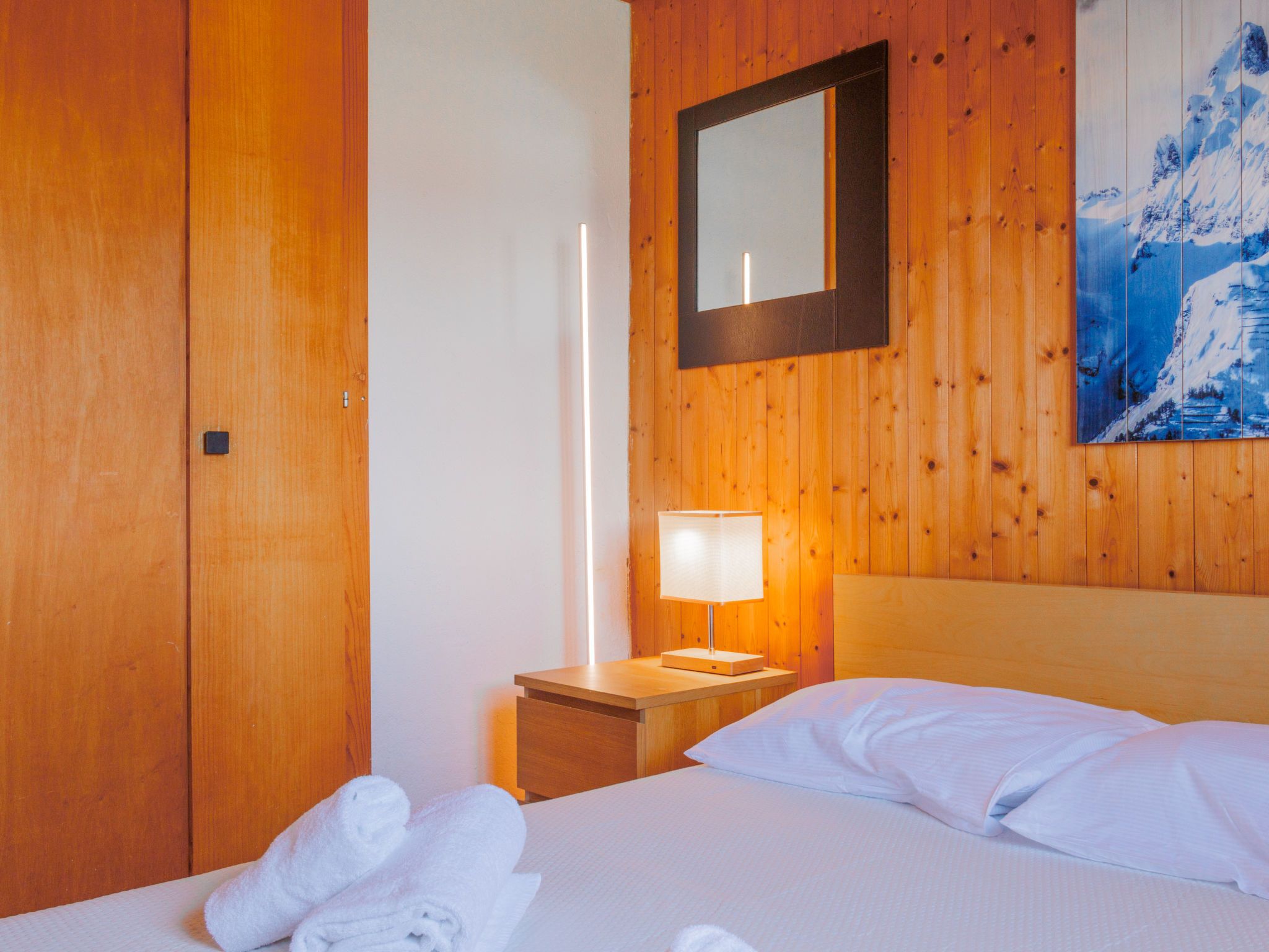 Tsamandon 22, 3-Zimmer-Doppelhaushälfte 50 m2 auf 2 Stockwerken. Zweckmässig eingerichtet: Wohn-/Esszimmer mit Kabel-TV. Ausgang zum Balkon, Richtung Norden. Offene Küche (Backofen, Geschirrspüler, 4 Induktionskochplatten, Toaster, Wasserkocher, Mikrowelle, elektrische Kaffeemaschine, Racletteofen, Fondue Set (Käse)). E-Heizung. Unteres Geschoss: 1 Zimmer mit 1 franz. Bett (140 cm, Länge 200 cm). 1 Zimmer mit 2 Betten (90 cm, Länge 190 cm). Dusche/WC. Liegestühle (2). Schöne Sicht auf die Berge. Zur Verfügung: Internet (WLAN, gratis). Parkplatz Nr. 22. Bitte beachten: Nichtraucher-Haus. Maximal 1 Haustier/Hund erlaubt.