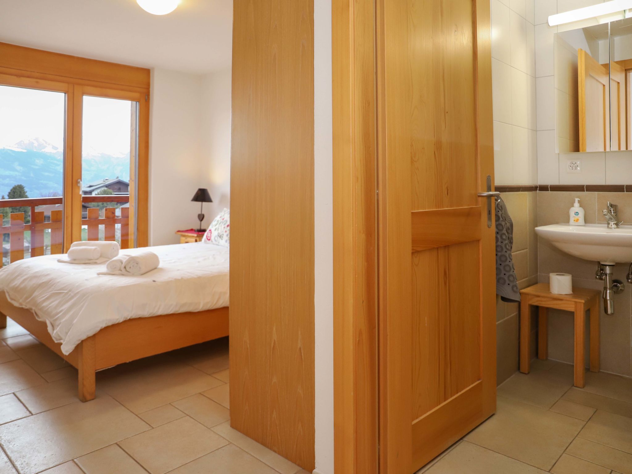 Domaine des Reines C10, 5-Zimmer-Wohnung 110 m2 im 5. Stock. Geräumig und hell, komfortabel und geschmackvoll eingerichtet: grosses Wohn-/Esszimmer mit Panoramafenster mit offenem Kamin, Kabel-TV und DVD. Ausgang zum Balkon. 1 Zimmer mit 1 franz. Bett (160 cm, Länge 200 cm), Dusche/WC. Ausgang zum Balkon, Richtung Norden. 2 Zimmer, jedes Zimmer mit 1 franz. Bett (160 cm, Länge 200 cm). Ausgang zum Balkon, Richtung Süden. 1 Zimmer mit 2 Betten (90 cm, Länge 190 cm). Ausgang zum Balkon, Richtung Westen. Offene Küche (Backofen, Geschirrspüler, 4 Glaskeramikplatten, Toaster, Wasserkocher, Mikrowelle, elektrische Kaffeemaschine, Kapseln für die Kaffeemaschine (Nespresso) extra, Racletteofen, Fondue Set (Käse)). Bad/WC. Grosser Balkon 53 m2, Nordlage und Ostlage Balkon, Südlage. Balkonmöbel. Sehr schöne Sicht auf die Berge und das Tal. Zur Verfügung: Haartrockner. Internet (Wireless LAN, gratis). Parkplatz (überdacht, 1 Auto), Höhe 210 cm, Breite 260 cm. Bitte beachten: Nichtraucher-Unterkunft.
