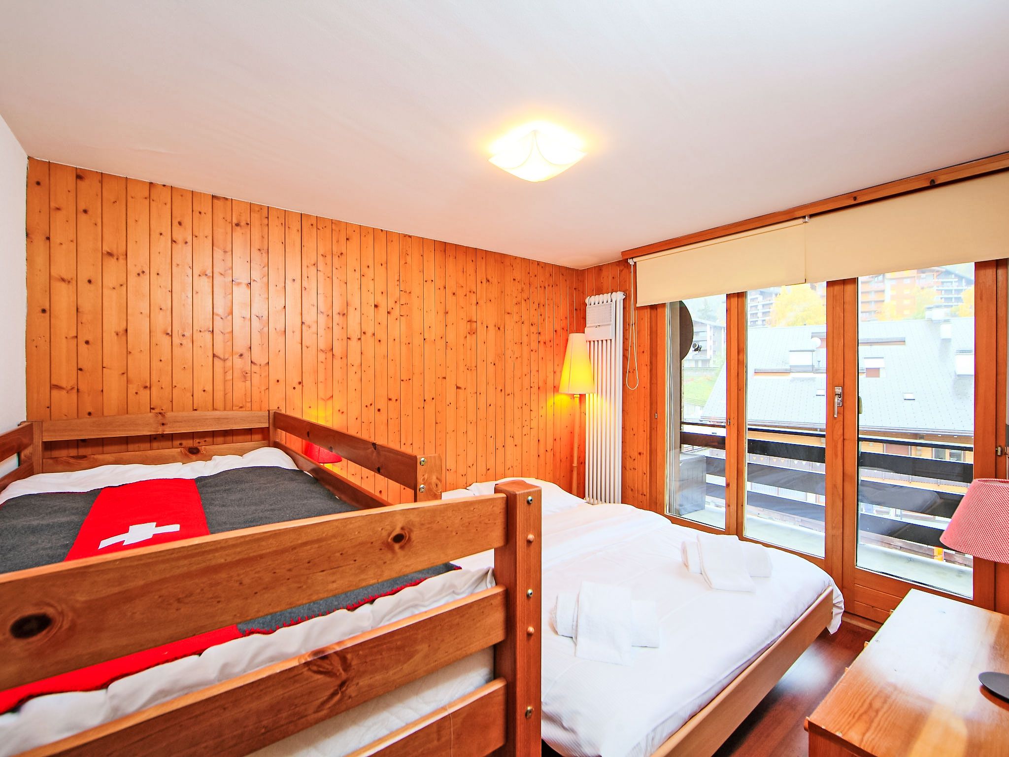 Beau-Séjour 24, 2-Zimmer-Wohnung 33 m2 im 4. Stock, Südlage. Objekt geeignet für 3 Erwachsene + 1 Kind. Zweckmässig eingerichtet: Wohn-/Esszimmer mit 1 Doppeldiwanbett (135 cm, Länge 190 cm), Kabel-TV und DVD. Ausgang zum Balkon, Richtung Süden. 1 Zimmer mit 1 Bett (80 cm, Länge 180 cm), 1 franz. Bett (160 cm, Länge 200 cm). Ausgang zum Balkon, Richtung Süden. Offene Küche (3 Kochplatten, Backofen, Toaster, Wasserkocher, Racletteofen, Fondue Set (Käse)). Bad/WC. Balkon 10 m2, Südlage. Sicht auf die Berge und die Ortschaft. Zur Verfügung: Haartrockner. Internet (WLAN, gratis). Bitte beachten: Nichtraucher-Unterkunft. Maximal 1 Haustier/Hund erlaubt.