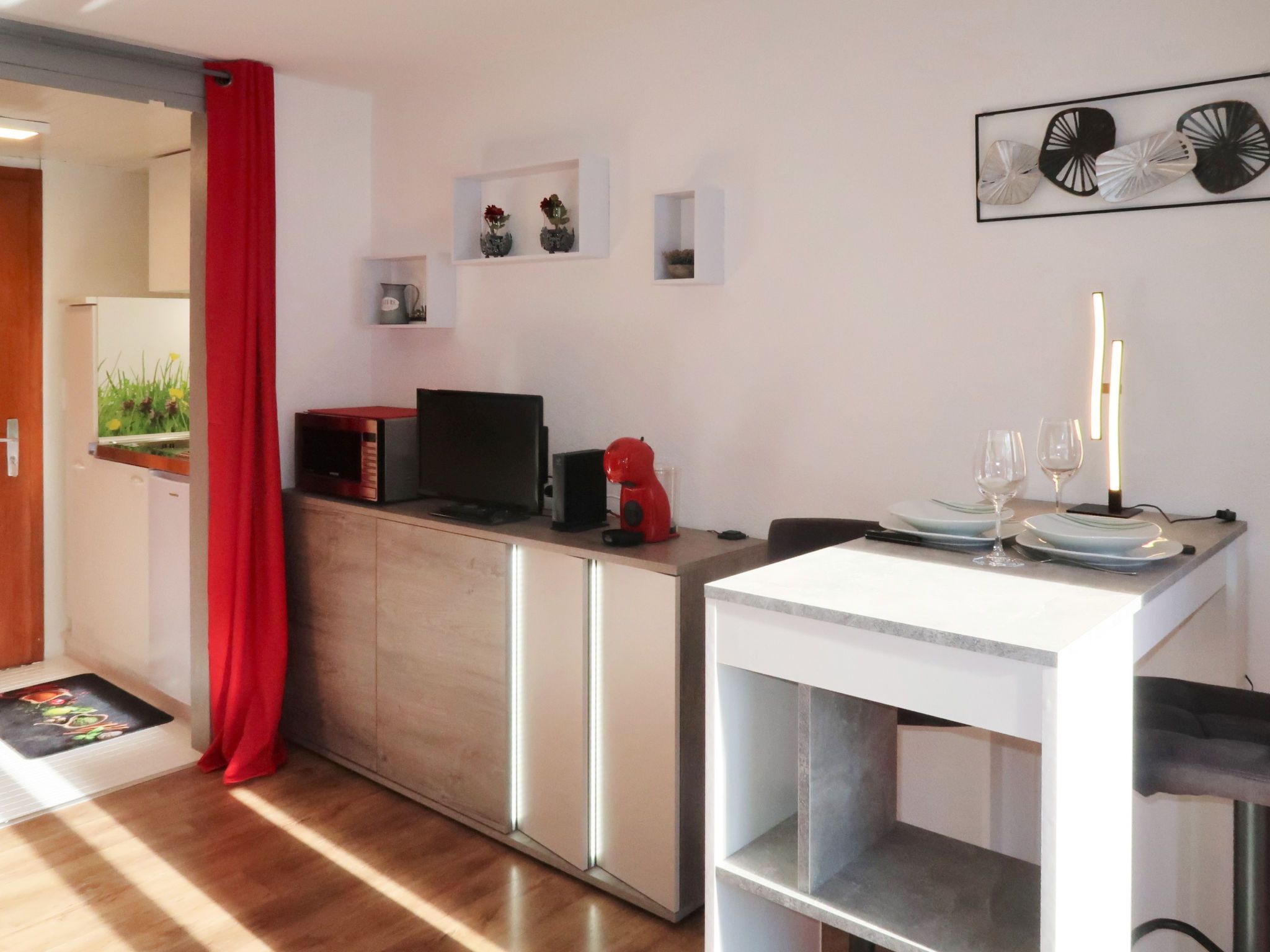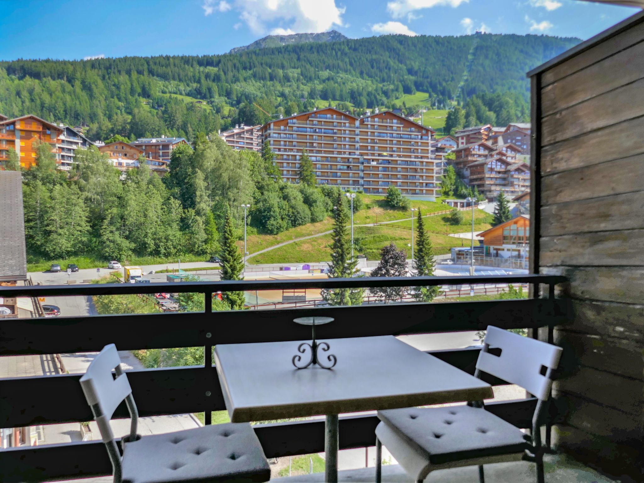 Beau Séjour 26, 1-Zimmer-Studio 20 m2 im 4. Stock, Südlage. Vollständig renoviert im Jahre 2021, komfortabel und schön eingerichtet: Wohn-/Schlafzimmer mit 1 Doppeldiwanbett (140 cm, Länge 200 cm), Kabel-TV. Offene Küche im Eingang (2 Glaskeramikplatten, Toaster, Wasserkocher, elektrische Kaffeemaschine, Kapseln für die Kaffeemaschine (Dolce Gusto) extra, Racletteofen, Kombinationsmikrowelle, Fondue Set (Käse)). Dusche/WC. Balkon, Südlage. Balkonmöbel. Sicht auf die Berge und die Ortschaft. Zur Verfügung: Internet (WLAN, gratis). Bitte beachten: Nichtraucher-Unterkunft. Maximal 1 Haustier/Hund erlaubt.