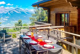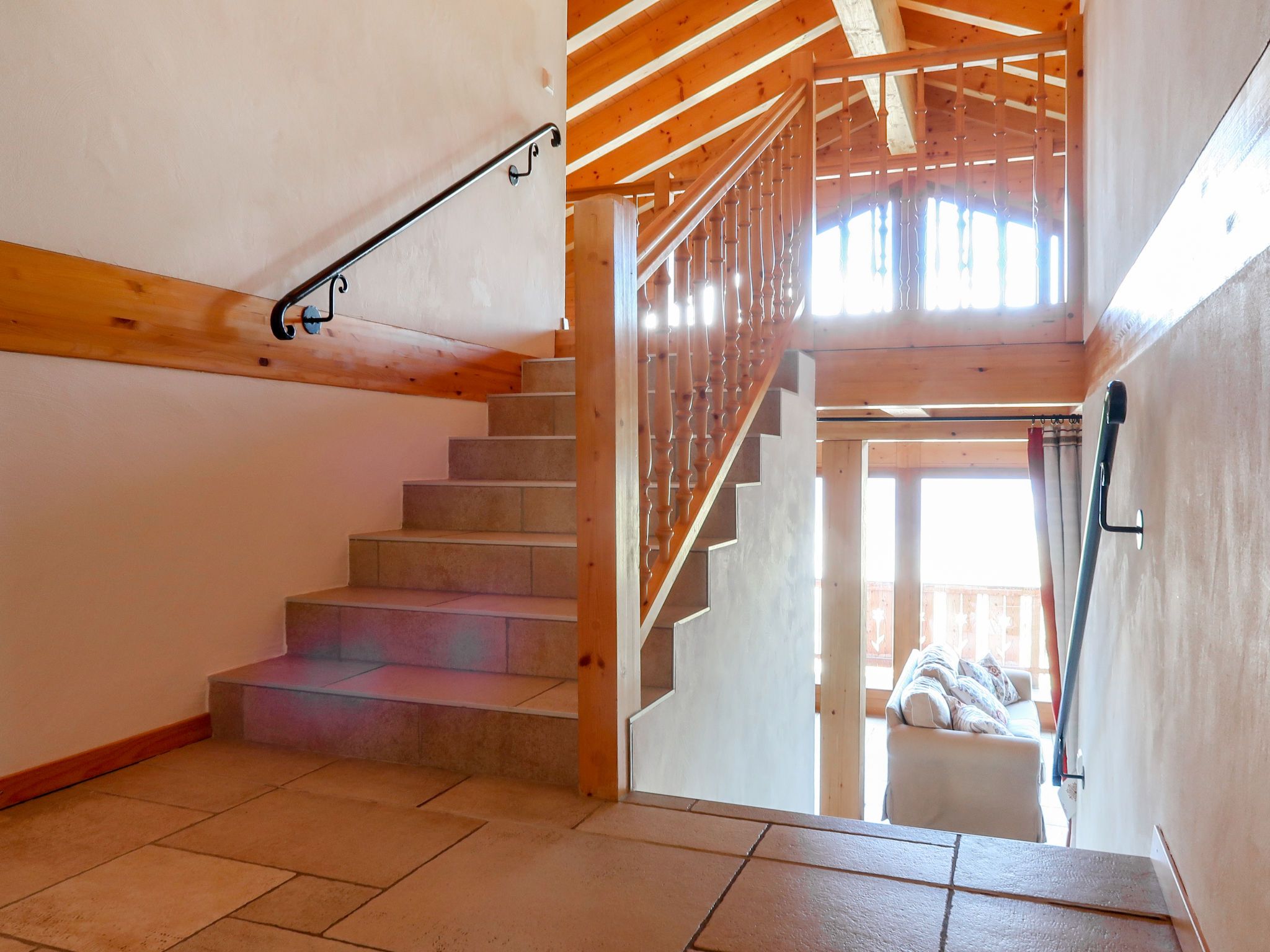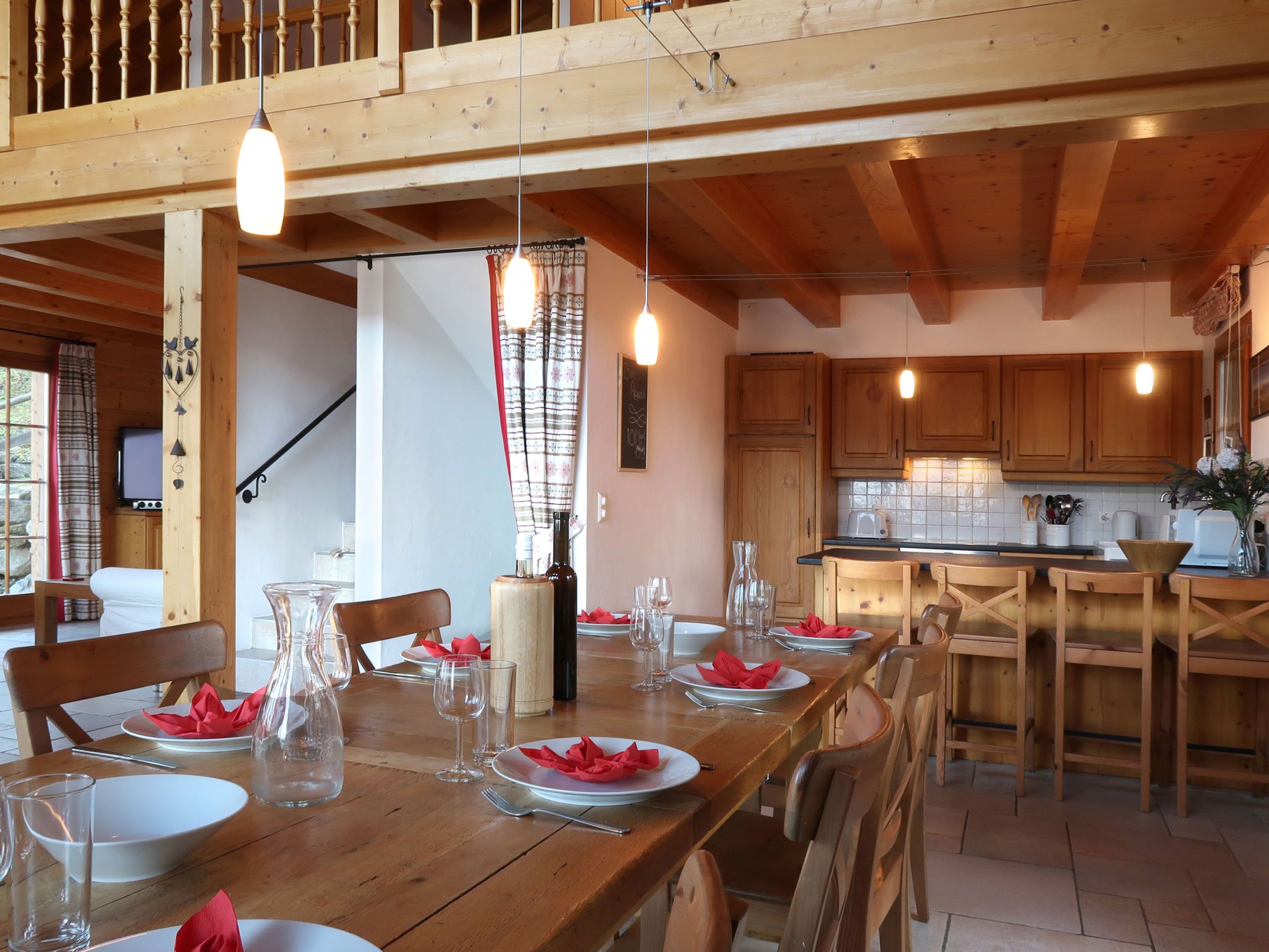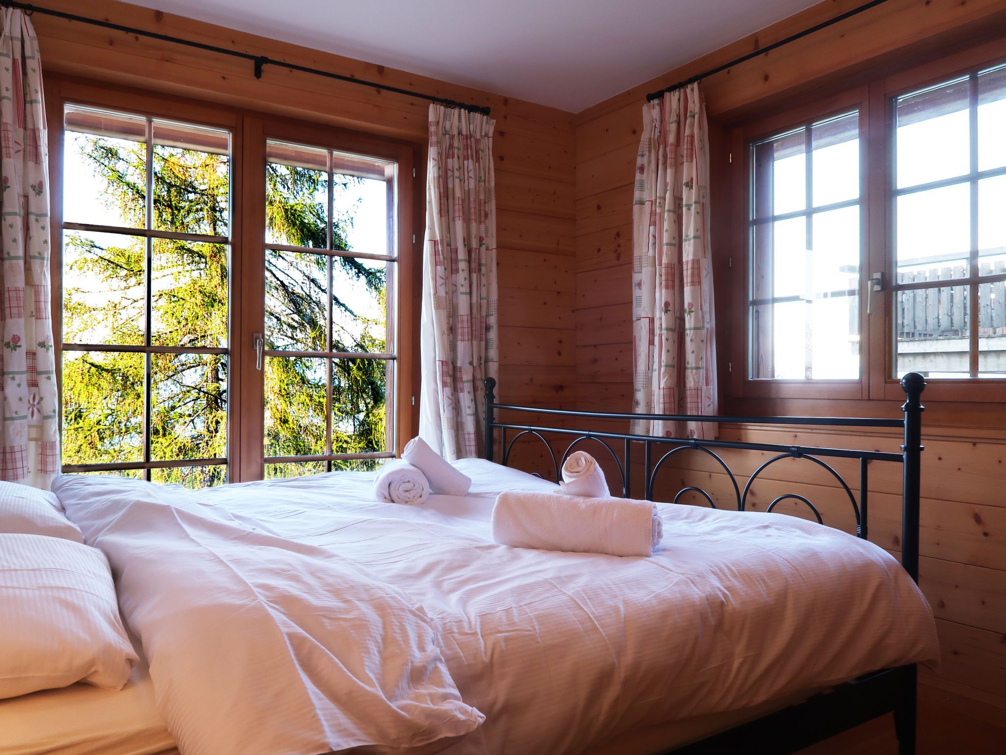Altamira, 5-Zimmer-Chalet 240 m2 auf 3 Stockwerken. Geräumig, komfortabel und schön eingerichtet: Wohn-/Esszimmer mit offenem Kamin und Kabel-TV. Ausgang zum Balkon, Richtung Norden und Richtung Osten. Offene Küche (Backofen, Geschirrspüler, 4 Glaskeramikplatten, Toaster, Wasserkocher, Mikrowelle, Tiefkühler, elektrische Kaffeemaschine, Kapseln für die Kaffeemaschine (nespresso) extra, Racletteofen, Fondue Set (Chinoise, Käse)). Ausgang zur Terrasse, Richtung Westen. Heizung. Unteres Geschoss: 2 Zimmer, jedes Zimmer mit 1 Doppelbett (2 x 90 cm, Länge 200 cm). 1 Zimmer mit 2 Betten (90 cm, Länge 200 cm). Dusche/WC. Obergeschoss: Eingang. Abgeschrägte, offene Galerie. 1 Zimmer mit 1 Doppelbett (2 x 90 cm, Länge 200 cm), Dusche/WC. Sep. WC. Balkon, Nordlage und Ostlage, grosse Terrasse, Westlage. Terrassenmöbel, Gartengrill. Sicht auf die Berge. Zur Verfügung: Waschmaschine, Wäschetrockner, Kinderhochstuhl, Babybett, Haartrockner. Internet (WLAN, gratis). Parkplatz (2 Autos). Bitte beachten: Nichtraucher-Haus.