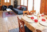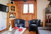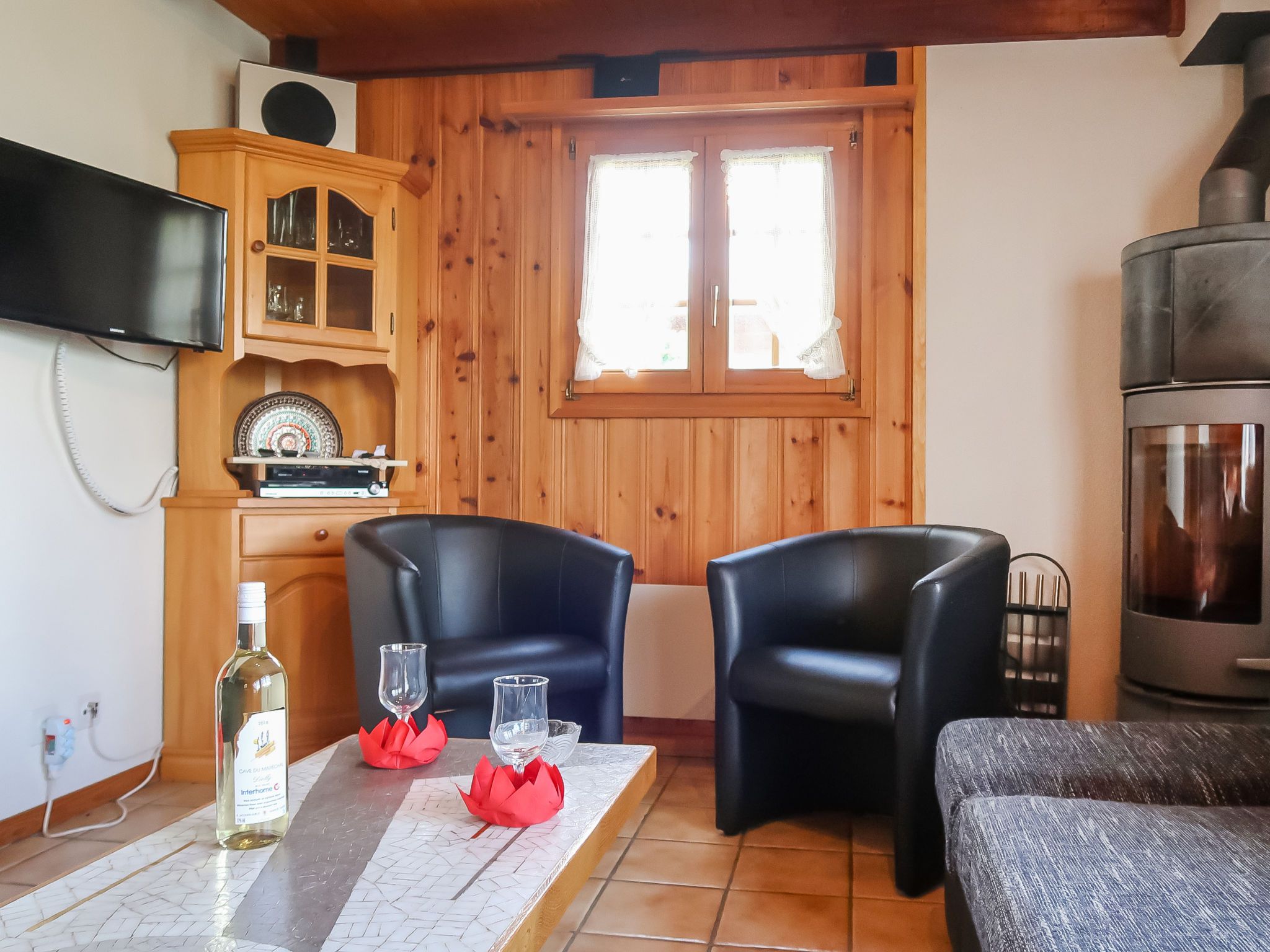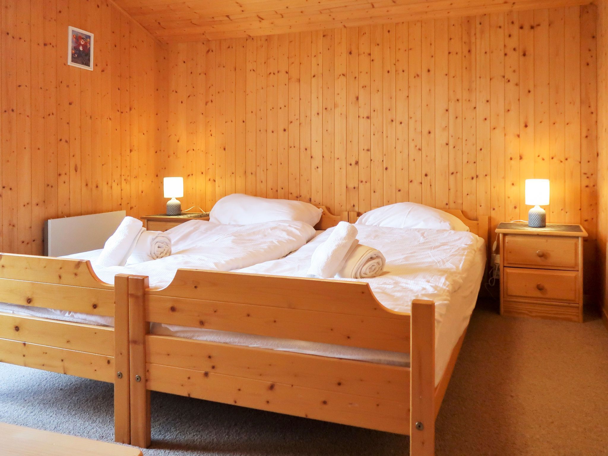 Joseva, 4-Zimmer-Chalet 85 m2 im 2. Stock. Zweckmässig und schön eingerichtet: Eingang. Wohn-/Esszimmer mit Schwedenofen und Sat-TV. Ausgang zur Terrasse, Richtung Norden. Offene Küche (Backofen, Geschirrspüler, 4 Glaskeramikplatten, Toaster, Wasserkocher, elektrische Kaffeemaschine, Kapseln für die Kaffeemaschine (Delizio) extra, Racletteofen, Fondue Set (Käse)). Dusche/WC. E-Heizung. Obergeschoss: 1 Zimmer mit 1 franz. Bett (160 cm, Länge 200 cm). Ausgang zum Balkon. 1 Zimmer mit 2 Betten (90 cm, Länge 200 cm). Ausgang zum Balkon. 1 kleines Kinderzimmer mit 1 x 2 Etagenbetten (90 cm, Länge 190 cm). Bad/WC. Balkon, Nordlage, Terrasse, Nordlage und Westlage. Terrassenmöbel, Liegestühle (2). Schöne Sicht auf die Berge. Zur Verfügung: Waschmaschine, Wäschetrockner, Haartrockner. Internet (WLAN, gratis). Parkplatz, Garage beim Haus, Höhe 240 cm, Breite 200 cm. Bitte beachten: Nichtraucher-Unterkunft. Maximal 1 Haustier/Hund erlaubt.