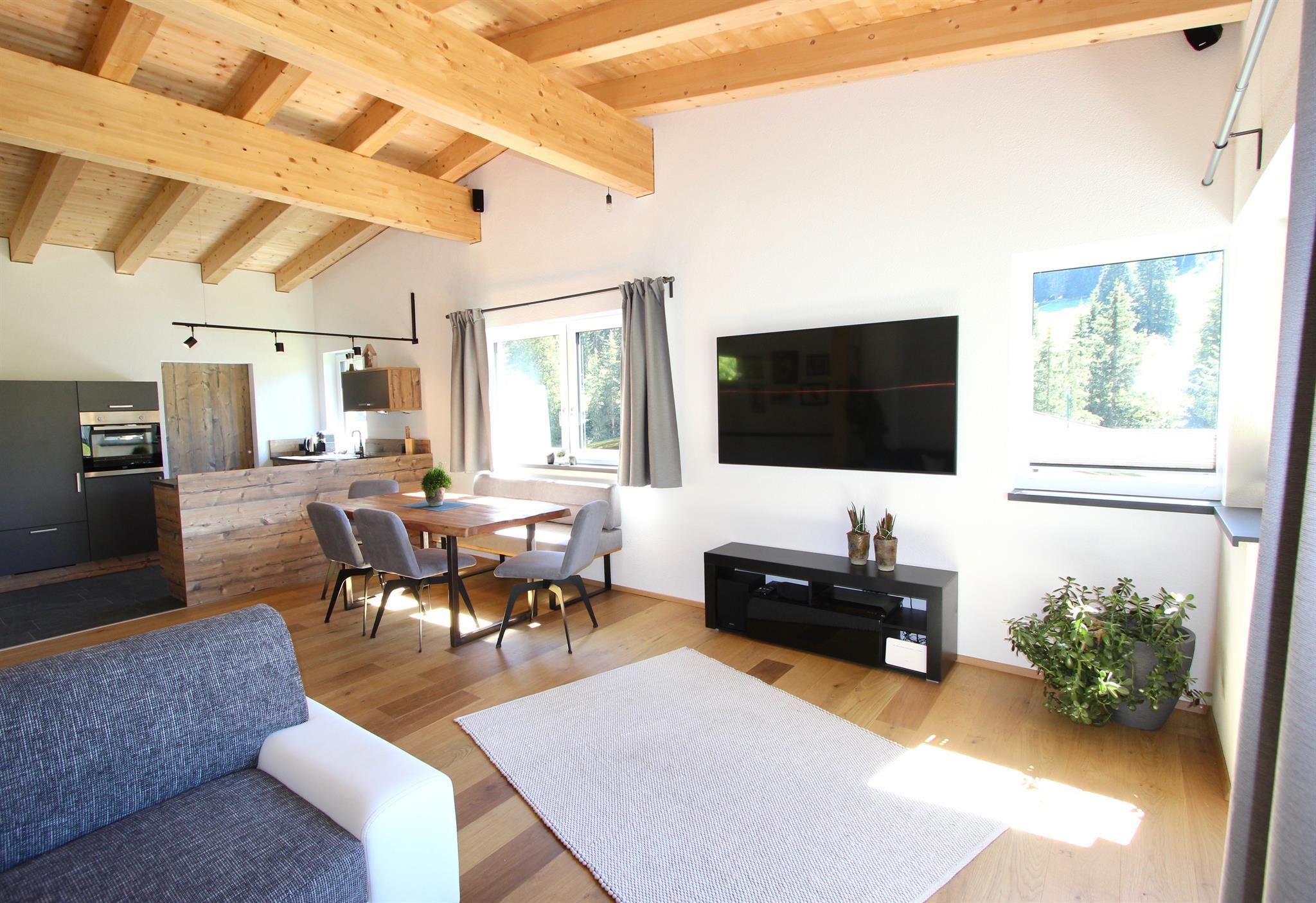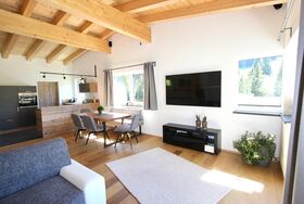 Das Chalet Maria mit ca. 110m² besteht aus: ebenerdigen Eingang; 1 Etage: Wohnküche mit komplett ausgestatteter Küche (zusätzlicher Speisekammer), Ess- und Wohnbereich mit ausziehbaren Schlafsofa (für 5.+6. Person) und Sat-TV; 1 separates WC; direkter Zugang zur möblierten Terrasse; untere Etage: 2 getrennte Doppelzimmer inkl. Flat-TV; 1 geräumiges Badezimmer mit Dusche und WC; Sauna;