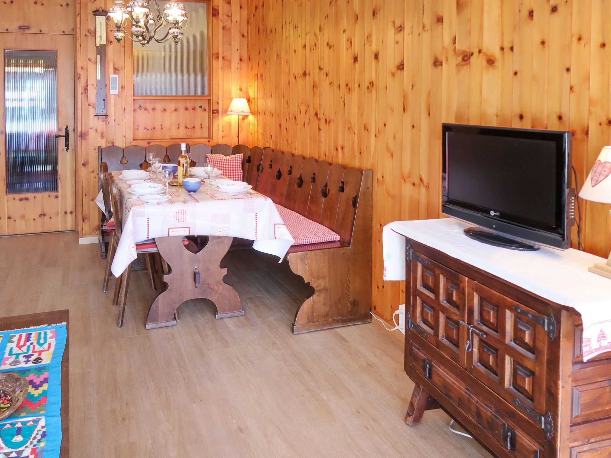 Bouleaux E 1, 3-Zimmer-Wohnung 57 m2 im 1. Stock. Objekt geeignet für 2 Erwachsene + 3 Kinder. Zweckmässig eingerichtet: Wohn-/Esszimmer mit Kabel-TV. Ausgang zum Balkon, Richtung Süden. 1 Zimmer mit 1 franz. Bett (140 cm, Länge 200 cm). Ausgang zum Balkon, Richtung Norden. 1 Kinderzimmer mit 1 Bett (90 cm, Länge 200 cm), 1 x 2 Etagenbetten (90 cm, Länge 190 cm). Ausgang zum Balkon, Richtung Norden. Küche (3 Kochplatten, Backofen, Toaster, Wasserkocher, Mikrowelle, Racletteofen, Fondue Set (Käse)). Bad, sep. WC. Balkon, Südlage Balkon, Nordlage. Balkonmöbel. Sicht auf die Berge und die Ortschaft. Zur Verfügung: Internet (WLAN, gratis). Parkplatz Nr. 7 Les Sorbiers. Bitte beachten: Nichtraucher-Unterkunft.