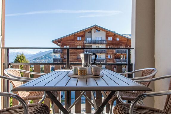 Genets 150 D, 3-Zimmer-Wohnung 68 m2 im 3. Stock. Wohn-/Esszimmer mit Kabel-TV und DVD. Ausgang zum Balkon, Richtung Osten. 1 Zimmer mit 1 franz. Bett (160 cm, Länge 200 cm). Ausgang zum Balkon, Richtung Westen. 1 Zimmer mit 1 franz. Bett (140 cm, Länge 190 cm). Ausgang zum Balkon, Richtung Westen. Offene Küche (Backofen, Geschirrspüler, 4 Glaskeramikplatten, Toaster, Wasserkocher, elektrische Kaffeemaschine, Kapseln für die Kaffeemaschine (Nespresso) extra, Racletteofen, Fondue Set (Chinoise, Käse)). Bad, sep. WC. Balkon 5 m2, Ostlage Balkon 9 m2, Westlage. Balkonmöbel. Sicht auf die Berge und die Ortschaft. Zur Verfügung: Waschmaschine, Wäschetrockner, Babybett, Haartrockner. Internet (WLAN, gratis). Parkplatz Nr. 150 (überdacht, 1 Auto), Höhe 210 cm, Breite 240 cm. Bitte beachten: Nichtraucher-Unterkunft. Maximal 1 Haustier/Hund erlaubt.
