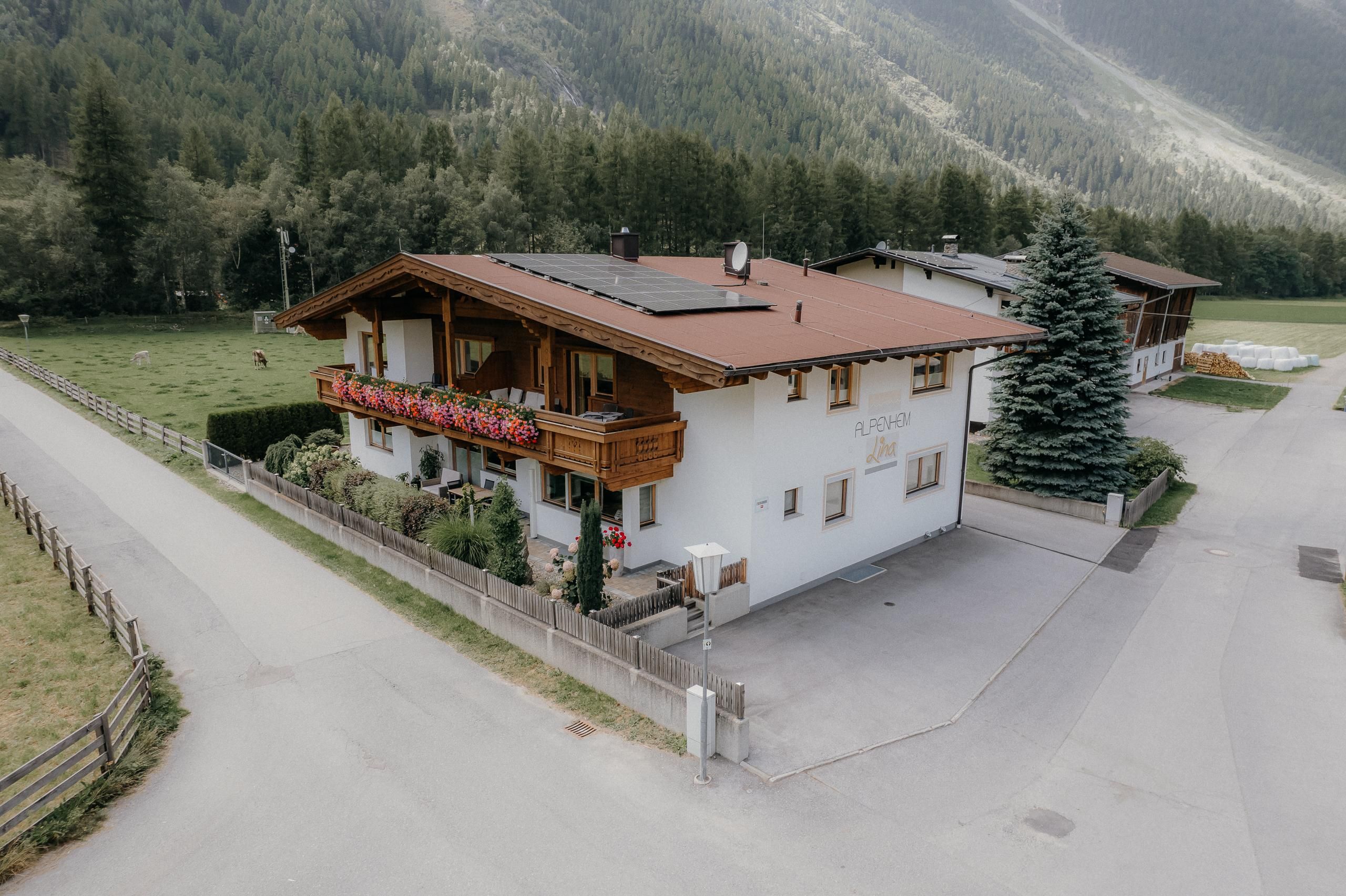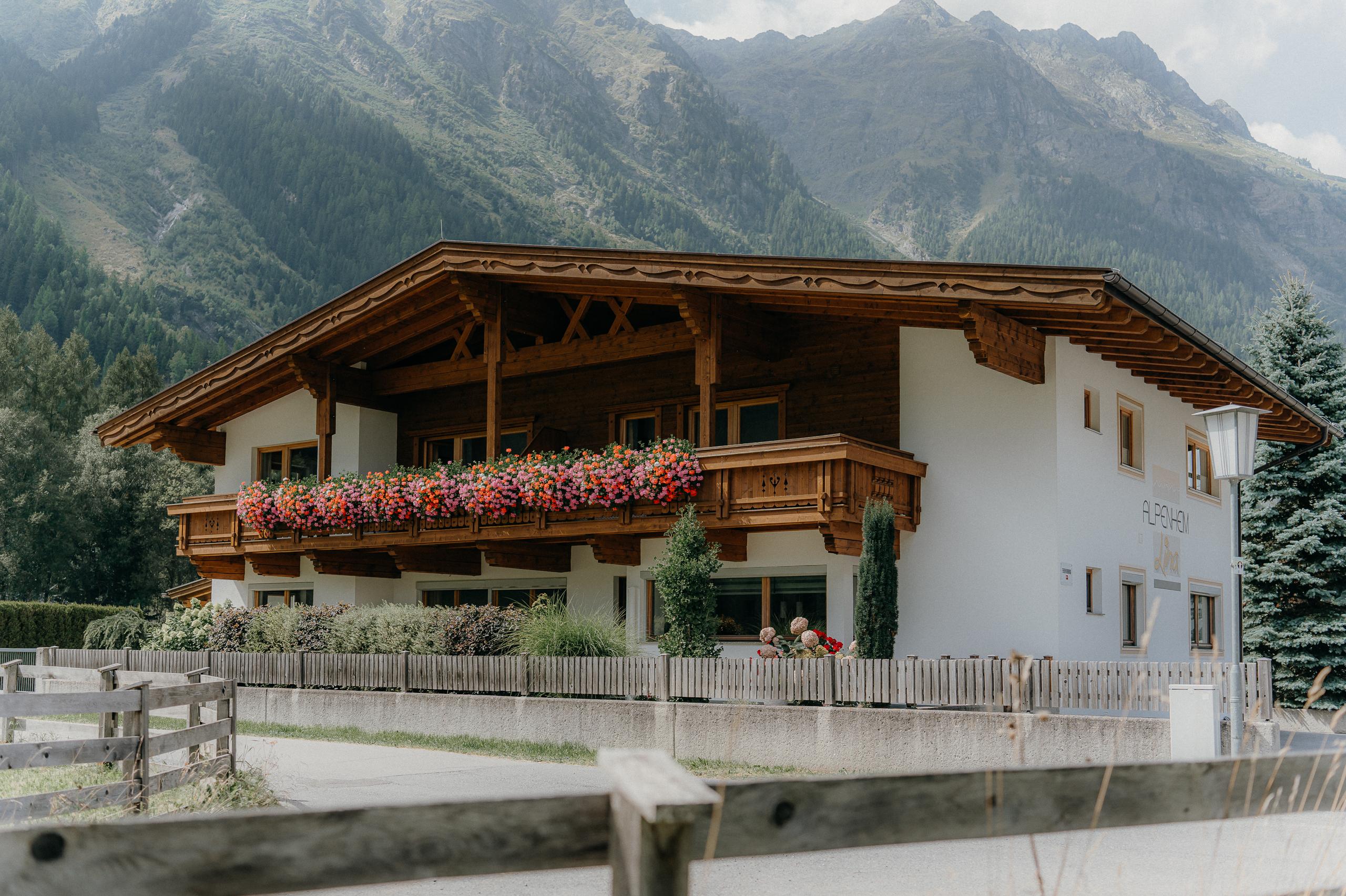 Herzlich Willkommen bei uns im Alpenheim Lina. Unser im Landhausstil errichtetes Haus liegt in ruhiger Lage in Huben, mit Blick auf die herrliche Tiroler Bergwelt. Idealer Ausgangspunkt für Bergwanderungen. Die Spazier- und Wanderwegen und Langlaufloipe führen direkt am Haus vorbei. Die Bushaltestelle für die Skigebiete Sölden und Obergurgl ist ca. 300 Meter entfernt.