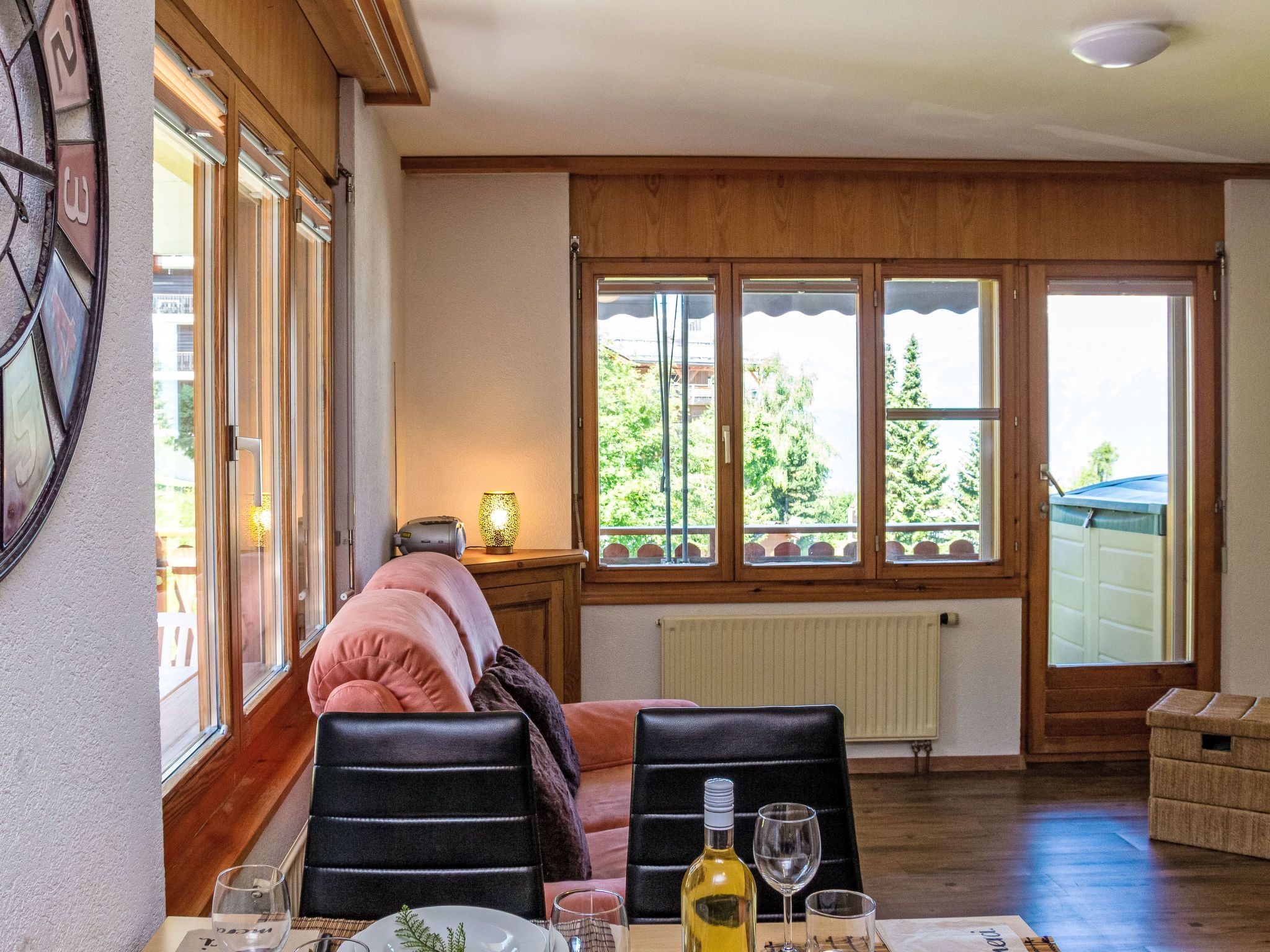 Ambassador II Apt 13, 1-Zimmer-Wohnung 34 m2 im 3. Stock. Komfortabel eingerichtet: Wohn-/Esszimmer mit 2 Wandschrankbetten (90 cm, Länge 190 cm), Kabel-TV (Flachbildschirm). Eingang mit 1 Wandklappbett (80 cm, Länge 190 cm). Kochnische (Backofen, Geschirrspüler, Wasserkocher, Mikrowelle, elektrische Kaffeemaschine, Kapseln für die Kaffeemaschine (Dolce Gusto) extra, Racletteofen, Fondue Set (Käse)). Dusche/WC. Balkon, Südlage Balkon, Westlage. Balkonmöbel. Eingeschränkte Sicht auf die Berge. Zur Verfügung: Haartrockner. Bitte beachten: Nichtraucher-Unterkunft. Anstelle eines abgeschlossenen Schlafzimmers befinden sich manche Schlafplätze in einem offenen Bereich (Galerie, Nische etc.).