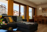 Olympic R4, 3-Zimmer-Wohnung 80 m2 im 4. Stock. Teilweise renoviert im Jahre 2021, komfortabel eingerichtet: grosses Wohn-/Esszimmer mit offenem Kamin, Kabel-TV und DVD. Ausgang zum Balkon, Richtung Westen. 1 Zimmer mit 1 franz. Bett (180 cm, Länge 200 cm). 1 Zimmer mit 1 franz. Bett (160 cm, Länge 200 cm). Ausgang zum Balkon. Offene Küche (Backofen, Geschirrspüler, 4 Glaskeramikplatten, Toaster, Wasserkocher, elektrische Kaffeemaschine, Kapseln für die Kaffeemaschine (nespresso) extra, Racletteofen, Fondue Set (Käse)). Bad/Bidet/WC, sep. WC. Grosser Balkon, Südlage und Westlage. Balkonmöbel, Liegestühle (2). Sicht auf die Berge und die Skipiste. Zur Verfügung: Babybett, Haartrockner. Internet (WLAN, gratis). Garage, Höhe 195 cm, Breite 205 cm. Bitte beachten: Nichtraucher-Unterkunft.