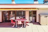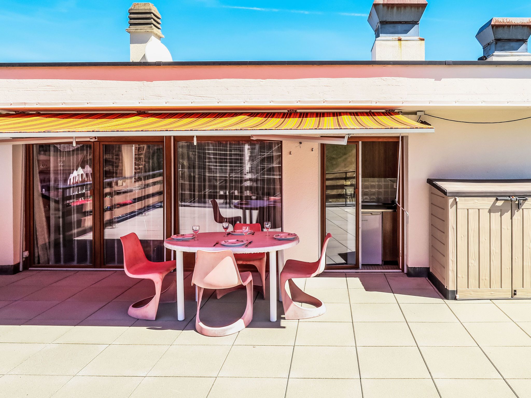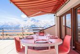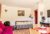 Olympic F8, 2-Zimmer-Wohnung 40 m2 im 8. Stock. Objekt geeignet für 2 Erwachsene + 2 Kinder. Hell, zweckmässig eingerichtet: Wohn-/Esszimmer mit 1 Doppeldiwanbett und offenem Kamin (nur Deko), Sat-TV. Ausgang zur Terrasse, Richtung Süden und Richtung Westen. 1 kleines Zimmer, ohne Schrank mit 1 franz. Bett (160 cm, Länge 200 cm). Kleine, offene Küche (3 Kochplatten, Backofen, Toaster, Wasserkocher, elektrische Kaffeemaschine, Racletteofen, Fondue Set (Käse)). Bad/WC. Grosse Terrasse 55 m2, Südlage und Westlage. Balkonmöbel. Sicht auf die Berge und die Skipiste. Zur Verfügung: Internet (Wireless LAN, gratis). Parkplatz Nr. 18 (überdacht). Bitte beachten: Nichtraucher-Unterkunft.
