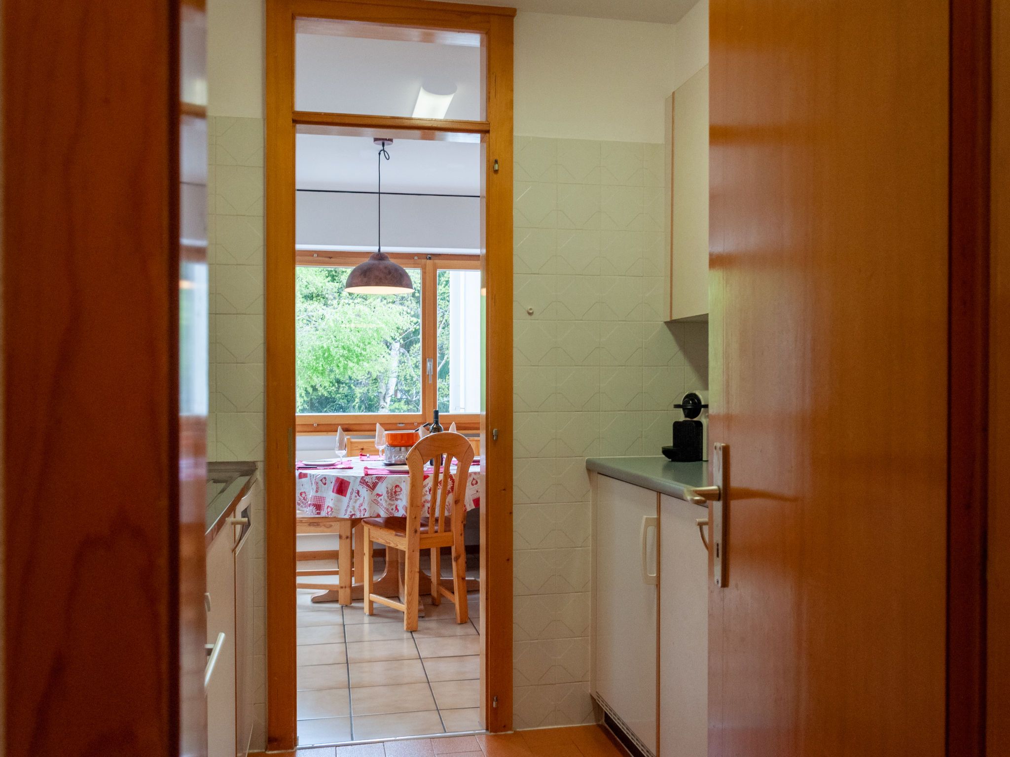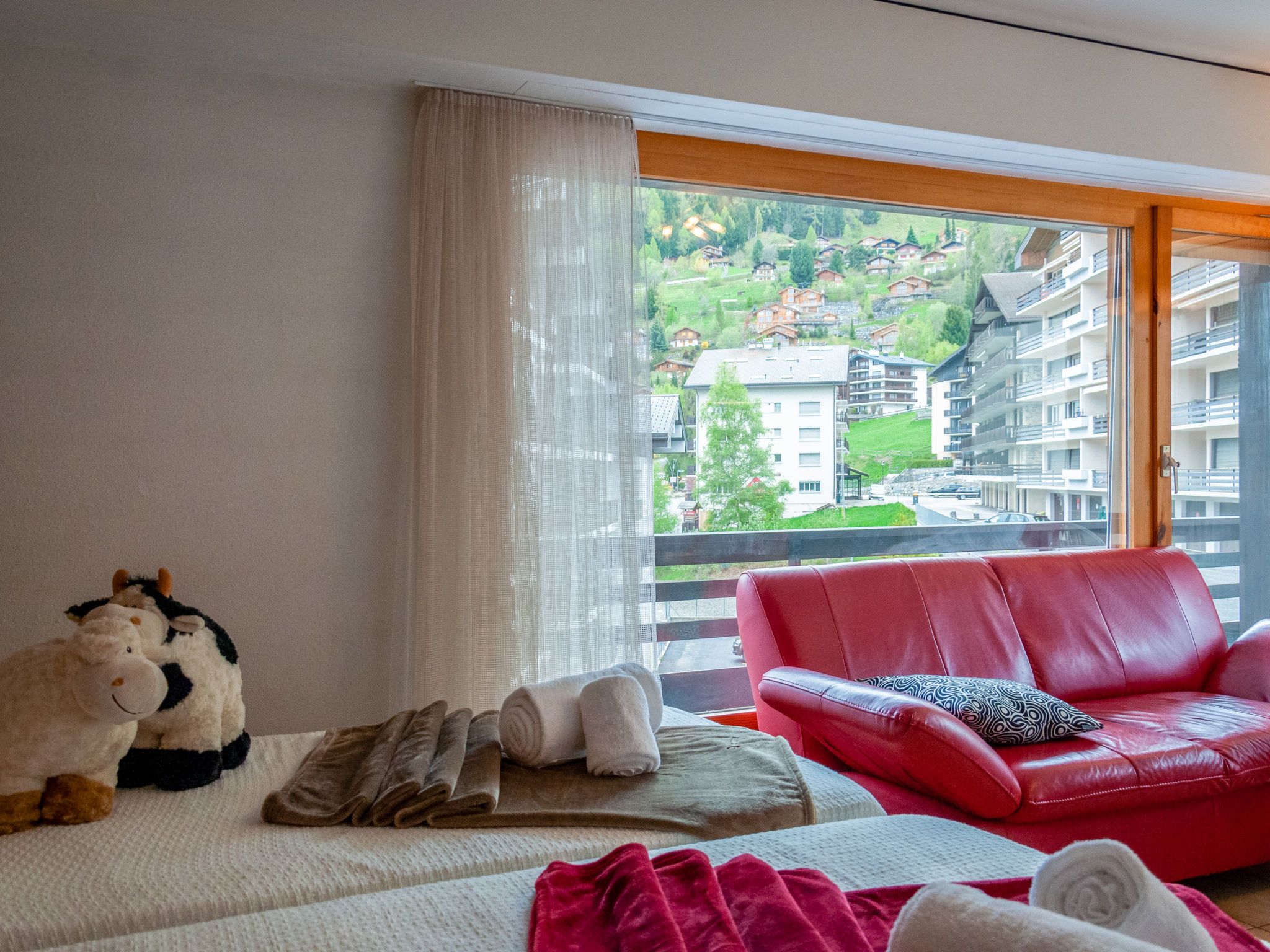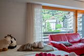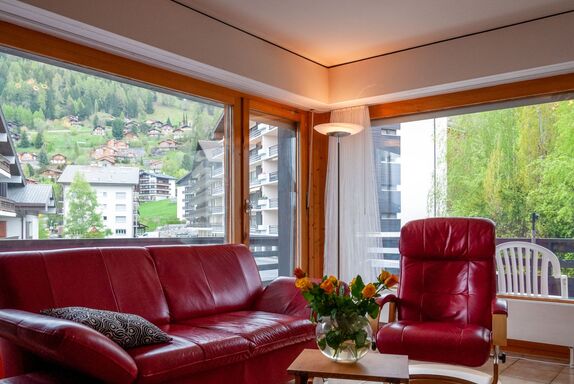 Diana E2, 2-Zimmer-Wohnung 58 m2 im 2. Stock. Grosses Wohn-/Esszimmer mit 2 Wandschrankbetten (90 cm, Länge 180 cm), offenem Kamin, Kabel-TV, Flachbildschirm und DVD. Ausgang zum Balkon, Richtung Osten. 1 Zimmer mit 1 Doppelbett (2 x 90 cm, Länge 200 cm). Ausgang zum Balkon, Richtung Osten. Küche (3 Kochplatten, Backofen, Geschirrspüler, Toaster, Wasserkocher, Mikrowelle, elektrische Kaffeemaschine, Kapseln für die Kaffeemaschine (nespresso) extra, Racletteofen, Fondue Set (Käse)). Bad/WC. Balkon, Südlage Balkon, Südostlage. Sicht auf die Ortschaft. Zur Verfügung: Haartrockner. Internet (Wireless LAN, gratis). Bitte beachten: Nichtraucher-Unterkunft.