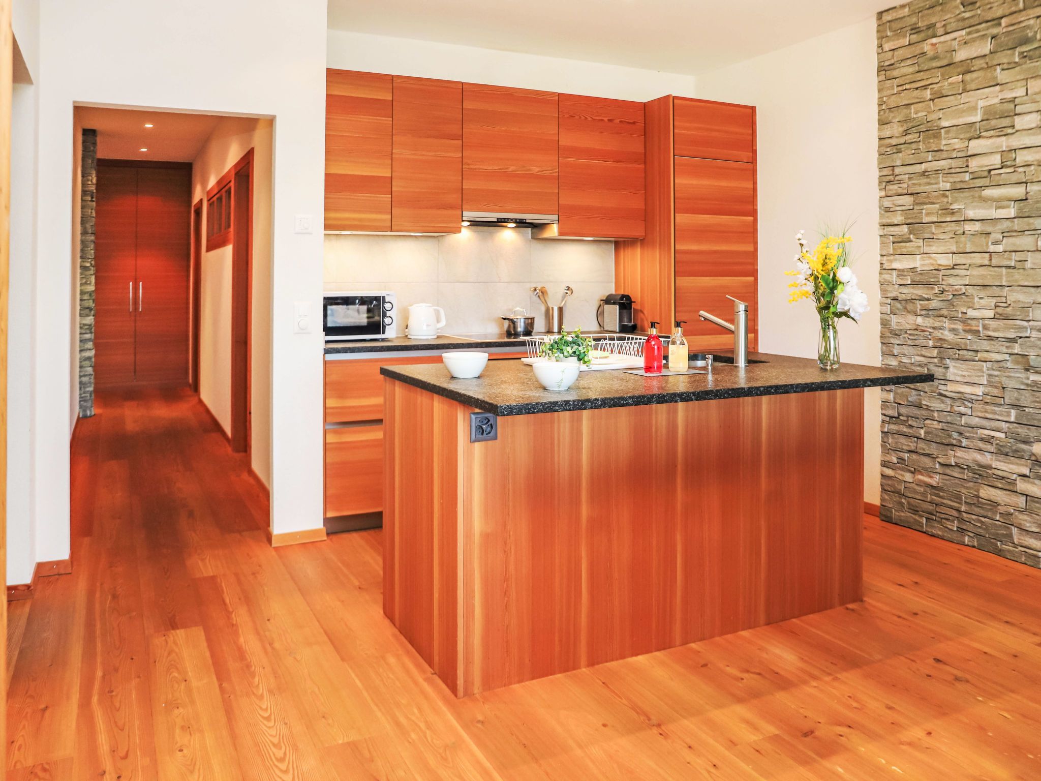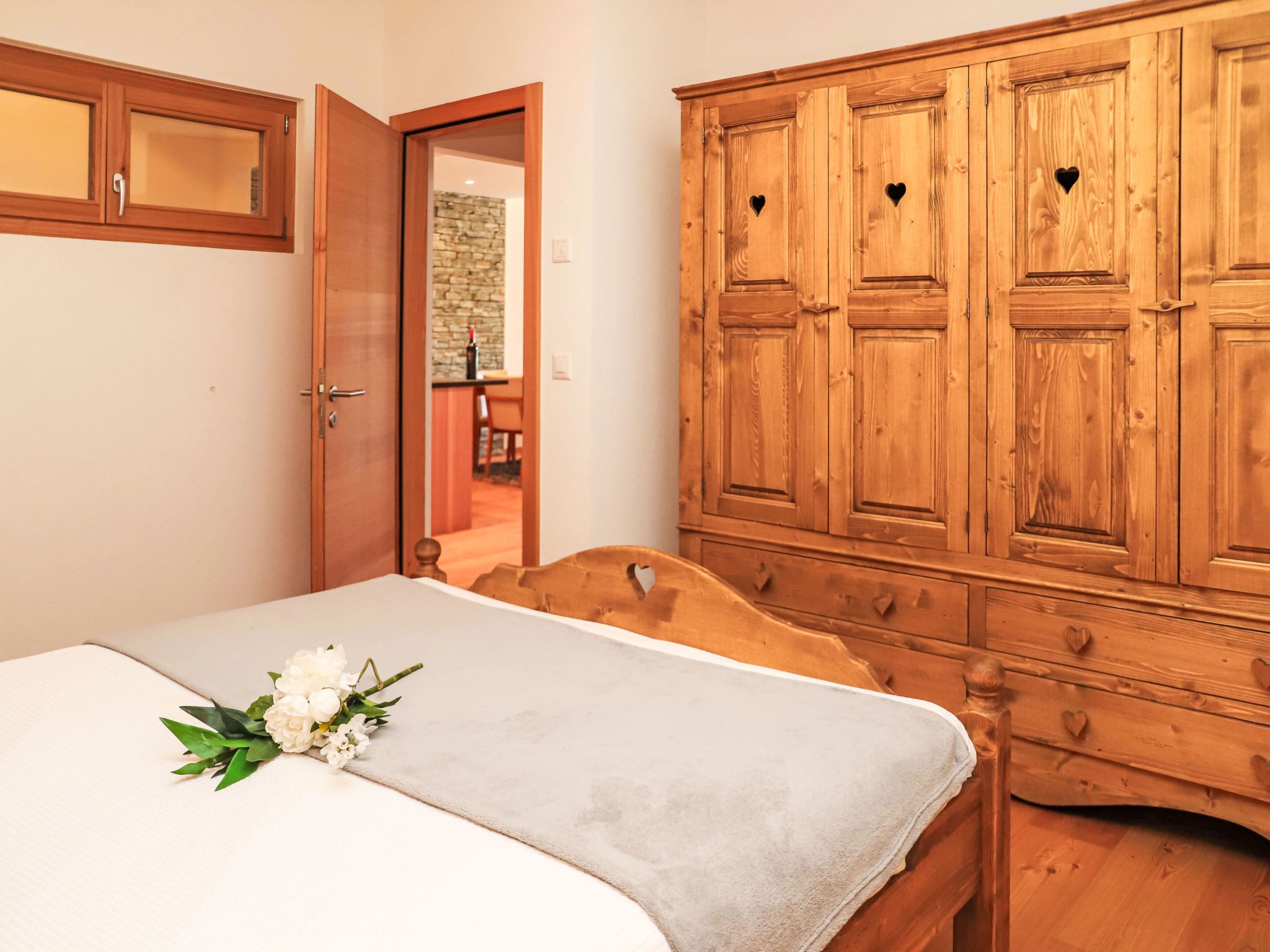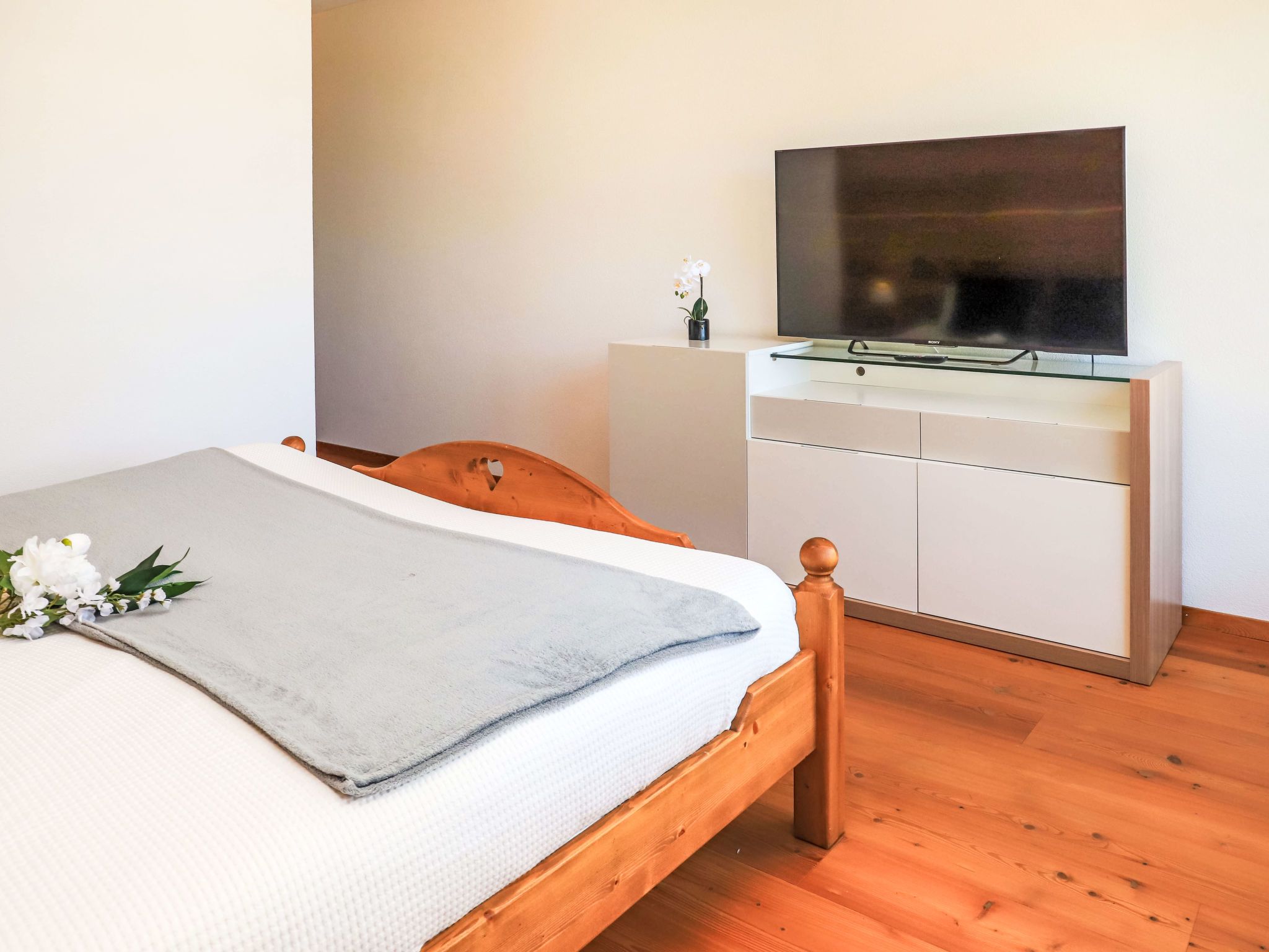 Rosablanche D 203A, 4-Zimmer-Wohnung 135 m2, im erhöhten Erdgeschoss. Vollständig renoviert im Jahre 2015, modern und geschmackvoll eingerichtet: grosses Wohn-/Esszimmer mit Kabel-TV und DVD. Ausgang zum Balkon. 1 Zimmer, Fenster zum Wohnzimmer mit 1 franz. Bett (160 cm, Länge 200 cm). 1 Zimmer, Fenster zum Wohnzimmer mit 2 Betten (90 cm, Länge 200 cm). 1 Zimmer mit 1 Doppelbett (2 x 90 cm, Länge 200 cm), Bad, Doppelwaschbecken und mit Eckbadewanne. Ausgang zum Balkon. Offene Küche (Backofen, Geschirrspüler, 4 Induktionskochplatten, Toaster, Wasserkocher, Mikrowelle, Tiefkühler, elektrische Kaffeemaschine, Kapseln für die Kaffeemaschine (Nespresso) extra, Racletteofen, Fondue Set (Chinoise, Käse)). Dusche/WC. Parkettboden. Balkon, Nordlage. Eingeschränkte Sicht auf die Berge und die Skipiste. Zur Verfügung: Internet (Wireless LAN). Garage Nr. 35. Bitte beachten: Nichtraucher-Haus.