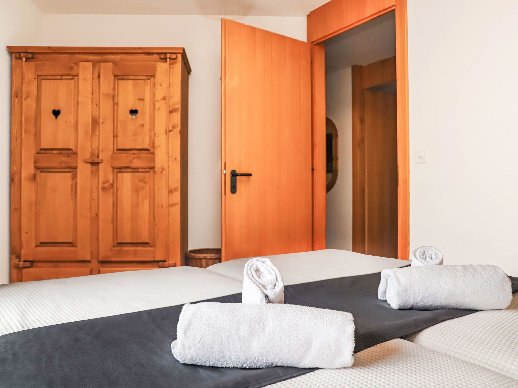 Mont Fort 16, 2-Zimmer-Wohnung 45 m2 im 1. Stock. Teilweise renoviert im Jahre 2018, komfortabel und schön eingerichtet: Wohn-/Esszimmer mit 1 Doppeldiwanbett (140 cm, Länge 190 cm), Kabel-TV, Radio und CD. 1 Zimmer mit 1 Doppelbett (2 x 90 cm, Länge 200 cm). Ausgang zum Balkon, Richtung Osten. Offene Küche (Geschirrspüler, 4 Glaskeramikplatten, Toaster, Wasserkocher, Mikrowelle, Fondue Set (Käse)). Bad/WC. 2 Balkone, Nordlage und Ostlage. Sicht auf die Berge. Zur Verfügung: Internet (Wireless LAN, gratis). Parkplatz Nr. 9 in 400 m. Bitte beachten: Nichtraucher-Haus.