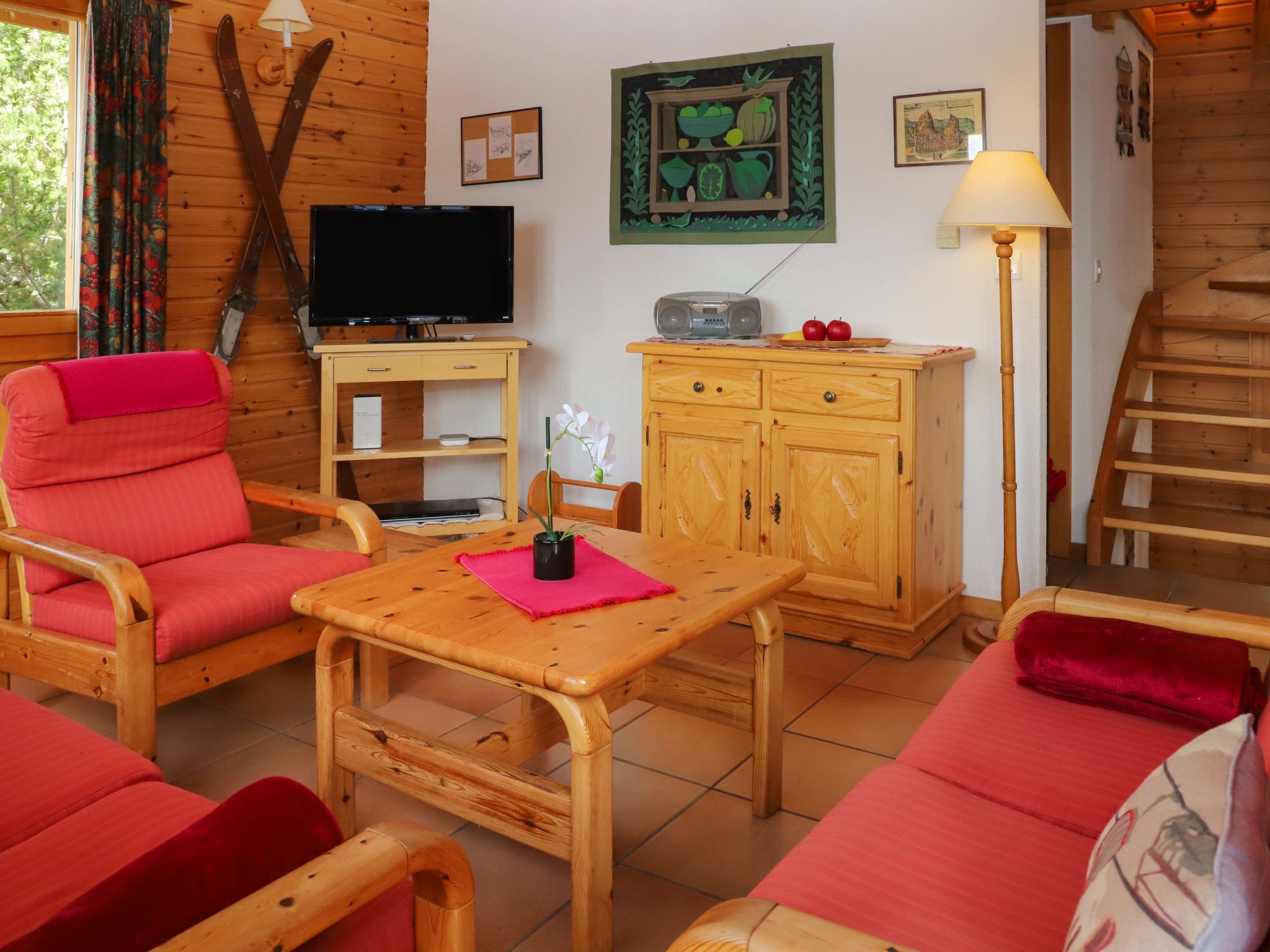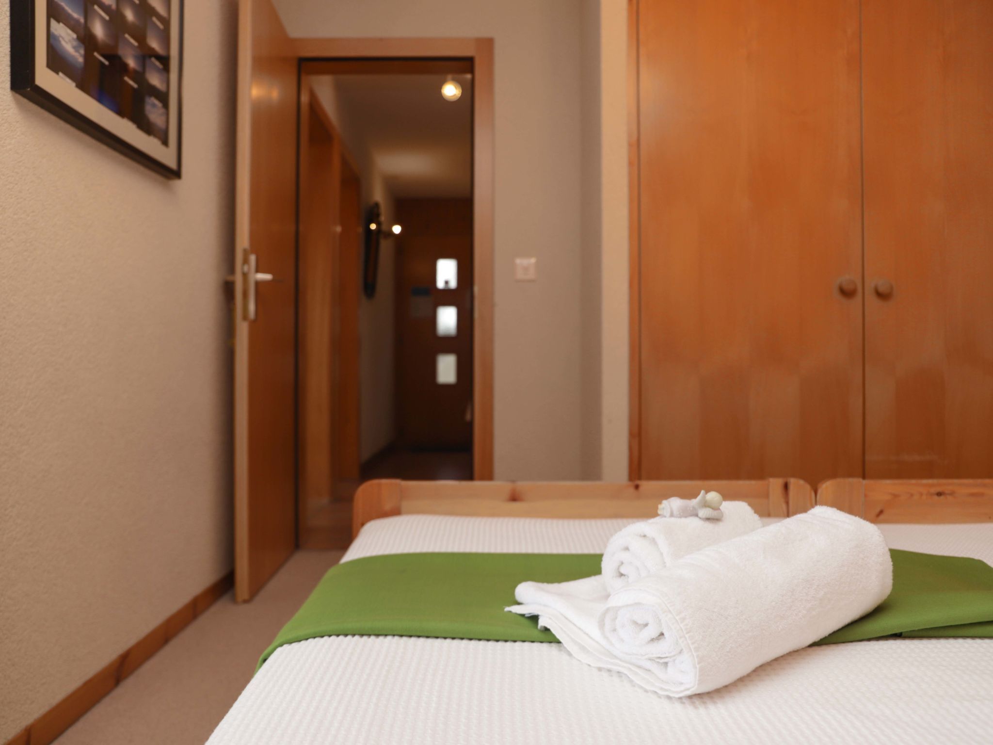 4-Zimmer-Chalet 89 m2 auf 2 Stockwerken. Wohn-/Esszimmer mit offenem Kamin (nur Deko), Kabel-TV, Stereoanlage und DVD. Ausgang zum Balkon, zur Terrasse. Abgeschrägte, offene Galerie mit 2 Betten (80 cm, Länge 190 cm). Küche (Backofen, Geschirrspüler, 4 Glaskeramikplatten, elektrische Kaffeemaschine, Racletteofen, Fondue Set (Chinoise, Käse)). Dusche, sep. WC. E-Heizung. Unteres Geschoss: 1 Zimmer mit 1 x 2 Etagenbetten (90 cm, Länge 190 cm). Ausgang zum Balkon. 1 Zimmer mit 2 Betten (90 cm, Länge 190 cm). Ausgang zum Balkon. 1 Zimmer mit 2 Betten (80 cm, Länge 190 cm). Ausgang zum Balkon. Bad/WC. Balkon, Nordwestlage, Terrasse, Nordwestlage, Gartensitzplatz. Sehr schöne Panoramasicht auf die Berge. Zur Verfügung: Waschmaschine. Internet (Wireless LAN, gratis). Garage (1 Auto), Höhe 200 cm, Breite 220 cm. Bitte beachten: Nichtraucher-Unterkunft. Anstelle eines abgeschlossenen Schlafzimmers befinden sich manche Schlafplätze in einem offenen Bereich (Galerie, Nische etc.).
