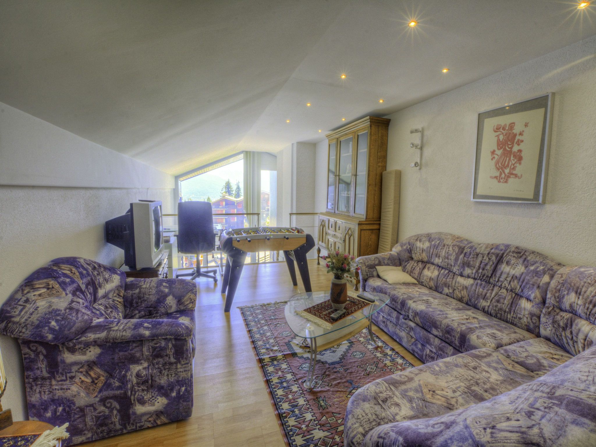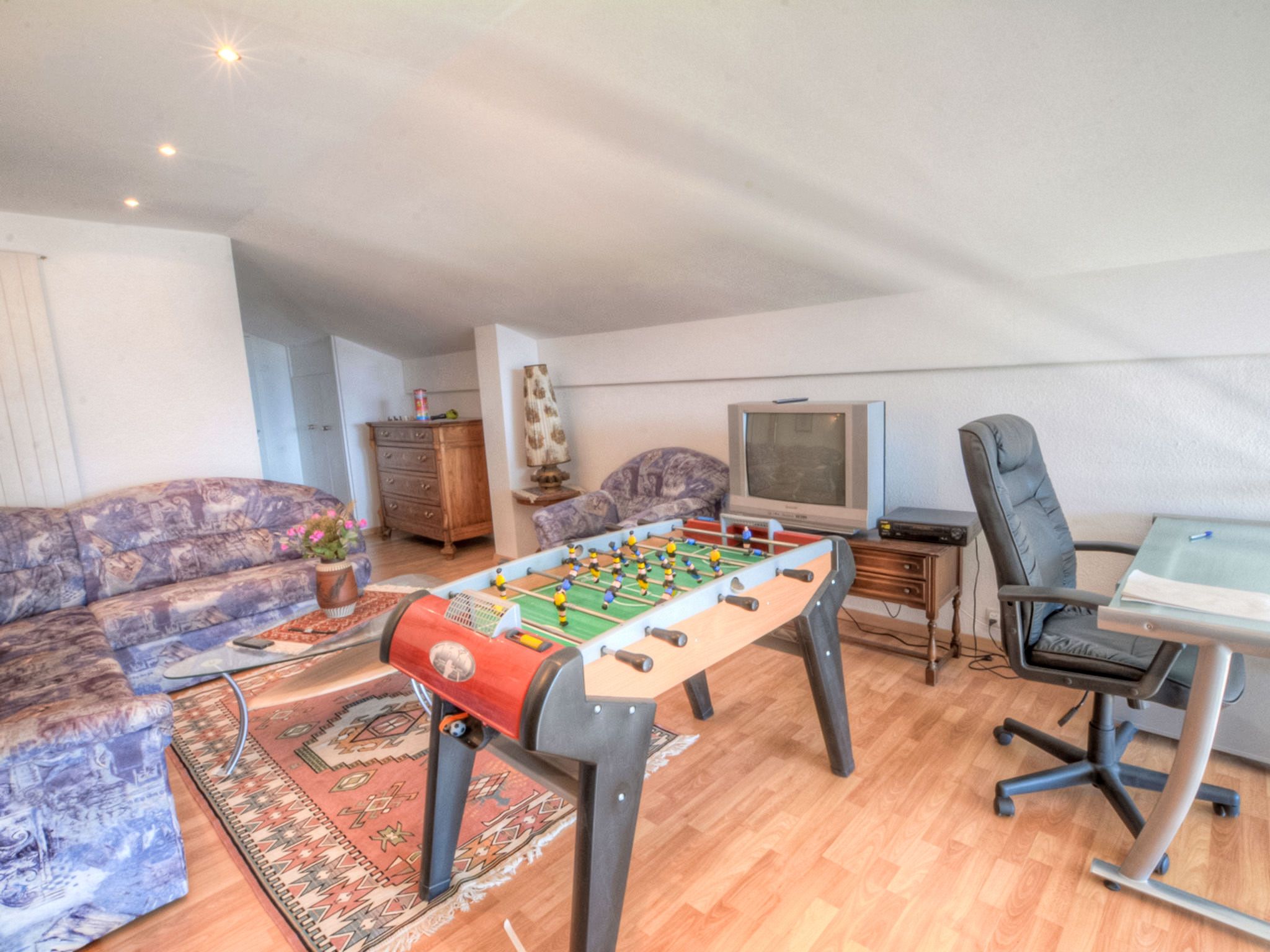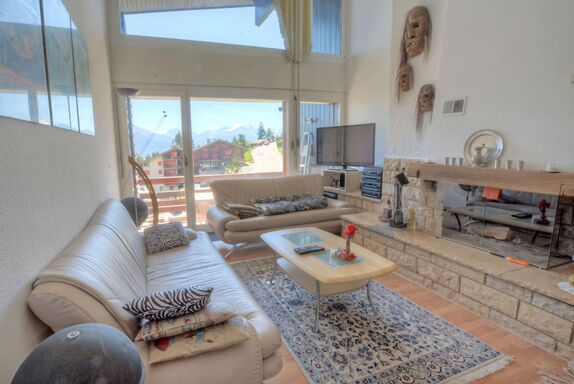 4-Zimmer-Maisonette-Wohnung 157 m2 im 4. Stock. Geräumig und hell, komfortabel eingerichtet: Wohn-/Esszimmer mit offenem Kamin, sep. WC und Kabel-TV. Ausgang zum Balkon, Richtung Süden. 1 grosses Zimmer mit 1 Doppelbett (2 x 90 cm, Länge 200 cm), Bad/WC und Sprudelbad. Ausgang zum Balkon, Richtung Norden. 1 Zimmer mit 1 Doppelbett (2 x 90 cm, Länge 200 cm), Dusche. Ausgang zum Balkon, Richtung Norden. Grosse, offene Küche (2 Kochplatten, Backofen, Geschirrspüler, 2 Induktionskochplatten, Mikrowelle, Grill, elektrische Kaffeemaschine, Kapseln für die Kaffeemaschine (Nespresso) extra). Obergeschoss: Spielzimmer mit 1 Diwanbett (140 cm, Länge 190 cm), Kabel-TV. 1 Zimmer mit 1 Doppelbett (160 cm, Länge 200 cm), Bad. Ausgang zum Balkon, Richtung Norden. Balkonmöbel. Sehr schöne Sicht auf die Berge. Bitte beachten: Nichtraucher-Unterkunft.