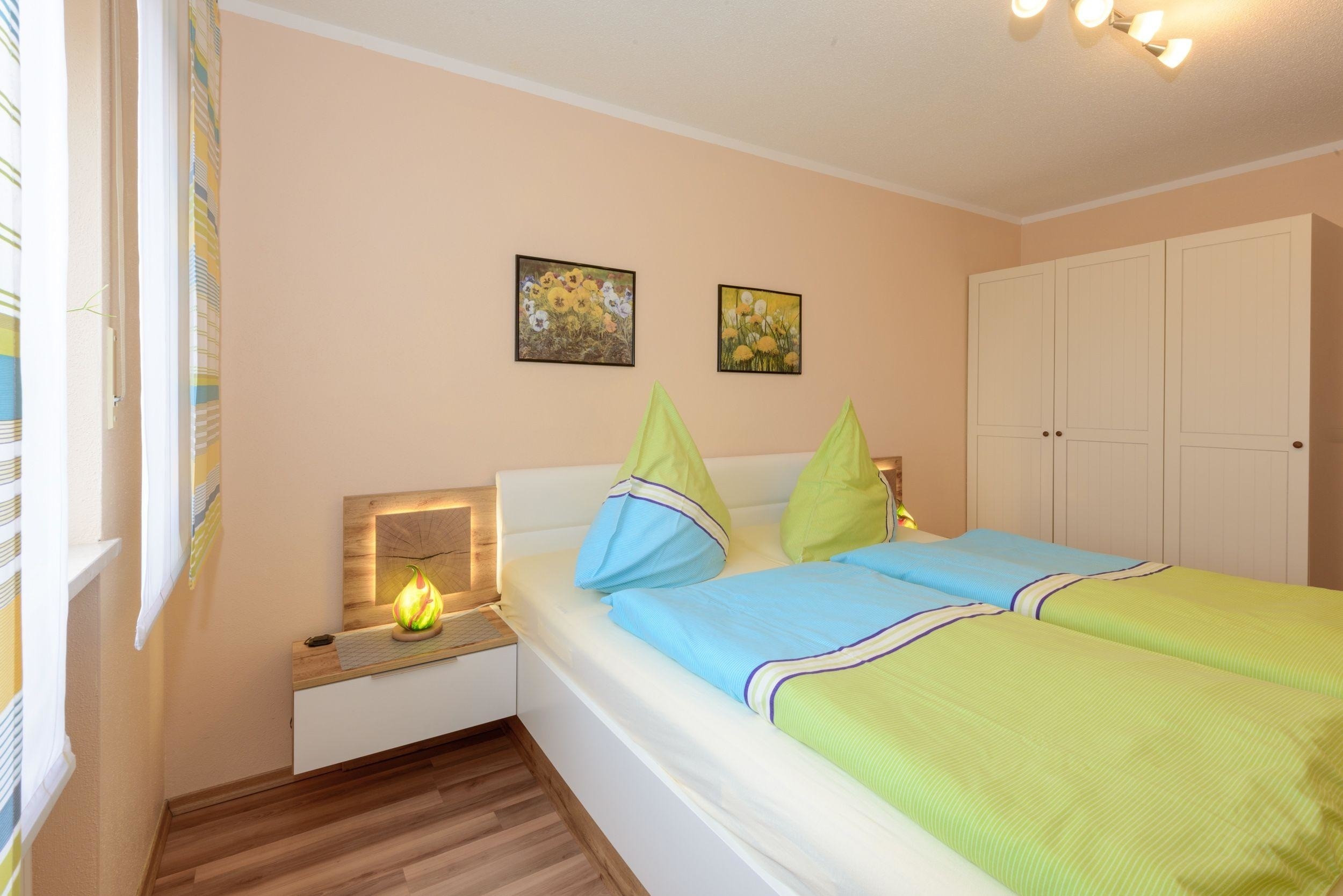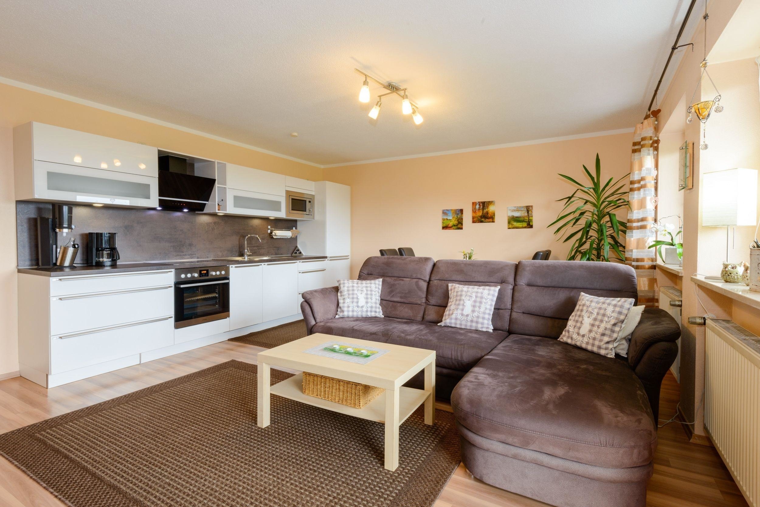 Die Ferienwohnung ist ca. 58 qm groß und besitzt eine vollständige Ausstattung mit Elektrogeräten wie z.B. Radio DVD und SAT-TV . Eine Wohnküche mit Essecke, Küchenzeile mit Kaffeemaschine, Kühlschrank sowie Herd mit Backofen sowie ein Schlafzimmer mit Doppelbett und ein Bad mit Dusche ,Badewanne und WC ermöglichen Ihnen einen Urlaub in wohnlicher Atmosphäre.