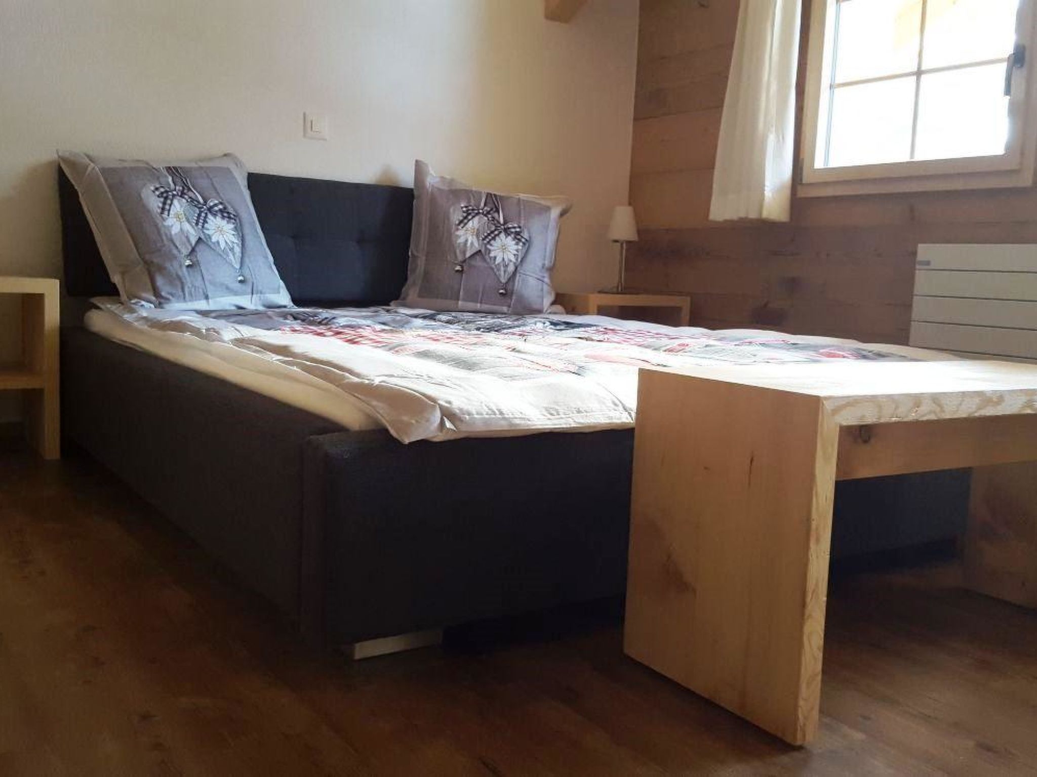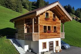 40 m2. Weitere Angaben des Anbieters: Schönes, neuwertiges Chalet ideal für Paare. Das Chalet verfügt über 1 Schlafzimmer, Küche, Wohnraum, Badezimmer, Abstellraum und eine kleine Schlafnische für ein Kind. Es hat einen Parkplatz vorhanden und liegt im Ortsteil Margeli. Sie können eine wunderbare Bergsicht geniessen. Die Vermieter wohnen auf dem Bauernhof, welcher sich neben dem kleinen Chalet befindet. Handtücher und Badetücher sind vorhanend. Die Bettwäsche kostet CHF 15.00 pro Person. Wir vermieten ein neues, romantisches, rustical ausgebautes Stöckli kleines Chalet nahe zum Bauernhof im Grünen. Es erwartet Sie ein Wohnzimmer mit Sofa (ausziehbar) Schaukelstuhl, TV, Radio und WLAN. Eine kleine Küche mit Kühlschrank, Backofen, 2 Herdplatten, Geschirrspüler und eine Nespresso Kapselmaschine. Im oberen Stock befindet sich 1 Schlafzimmer mit Doppelbett, eine kleine Schlafnische für 1 Matratze oder ein Campingbett sowie 1 Badezimmer mit Dusche und WC + Waschmaschine. Für die Kleider hat es einen geräumigen Einbauschrank. Balkon mit Sicht auf die Berge soiwe sehr ruhiger Sitzplatz. Parkplatz vorhanden. Ausserdem hat es einen Abstellraum für Skis und Velos. Haustiere gerne auf Anfrage. Ideal ist das Chalet für Paare oder eine Familie mit einem Kind (zwei Kinder auf Anfrage). Bushaltestelle in der Nähe. Handtücher, Badetücher sind vorhanden. Die Bettwäsche ist pro Person CHF 15.00.