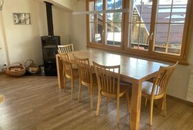 98 m2. Weitere Angaben des Anbieters: Neu renovierte 4.5-Zimmerwohnung (98 m2) im 2. Stock in freistehendem 3-Familienhaus. Ruhige Lage auf einem Bauernhof mit Sicht auf das Bergpanorama im Ortsteil Gilbach. 3 separate Schlafzimmer mit insgesamt 7 Betten, davon ein Kajütenbett. Kinderbett vorhanden. Moderne Küche kombiniert mit grossem Wohnzimmer, Zentralheizung, ein Schwedenholzofen, 2 grosse Balkone, Garage. Badezimmer mit Badewanne/WC, separates WC. Haustiere willkommen. Nichtraucherwohnung. Internet-Anschluss. Kein TV! Für Familien mit Kindern sehr geeignet. Gut eingerichtete Küche. Nespresso-Maschine und verschiedene Grössen von Bialetti-Espresso-Kocher, auch Raclette-Ofen und Fondueausstattung vorhanden. Bad- und Küchenwäsche auf Anfrage: CHF 20.-.