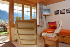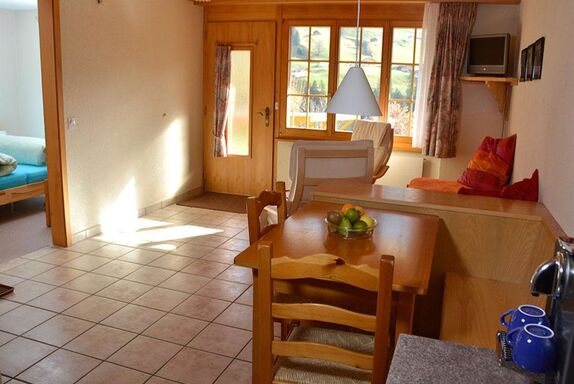 28 m2. Weitere Angaben des Anbieters: 2-Zimmerwohnung (28m2) am ruhigen, sehr sonnigen Mühleport in Hanglage. Zwei Betten im Schlafzimmer, ein Bett im Wohnzimmer (tagsüber Liegebett/Sofa) ausziehbar auf ein weiteres Bett (total vier komplette Betten). Bad/Dusche, offene Küche, TV/Radio, Internet/WLAN, Aussensitzplatz mit freier Panorama-Aussicht, Parkplatz. Die Ferienwohnung liegt im Parterre und ist vom Parkplatz über eine kurze Aussentreppe erreichbar. Bushaltestelle, Sportzentrum, Talstation Silleren-Bahnen: 5 Minuten Fussweg. Dorfzentrum: 10 Minuten Fussweg. Haustiere sind nicht erlaubt. Nichtraucherwohnung. 2-Zimmerwohnung (28m2) am ruhigen, sehr sonnigen Mühleport in Hanglage mit freier Aussicht. Zwei Betten im Schlafzimmer, ein Bett im Wohnzimmer (tagsüber Liegebett/Sofa) ausziehbar auf ein weiteres Bett (total vier komplette Betten). Bad/Dusche, offene Küche, TV/Radio, Internet/WLAN, Parkplatz. Aussensitzplatz auf grosser Holzterrasse mit freier Panorama-Aussicht, Tisch + 4 Stühle, 2 Sonnenliegen, Sonnenschirm. Die Ferienwohnung liegt im Parterre und ist vom Parkplatz über eine kurze Aussentreppe erreichbar. Haustiere sind nicht erlaubt. Nichtraucherwohnung. Bushaltestelle, Sportzentrum, Talstation Silleren-Bahnen: 7 Minuten Fussweg. Dorfzentrum: 12 Minuten Fussweg. Wildstrubel: 5 Stunden Fussweg... Badwäsche ist auf Wunsch verfügbar.